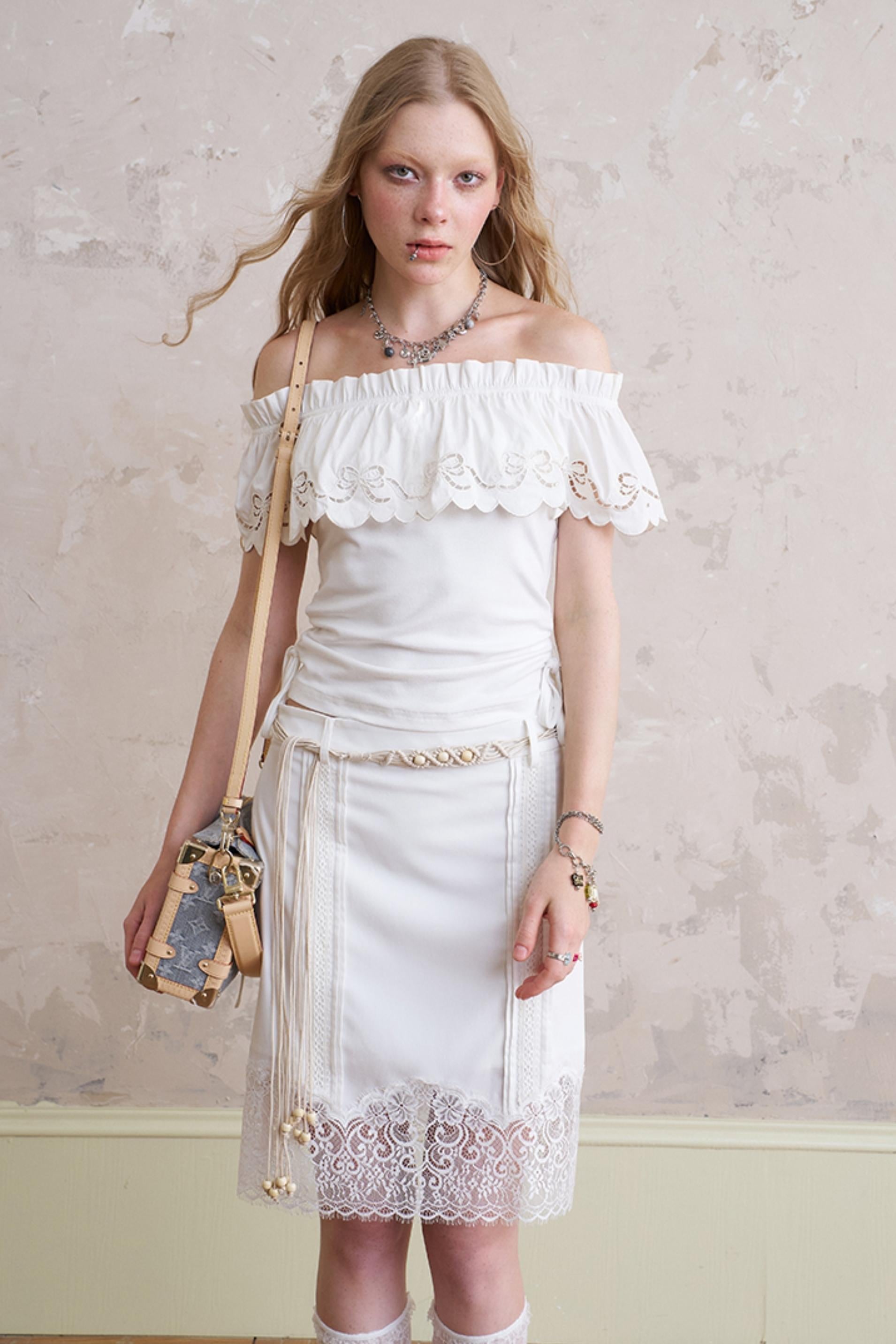 One-Shoulder Lace Wave Top