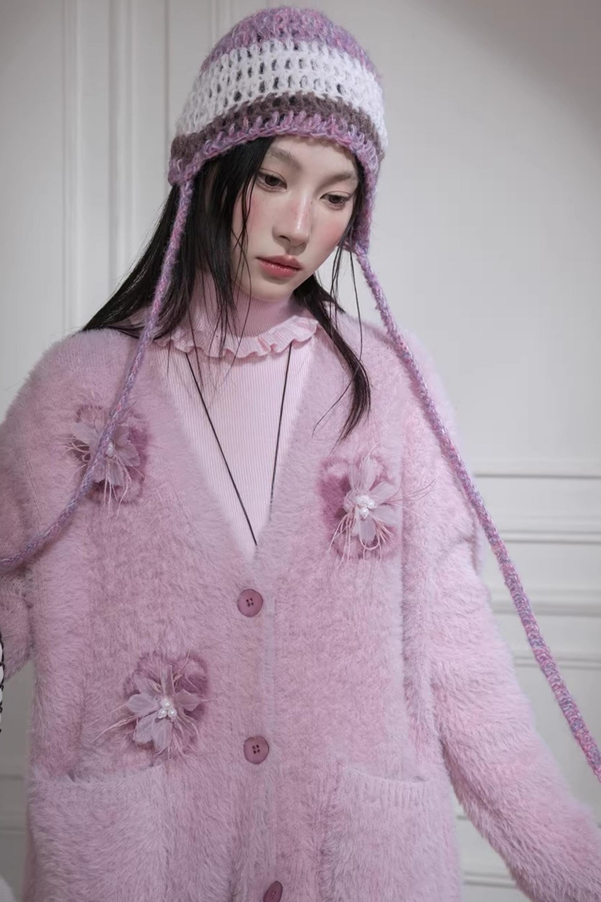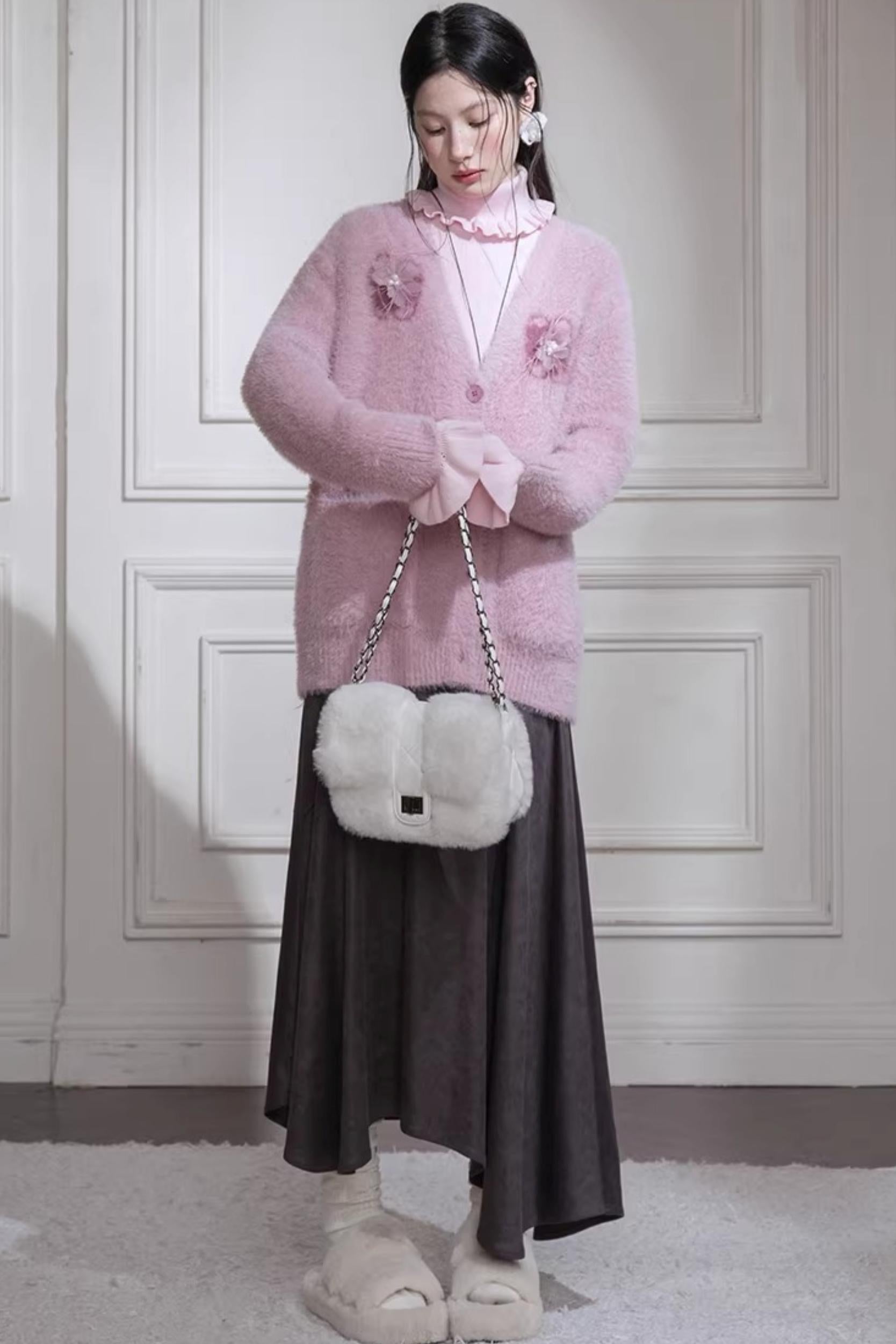 Pink Feather Flower Cardigan