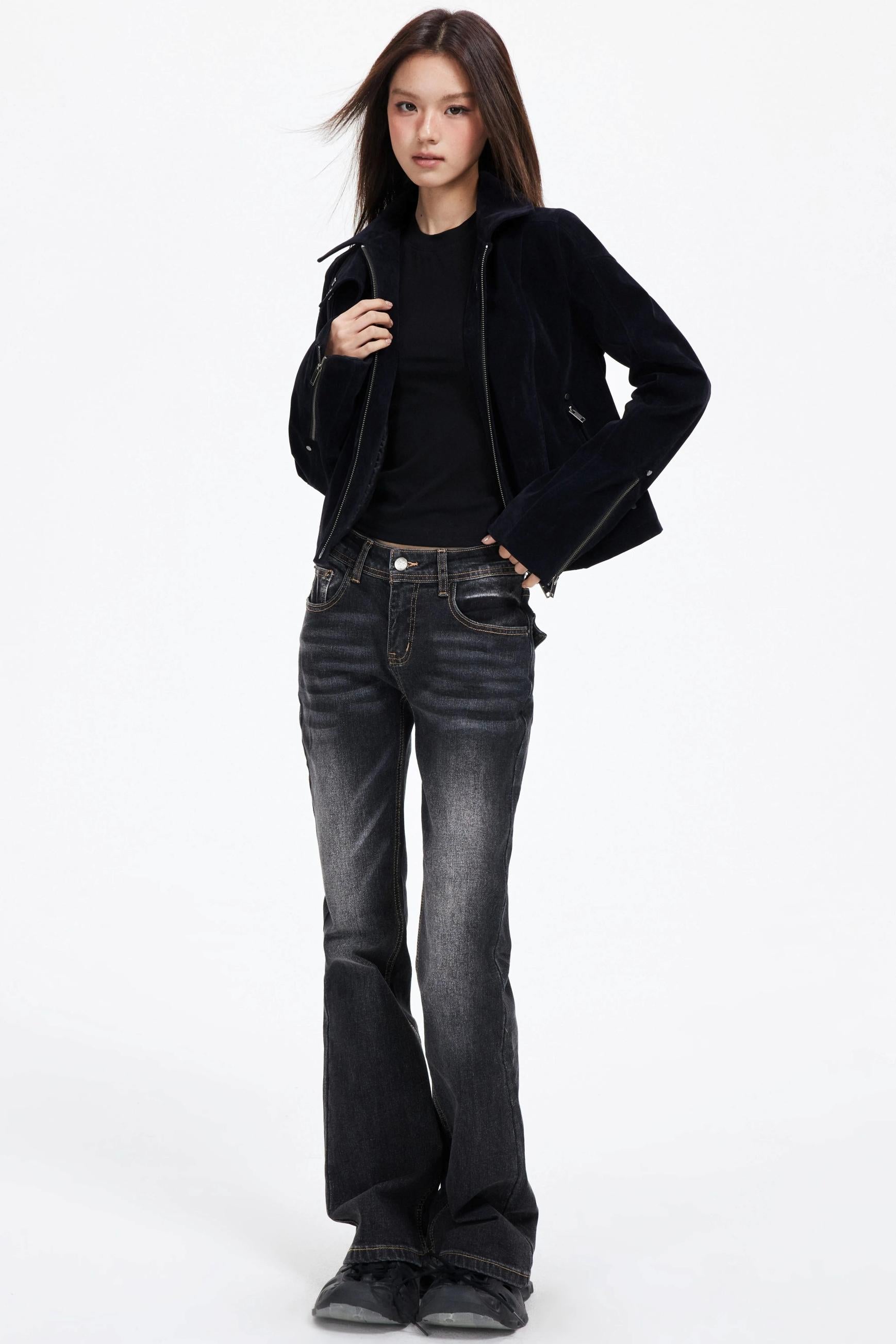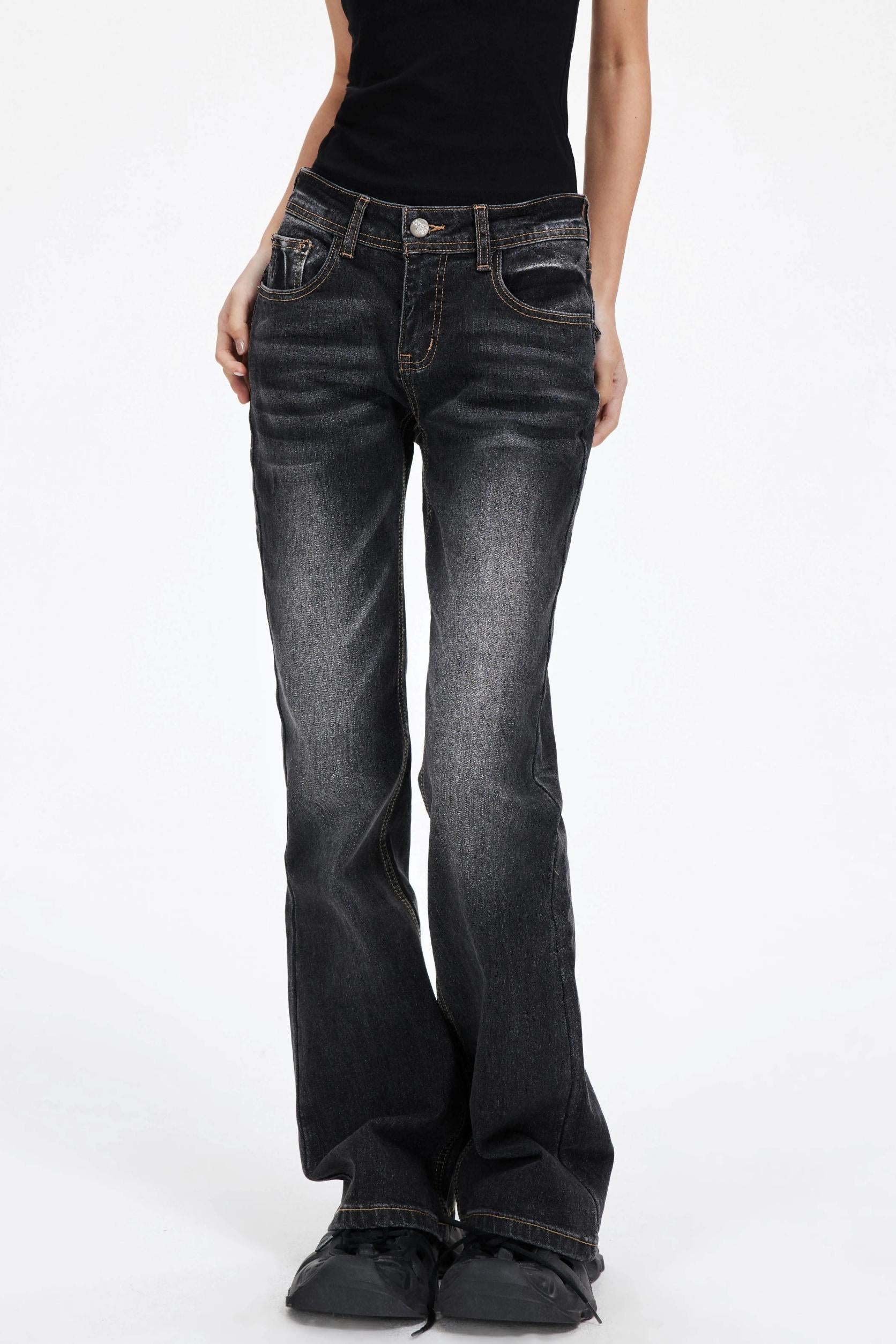 Slimming God Black Gray Denim Trousers
