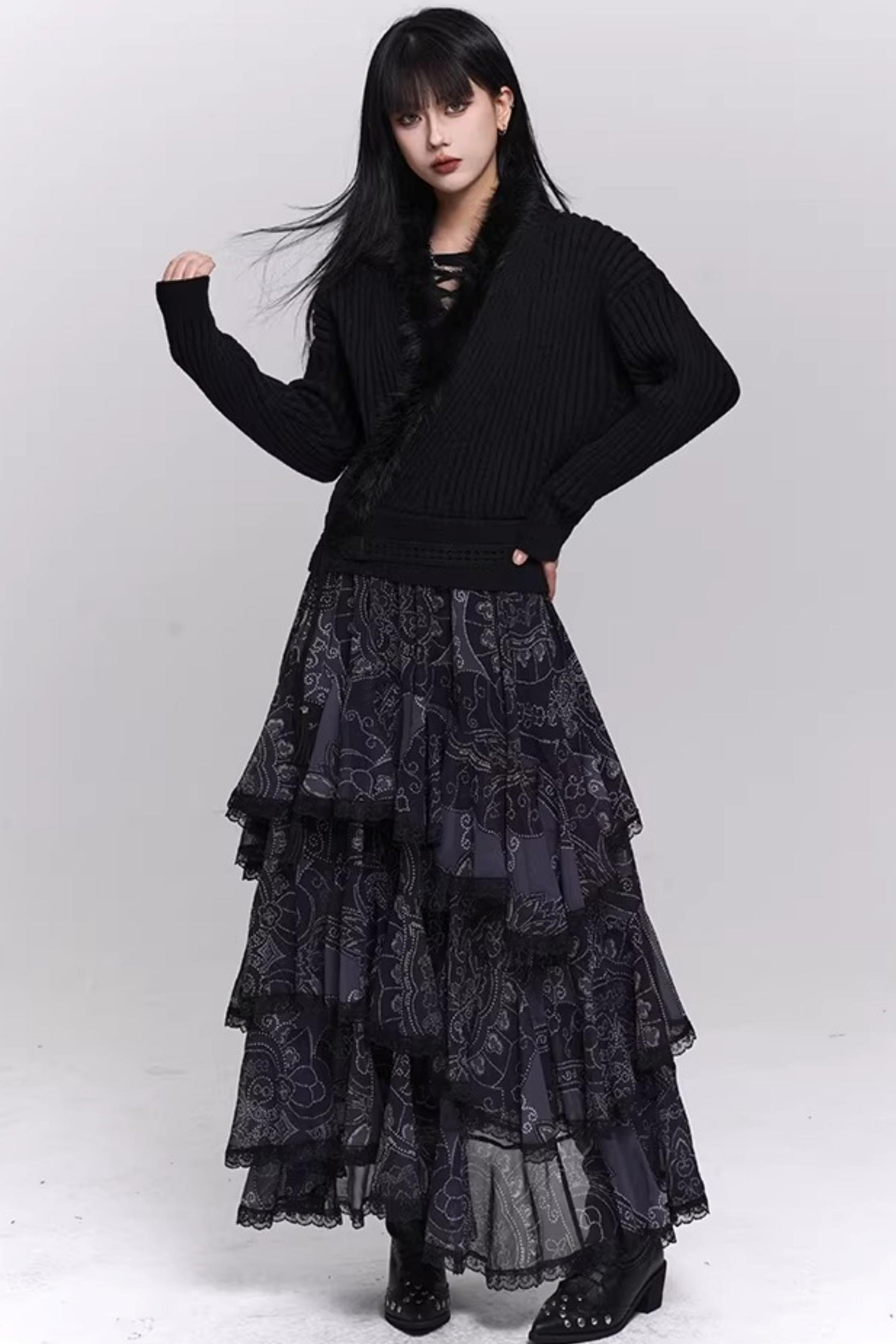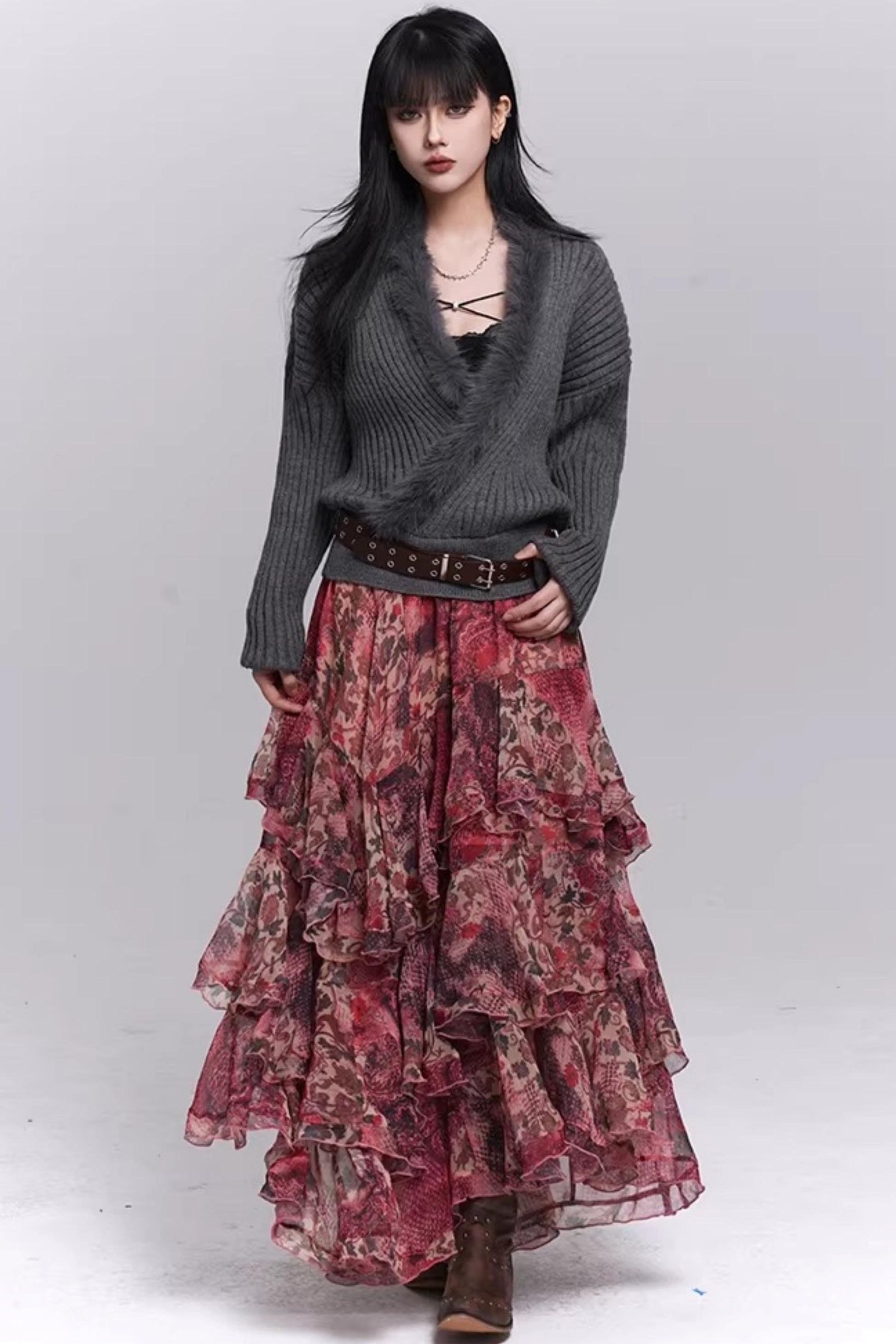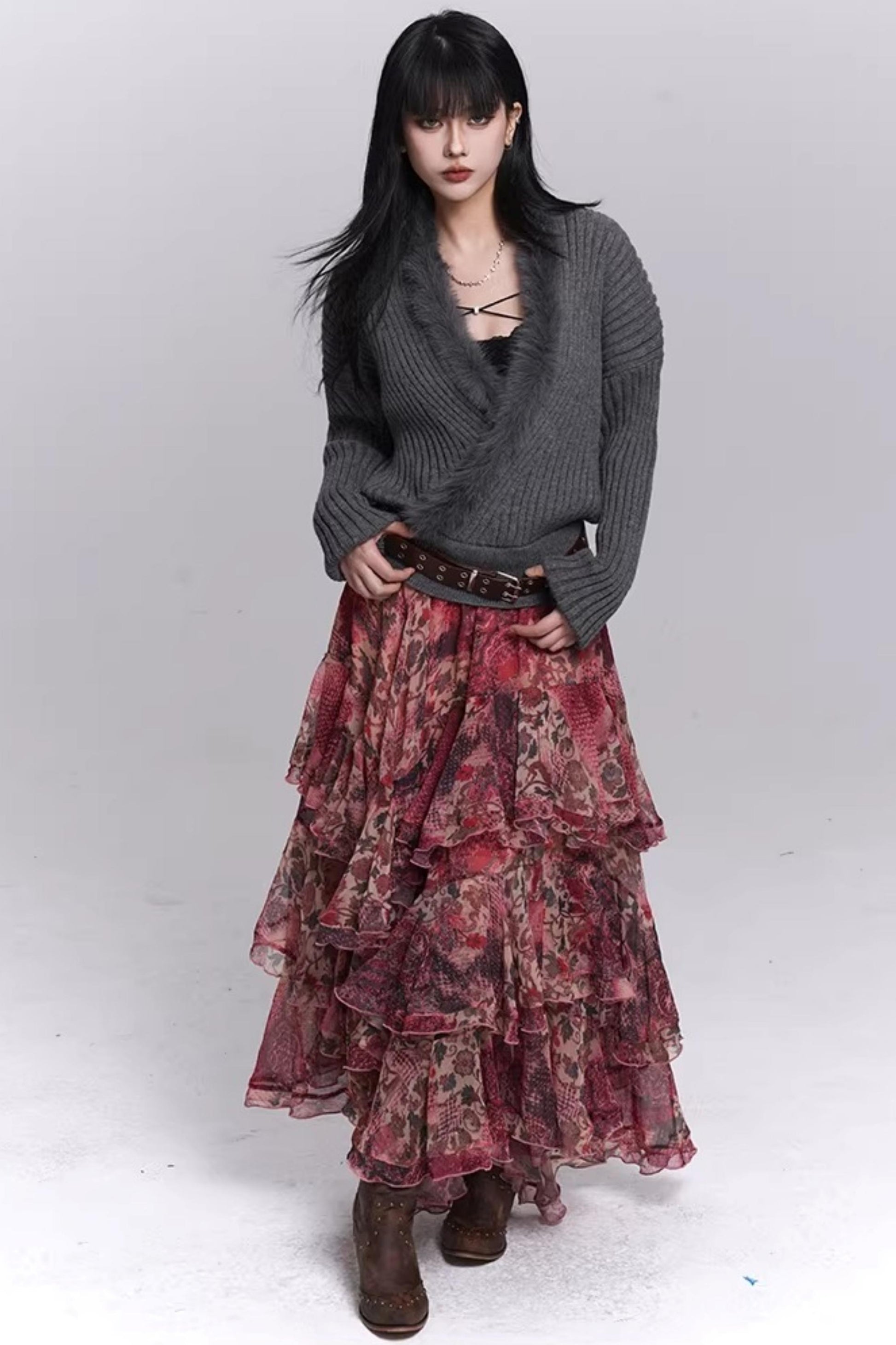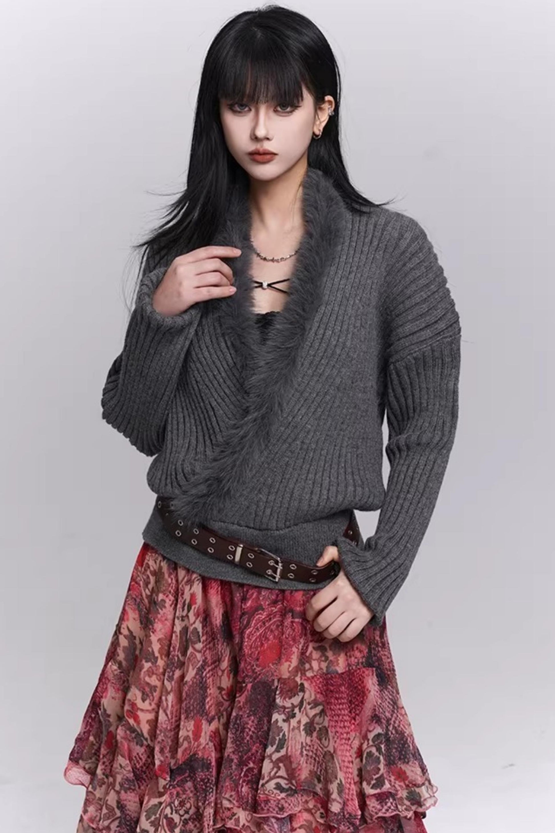 Soft Gray V-Neck Knit Sweater