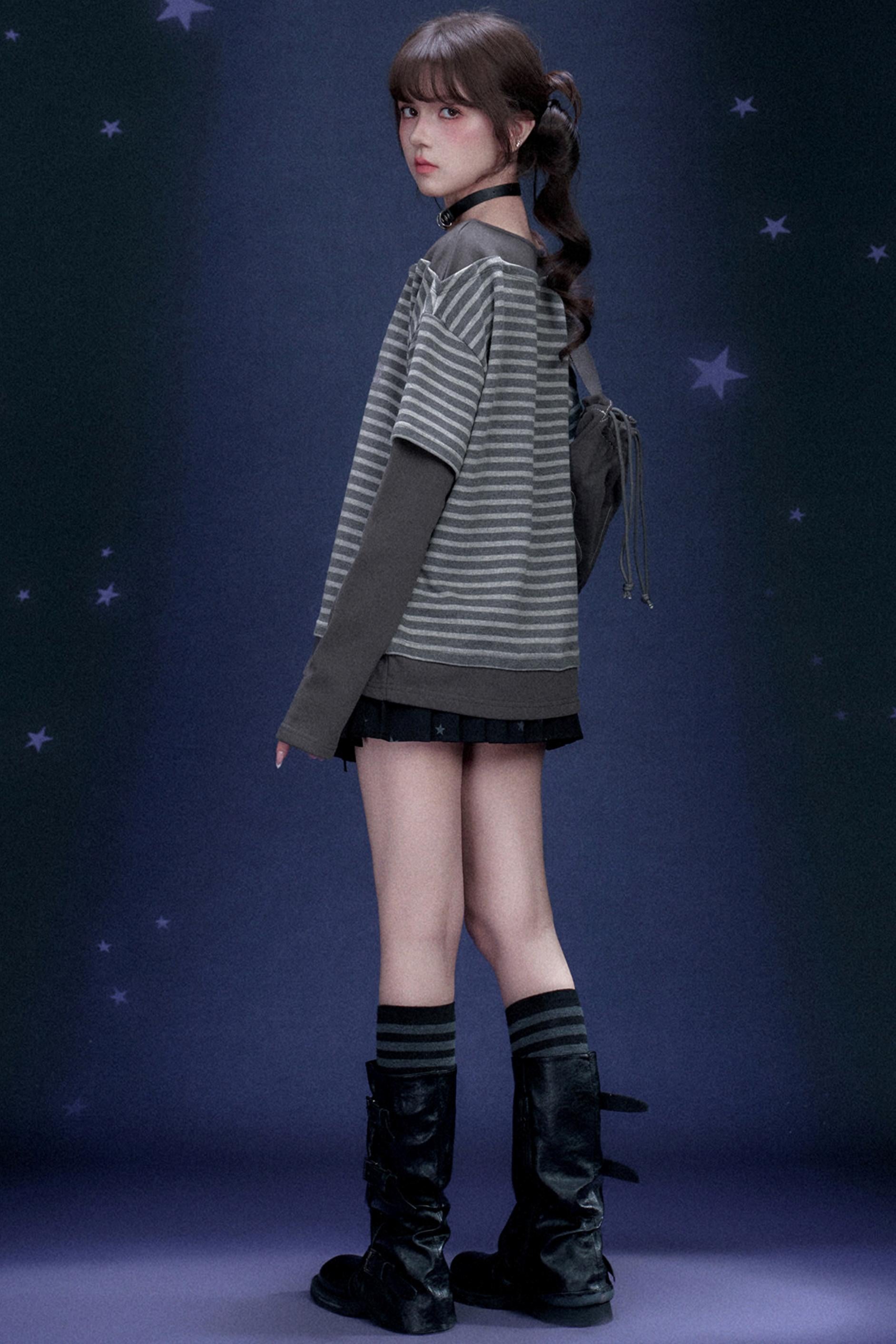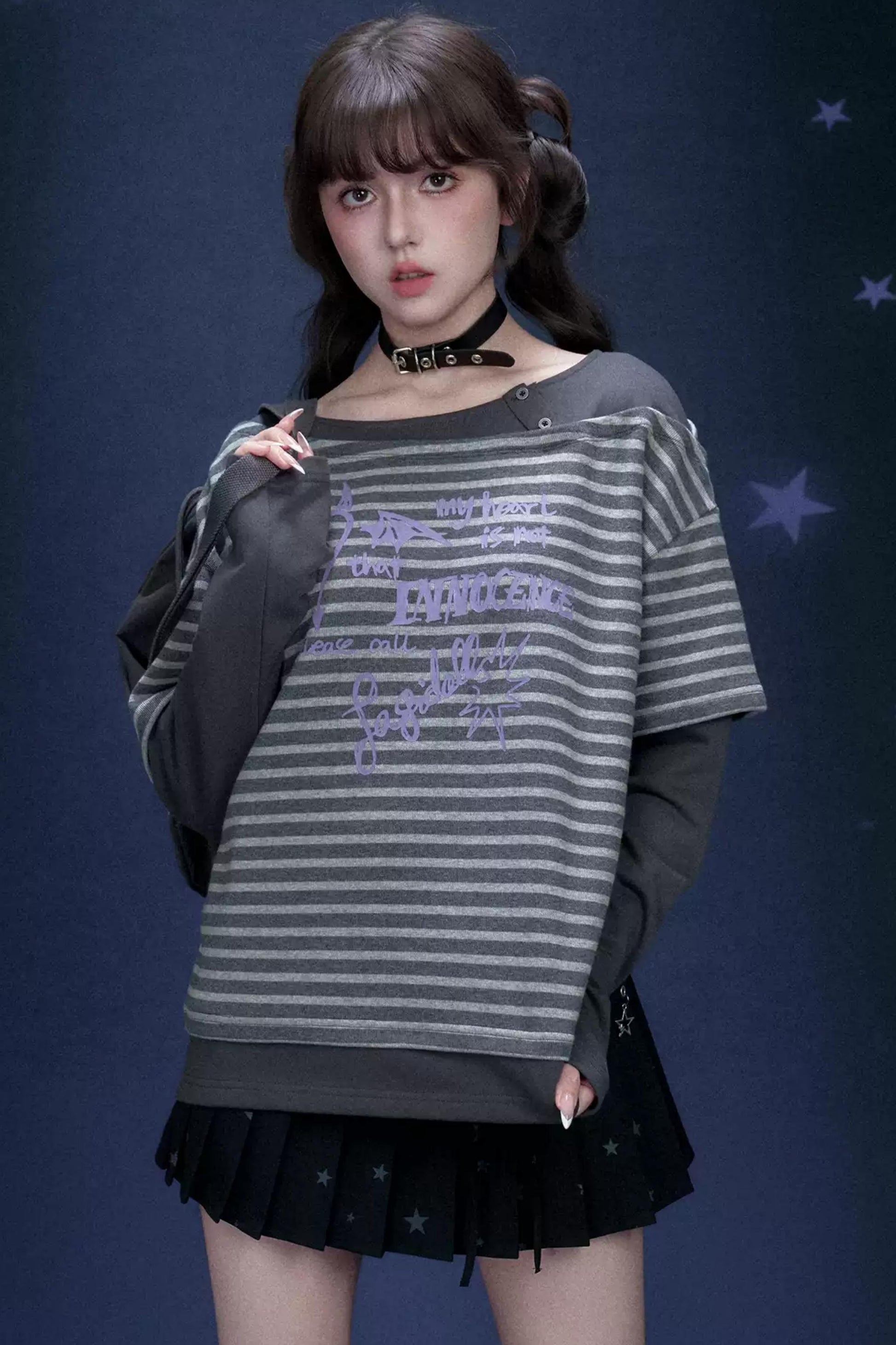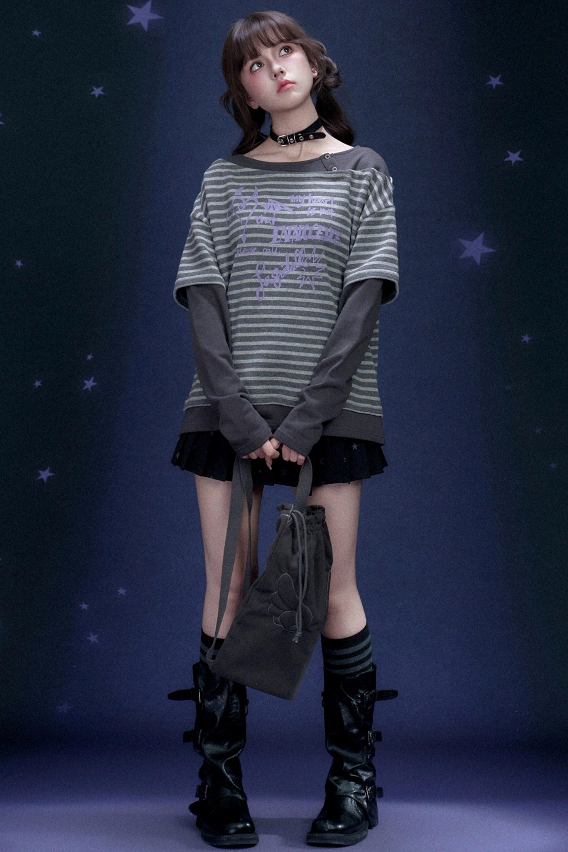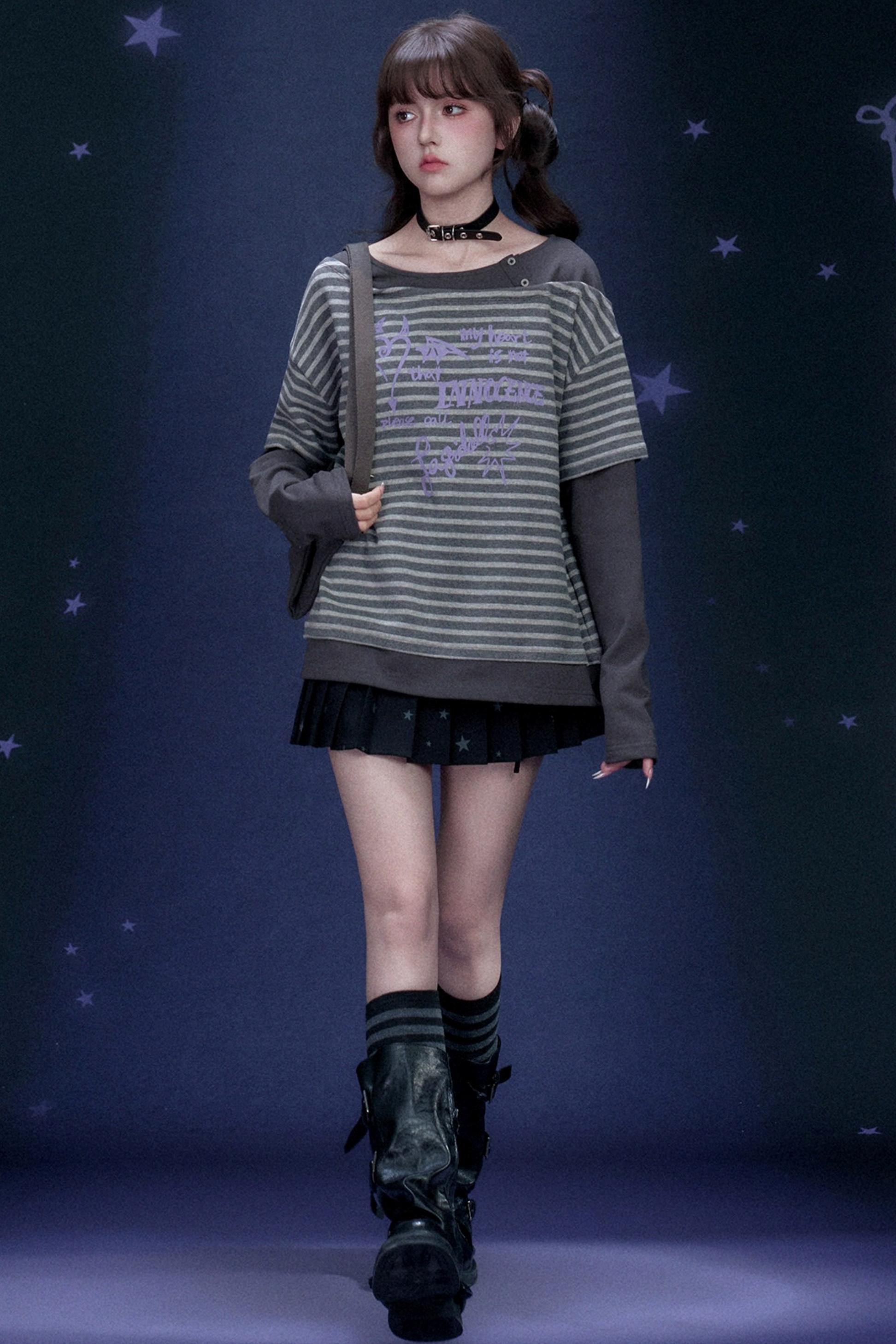 Striped Graffiti Print Top
