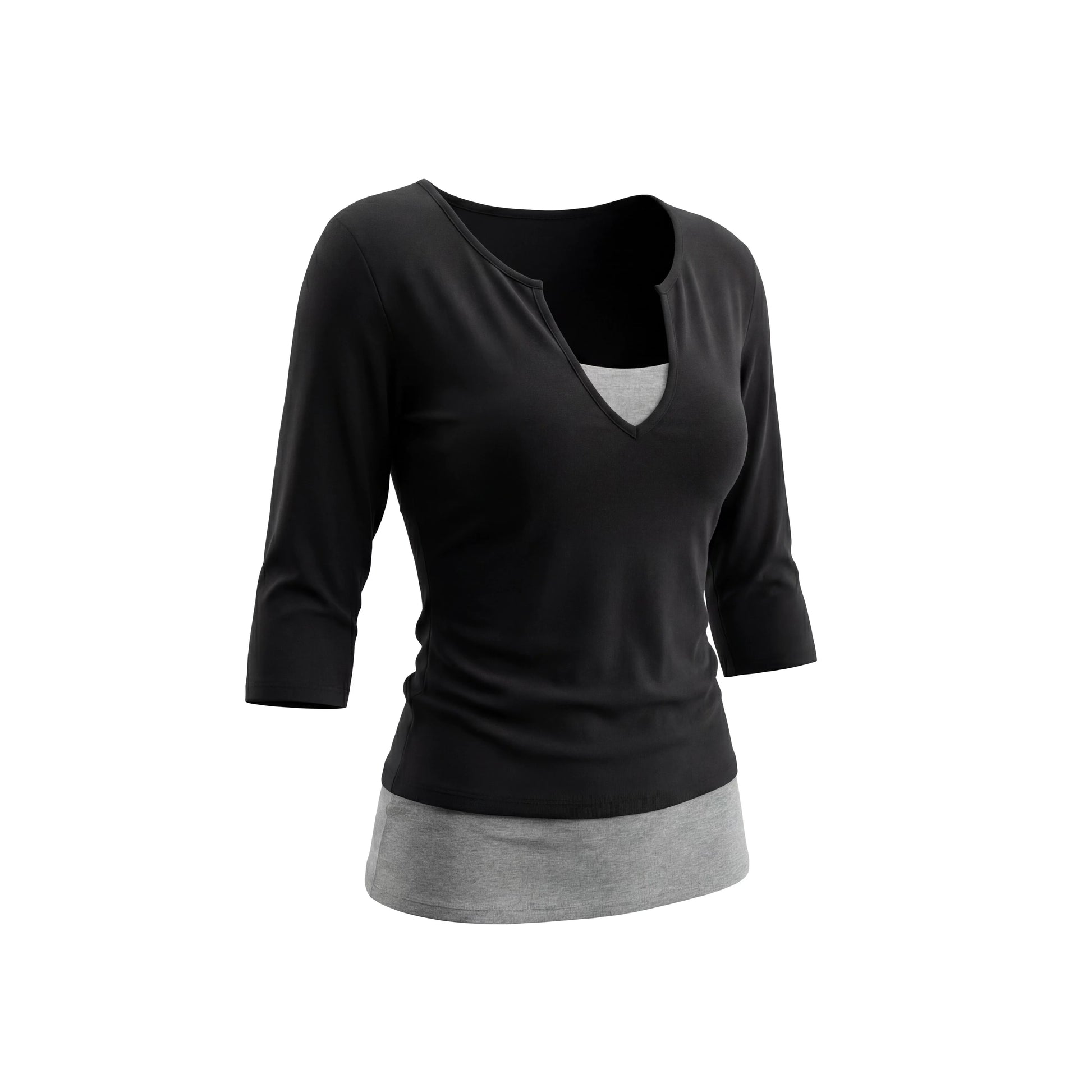 Black Slim-Fit V-Neck Blouse
