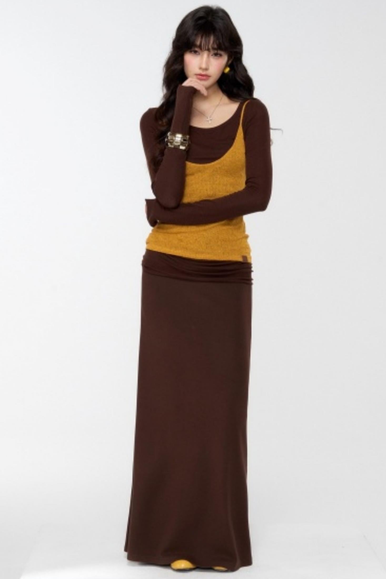 Brown Knit Relaxed Skirt