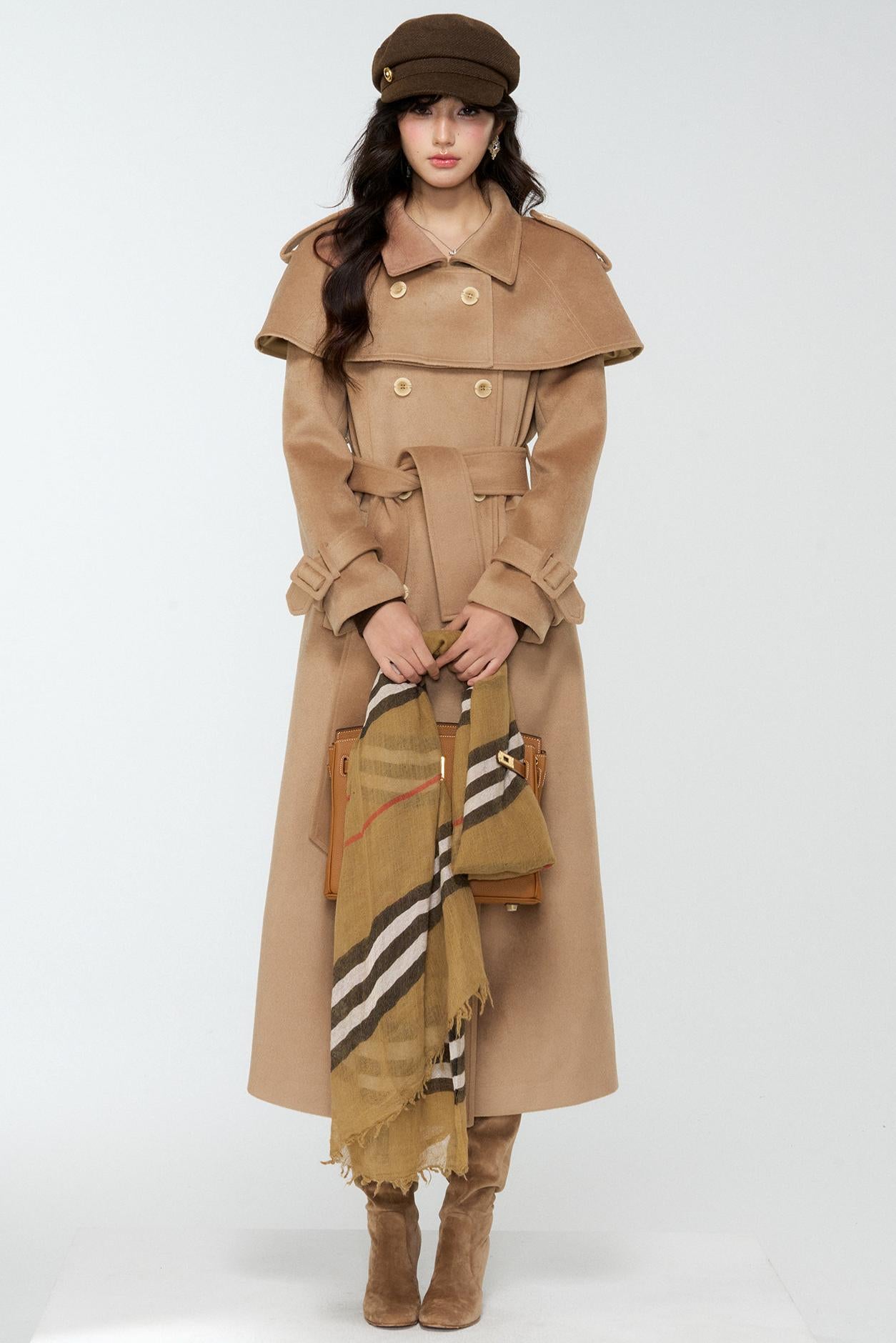 Coffee-Colored Woolen Cloak Coat Set-Up