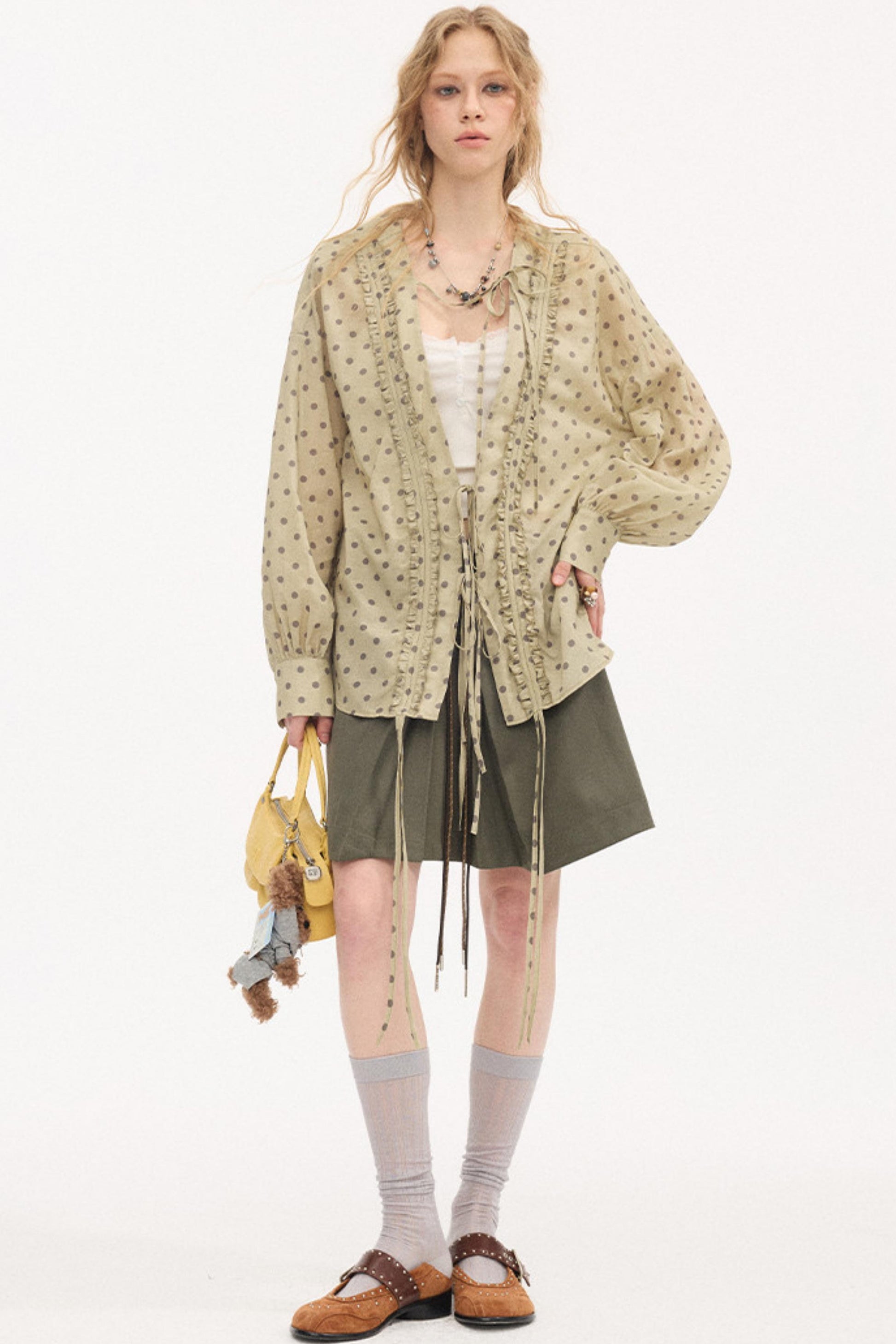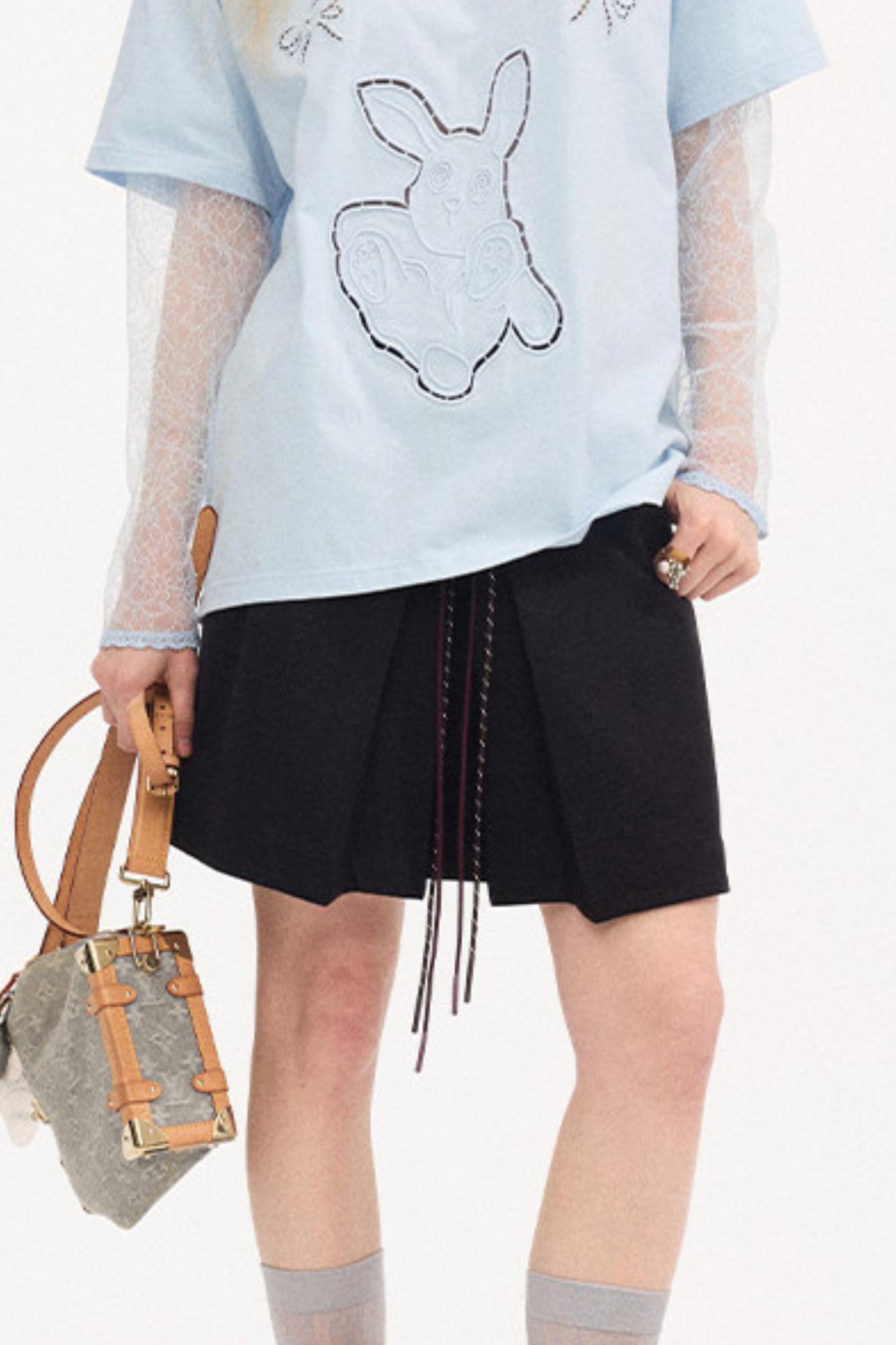 Color-Block Tie Pleated Skirt