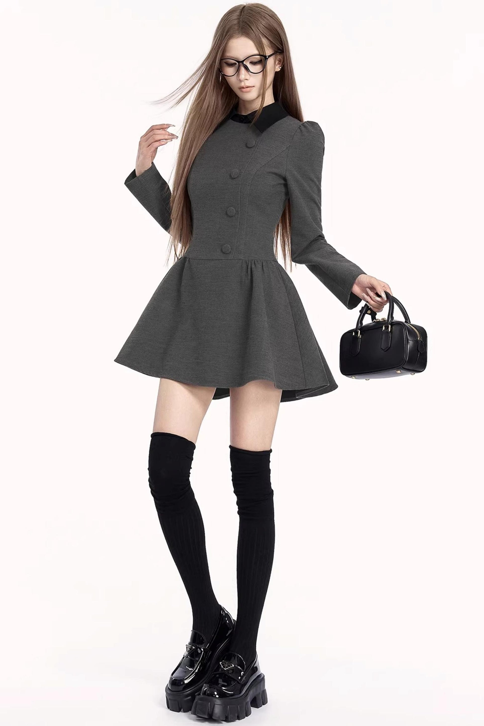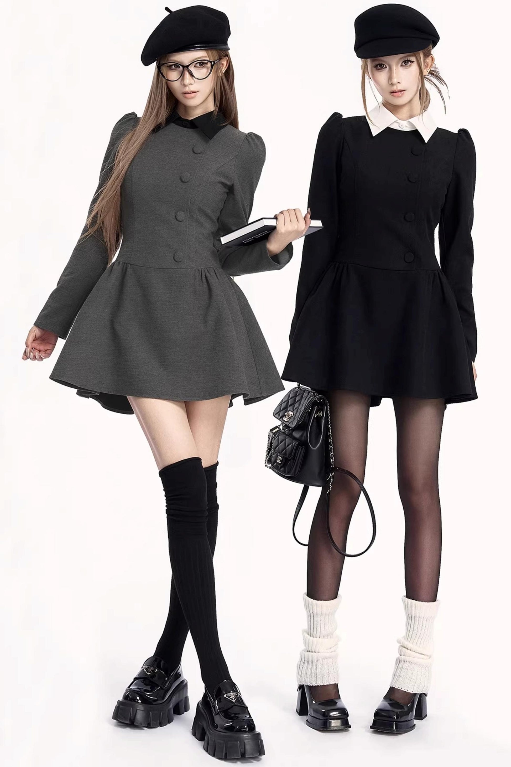 French Retro Color-Blocking Dress
