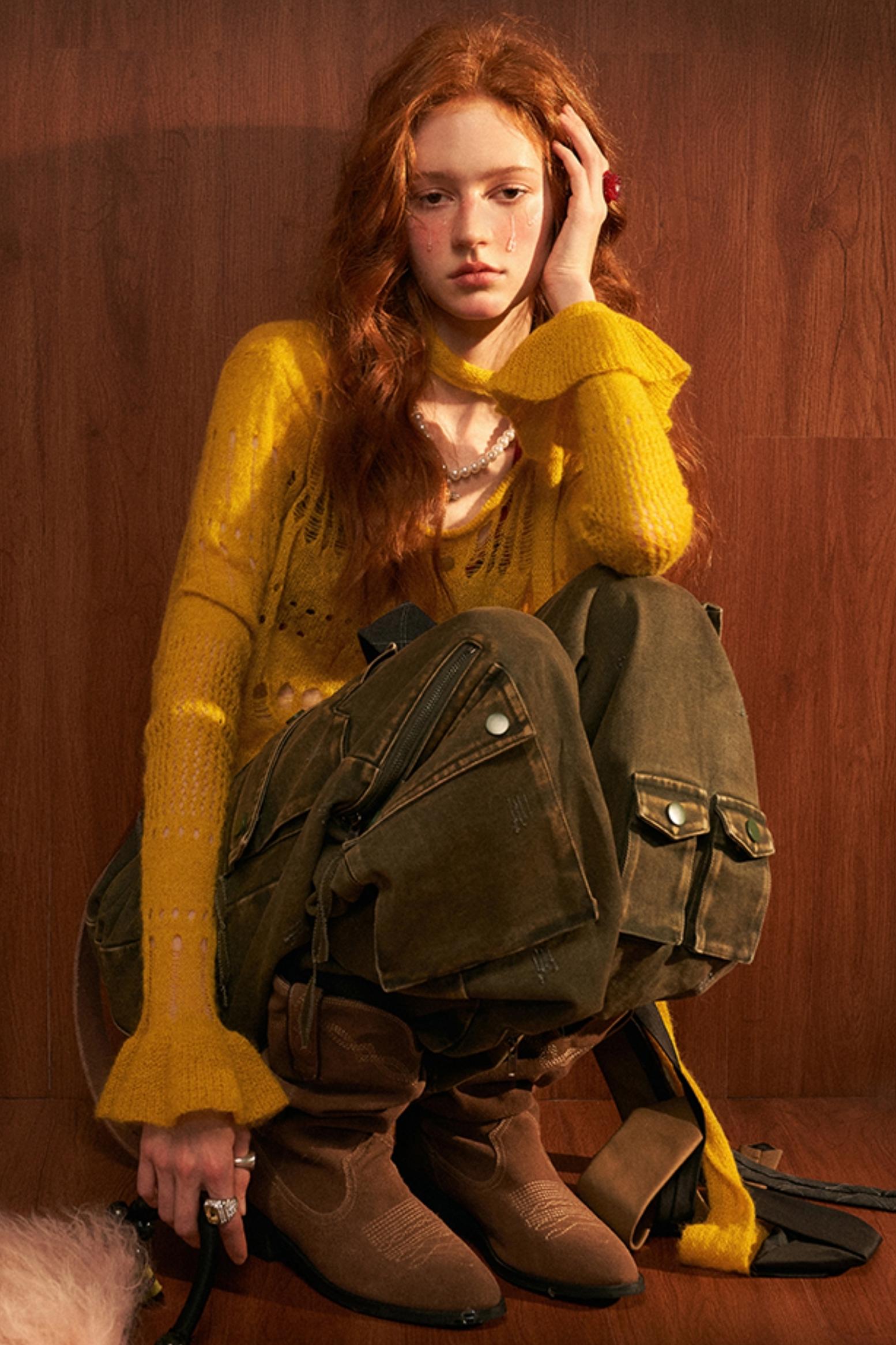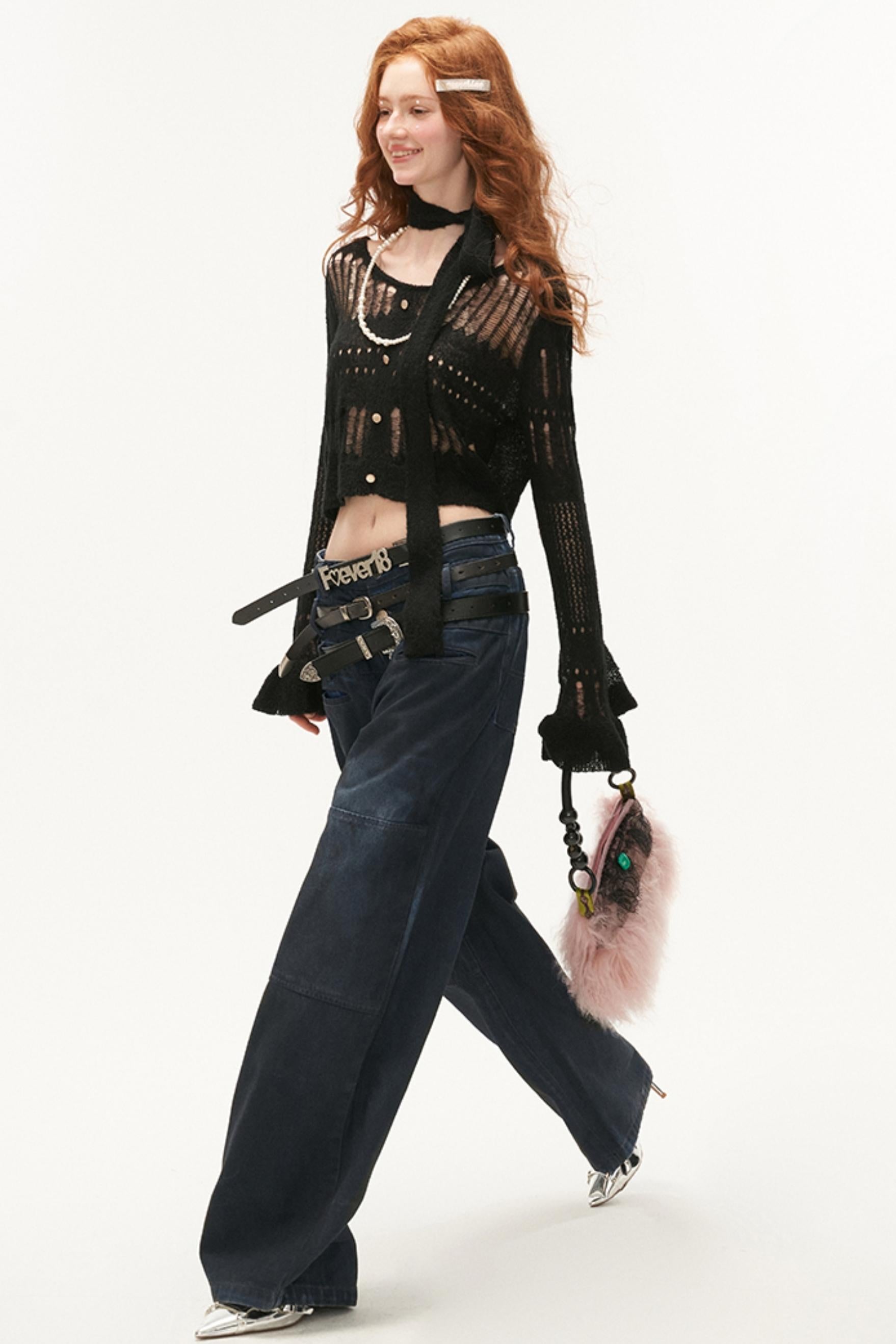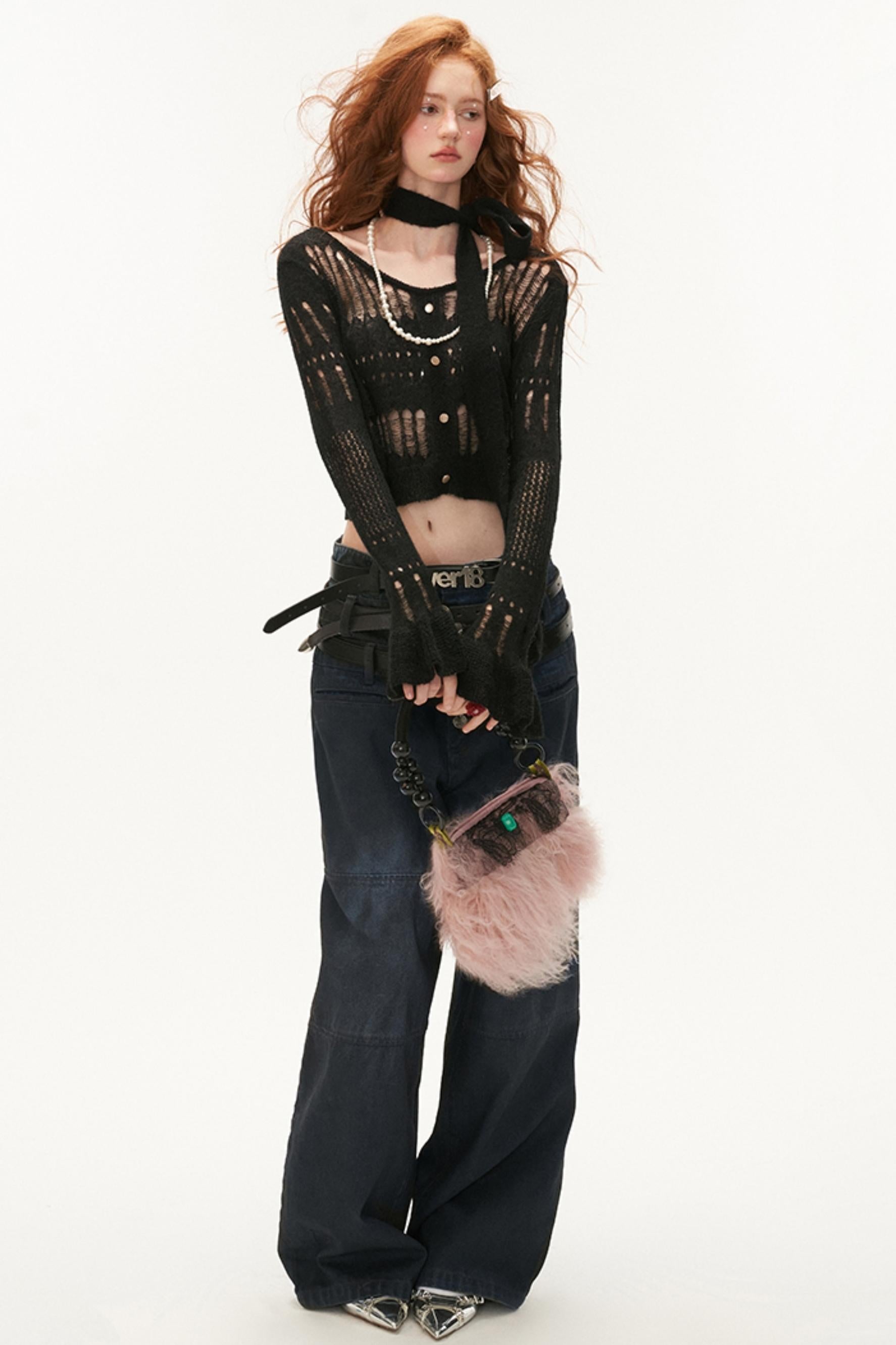 Wide-Neck Knit Cardigan