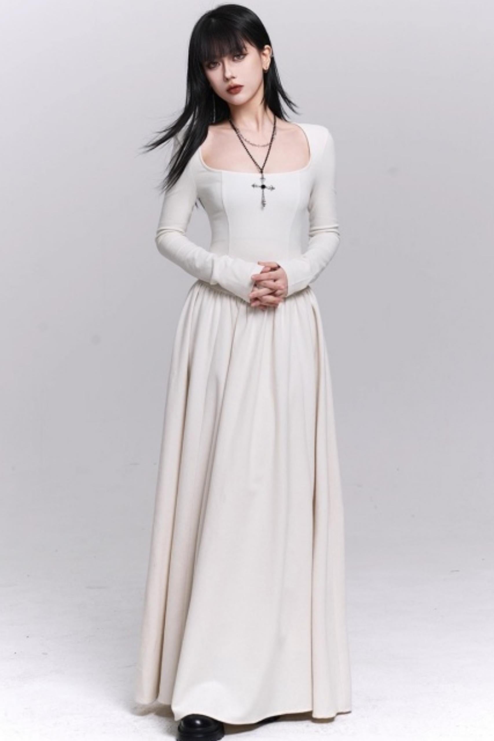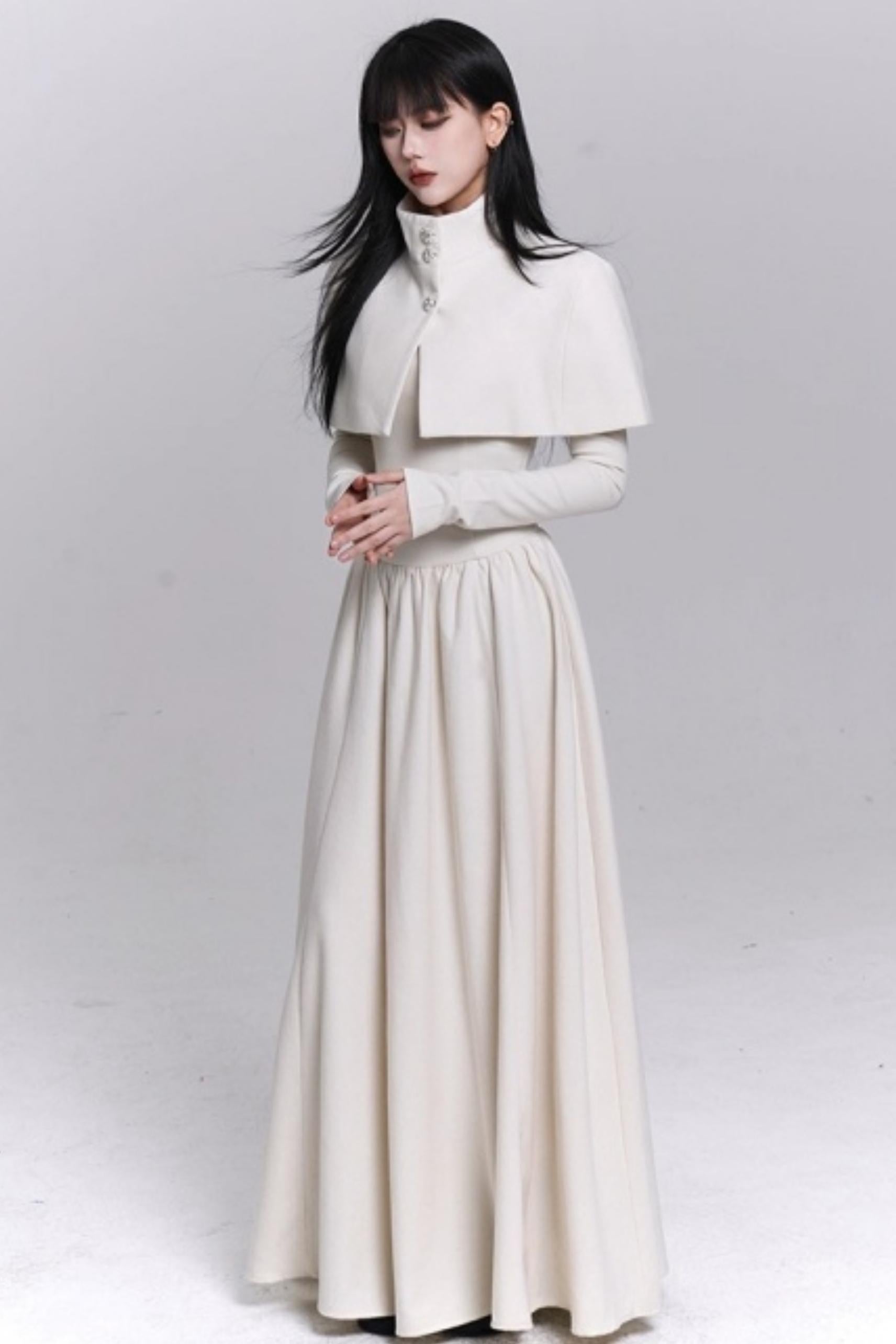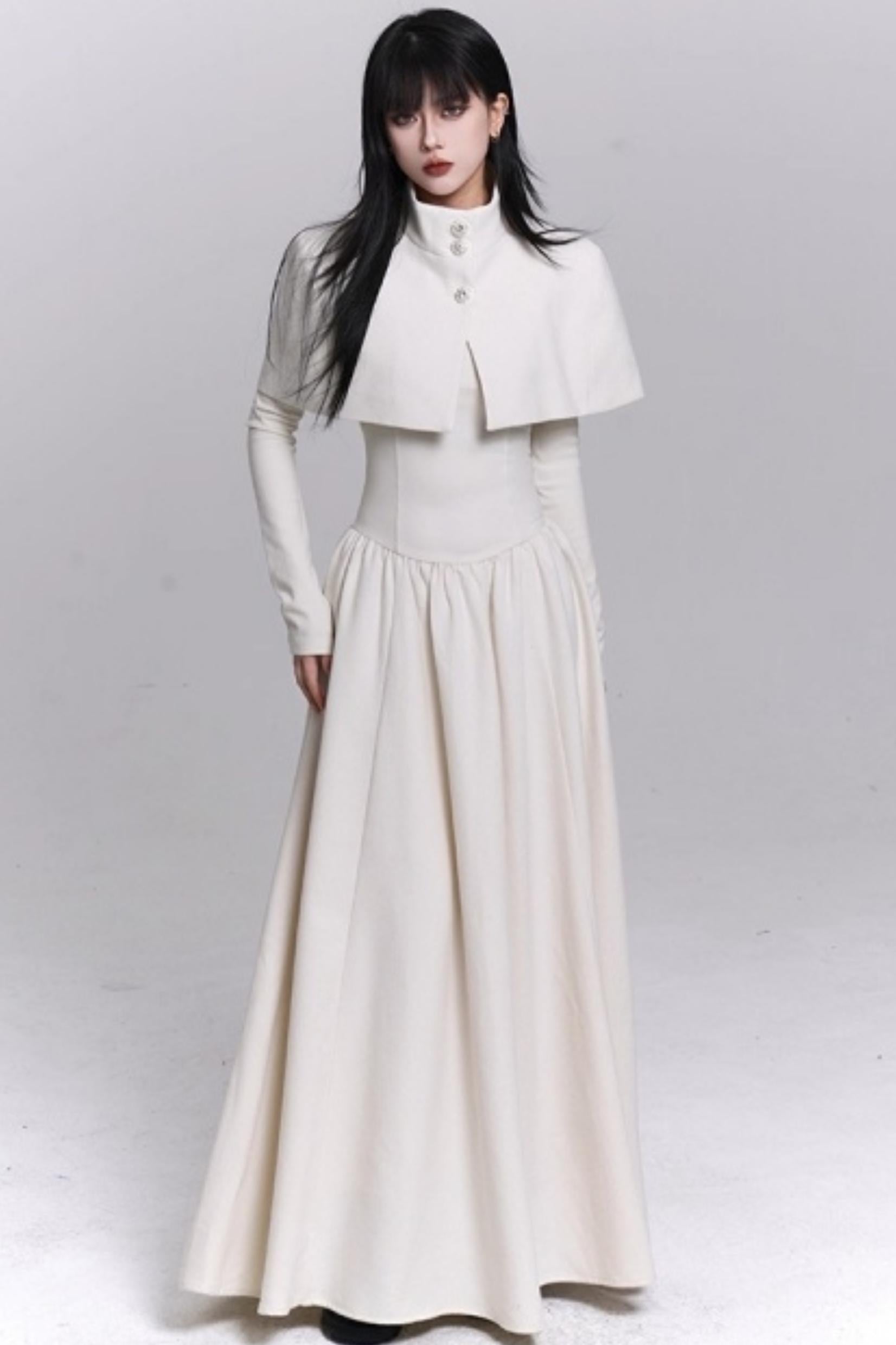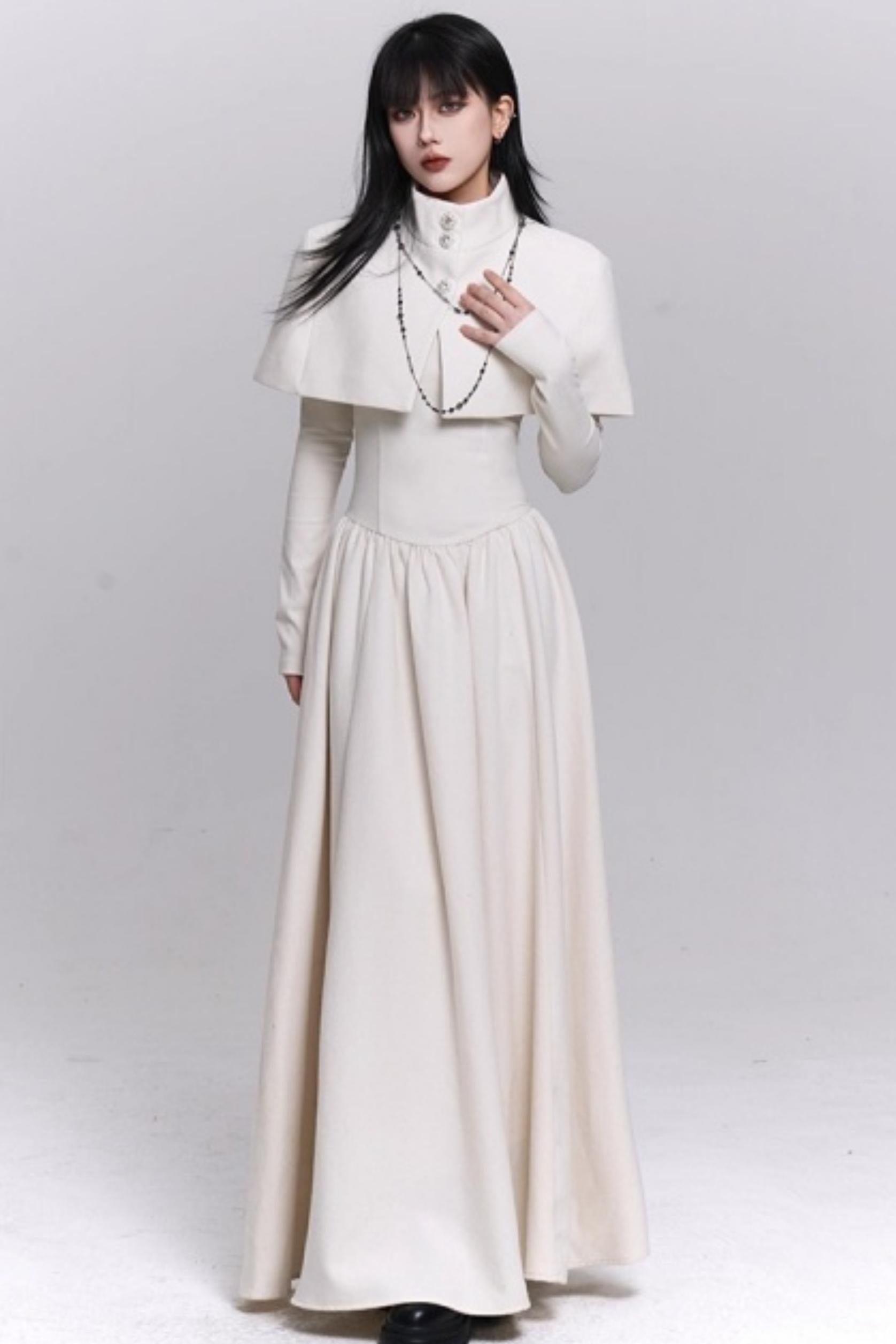 Off-White Cape Dress Set