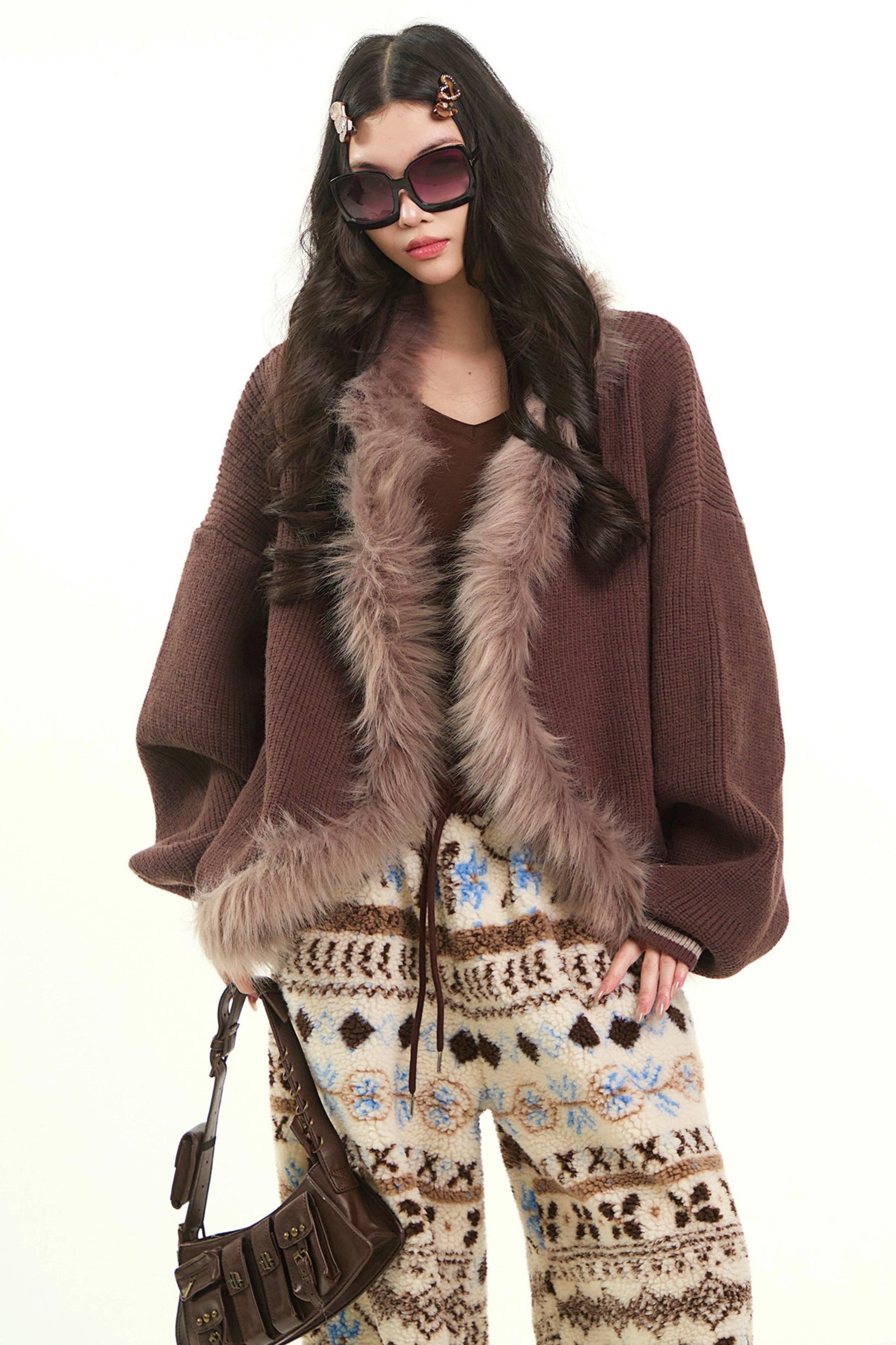 Plush Collar Knitted Cardigan