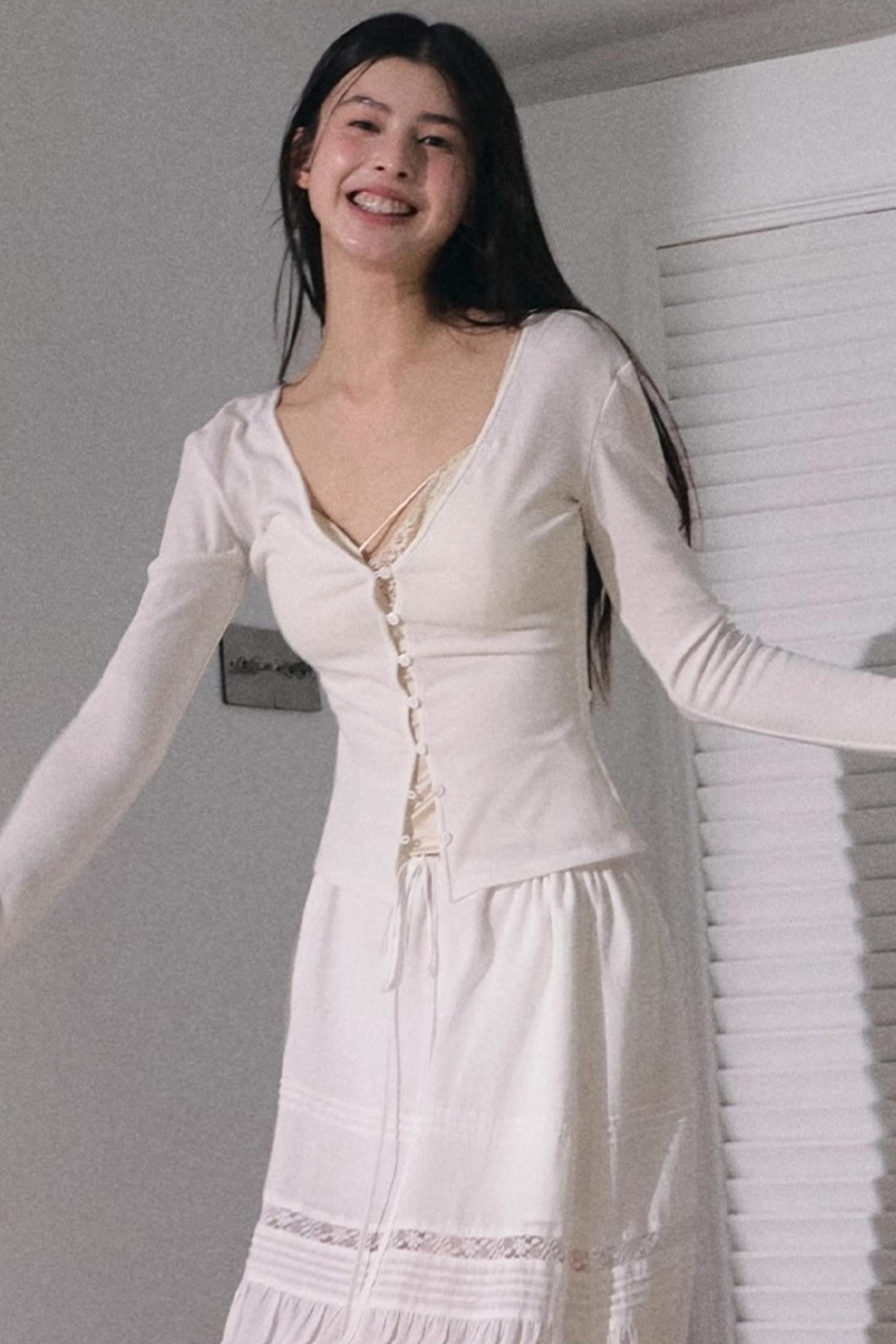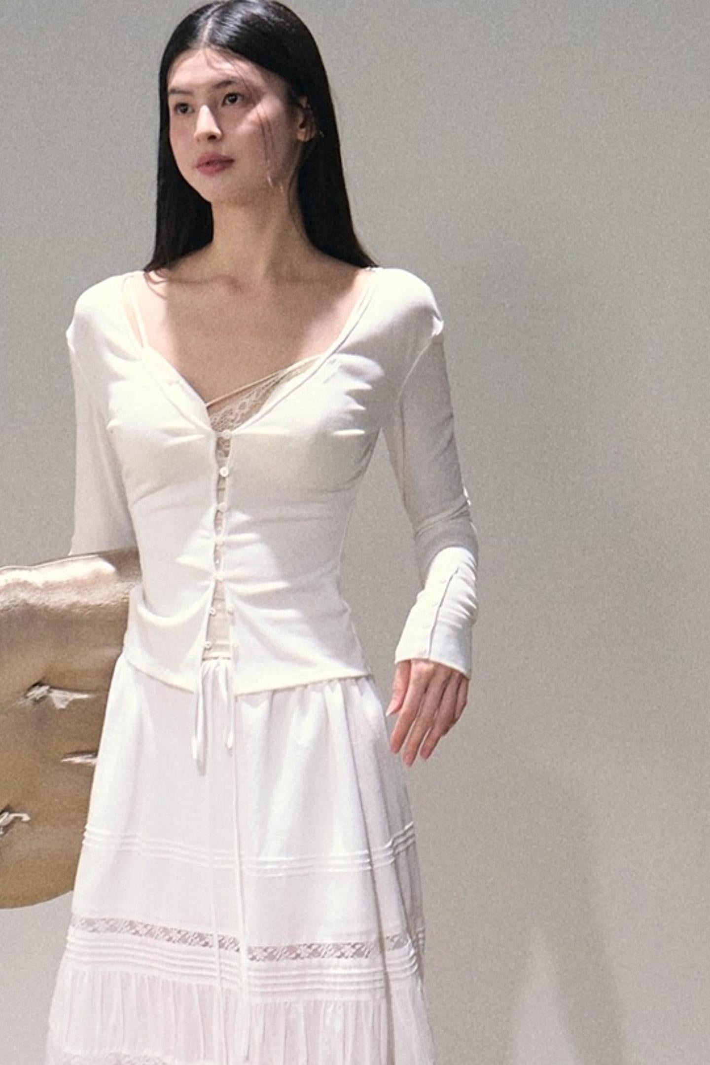 Stretch Linen Large V-Neck Cardigan