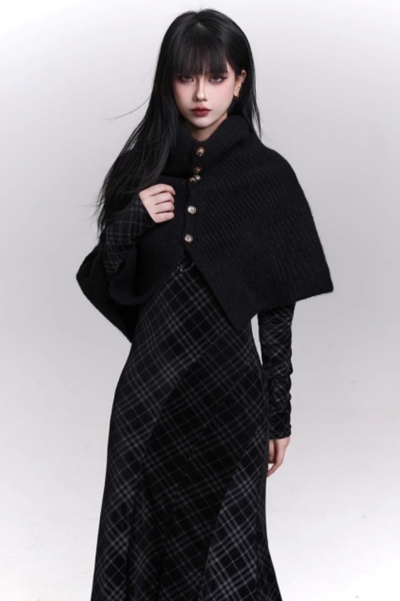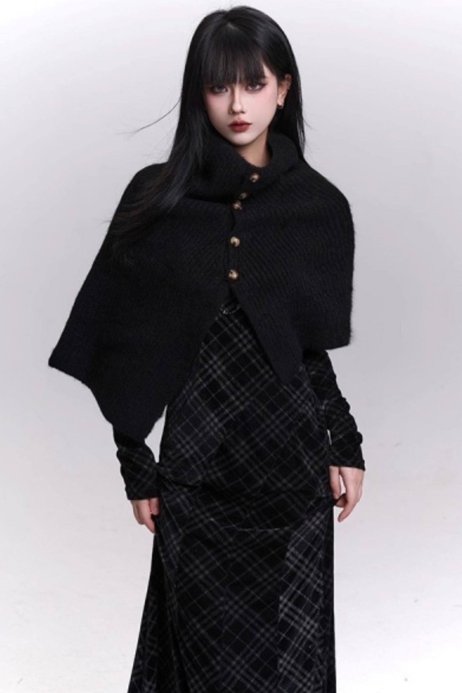 Stunning Black Knitted Cape