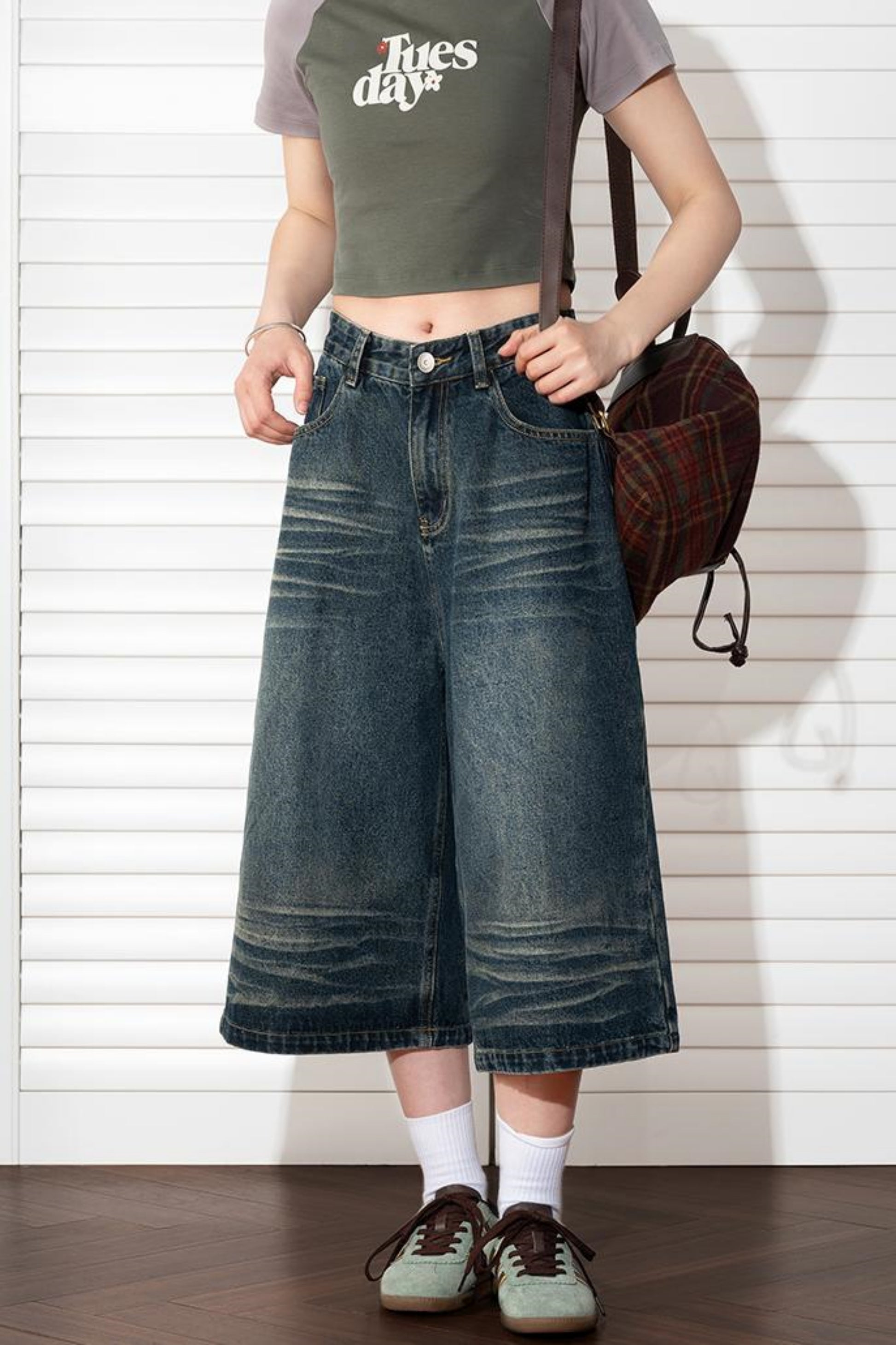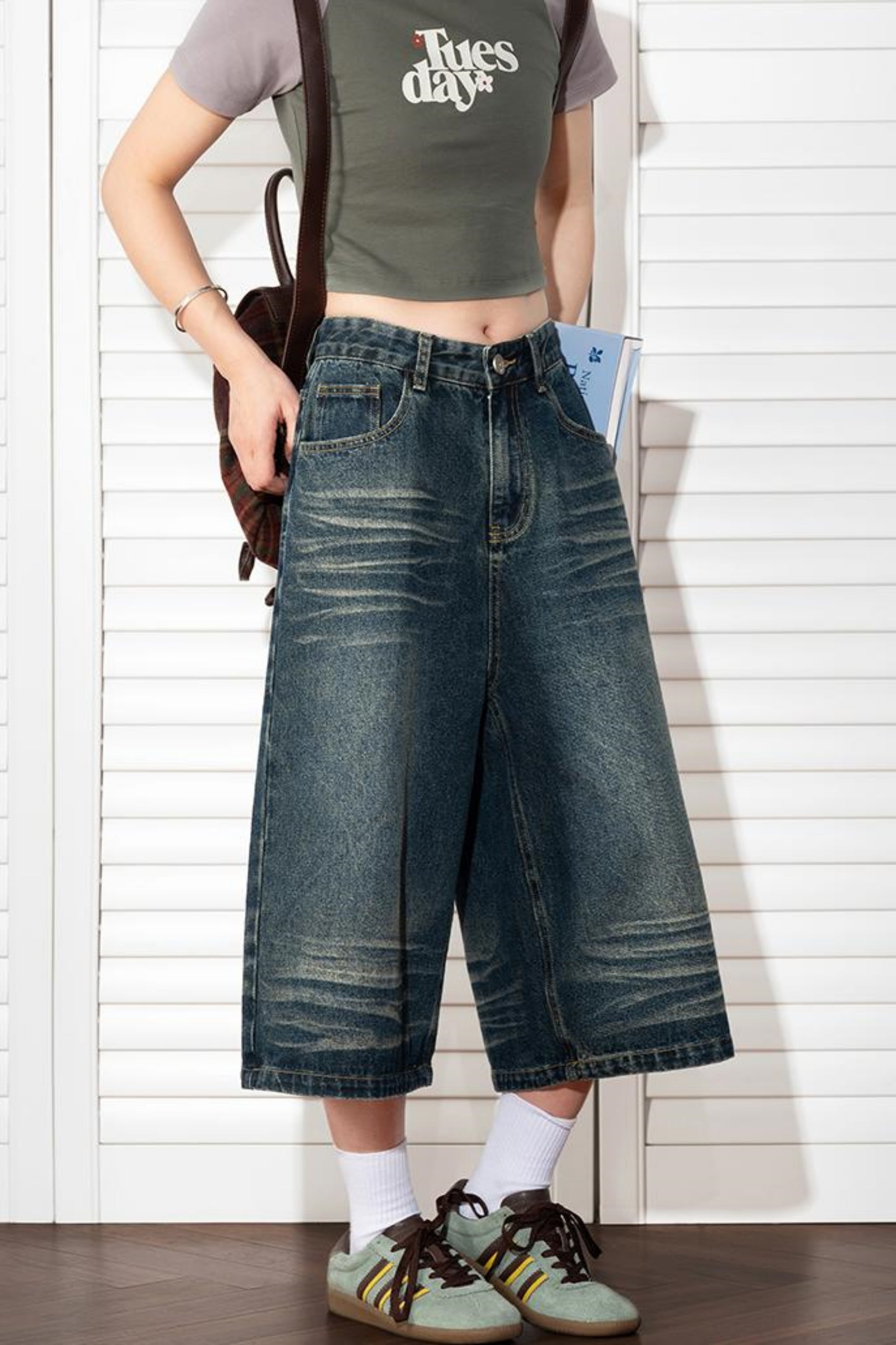 Wide Leg Cropped Denim Pants
