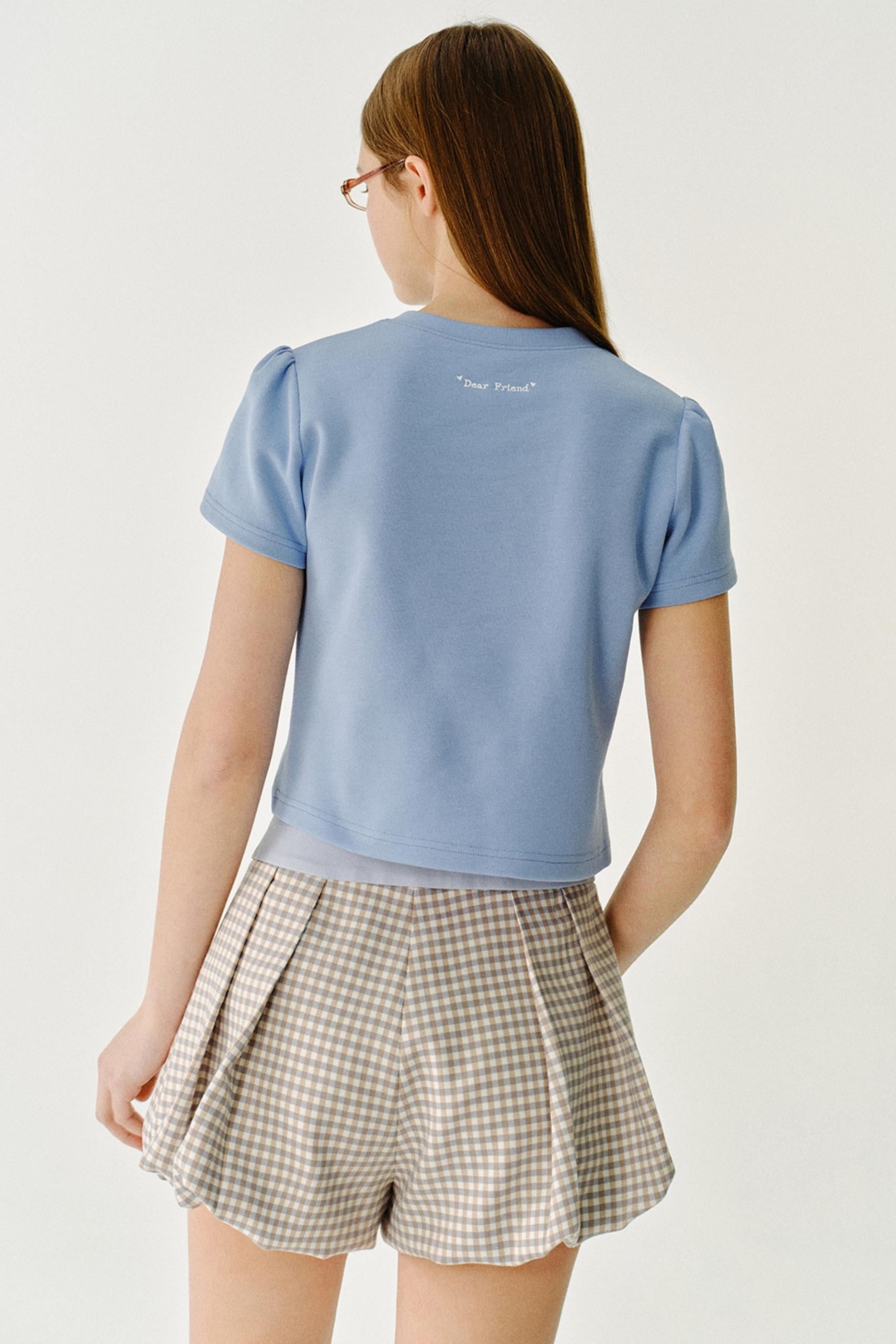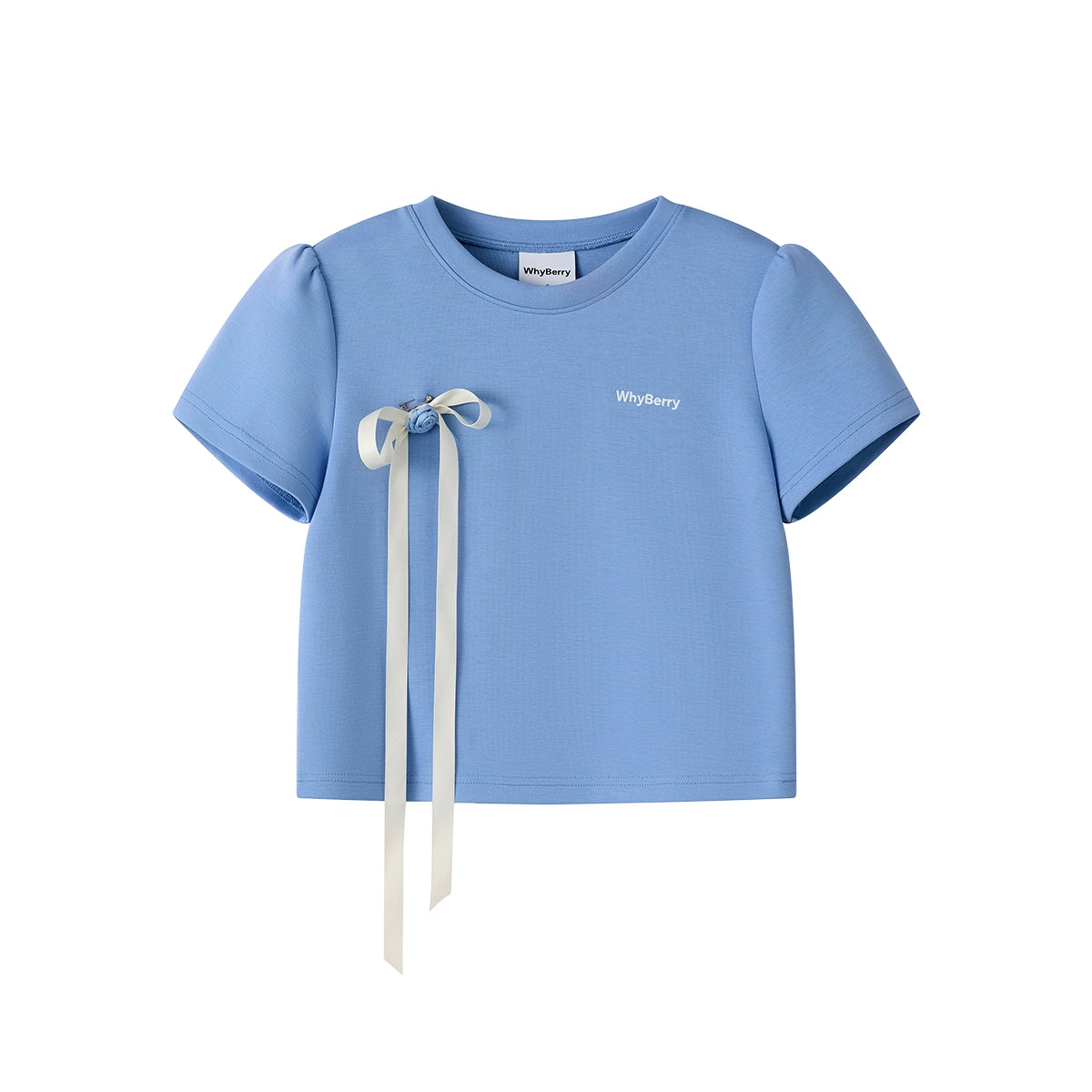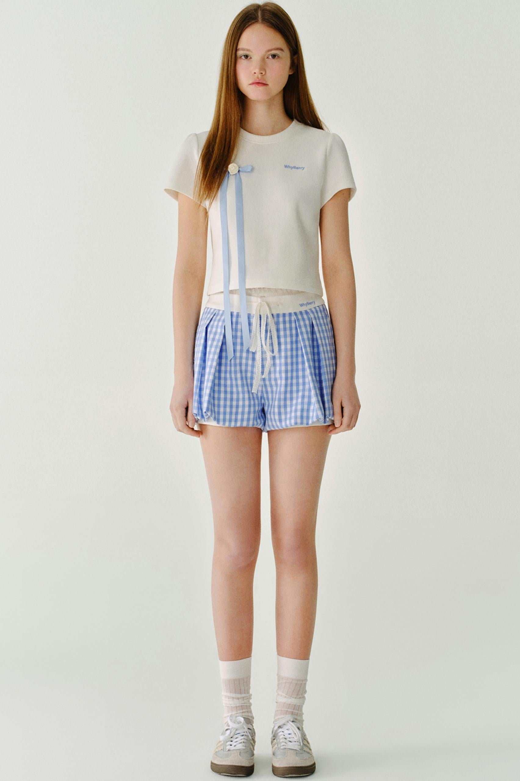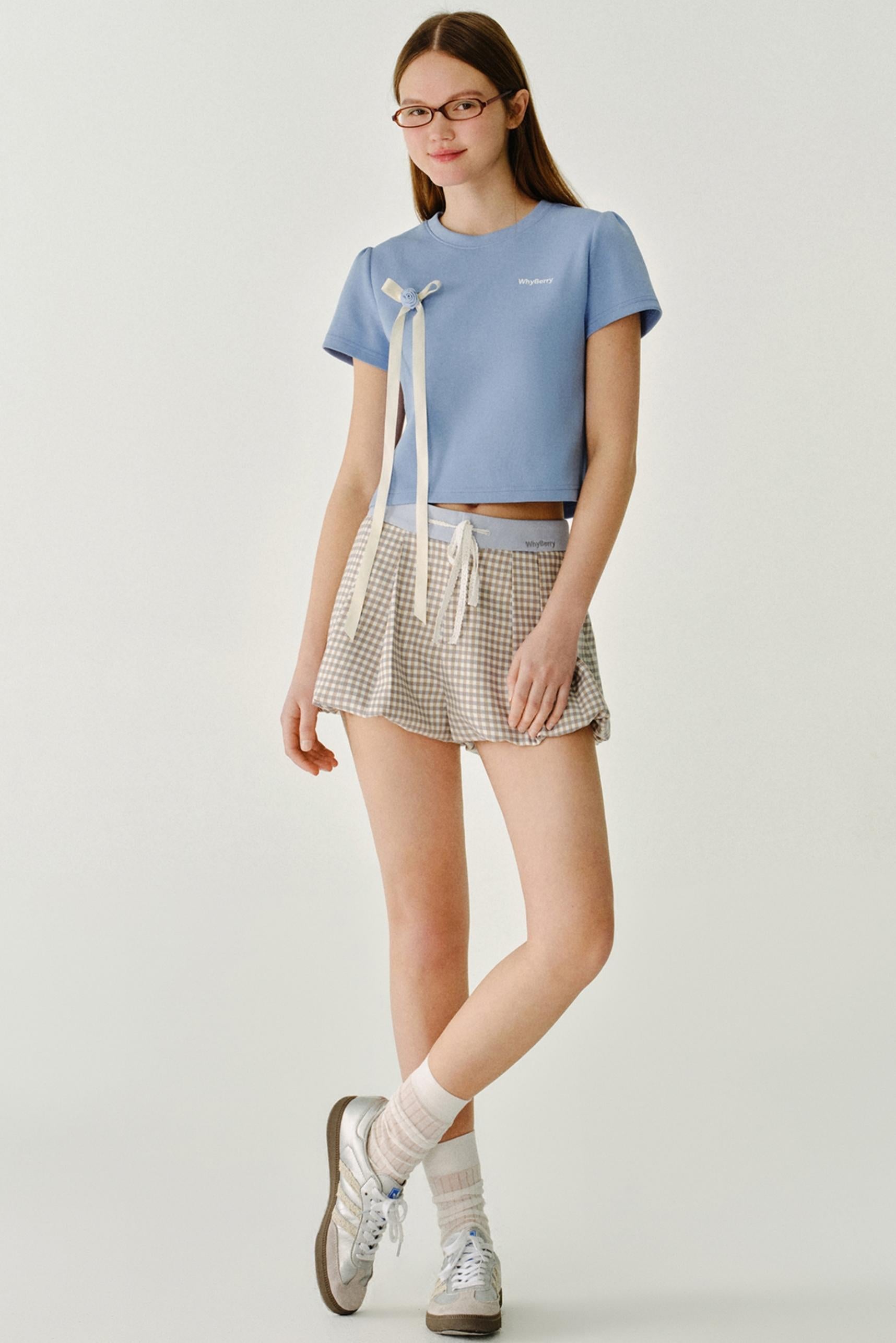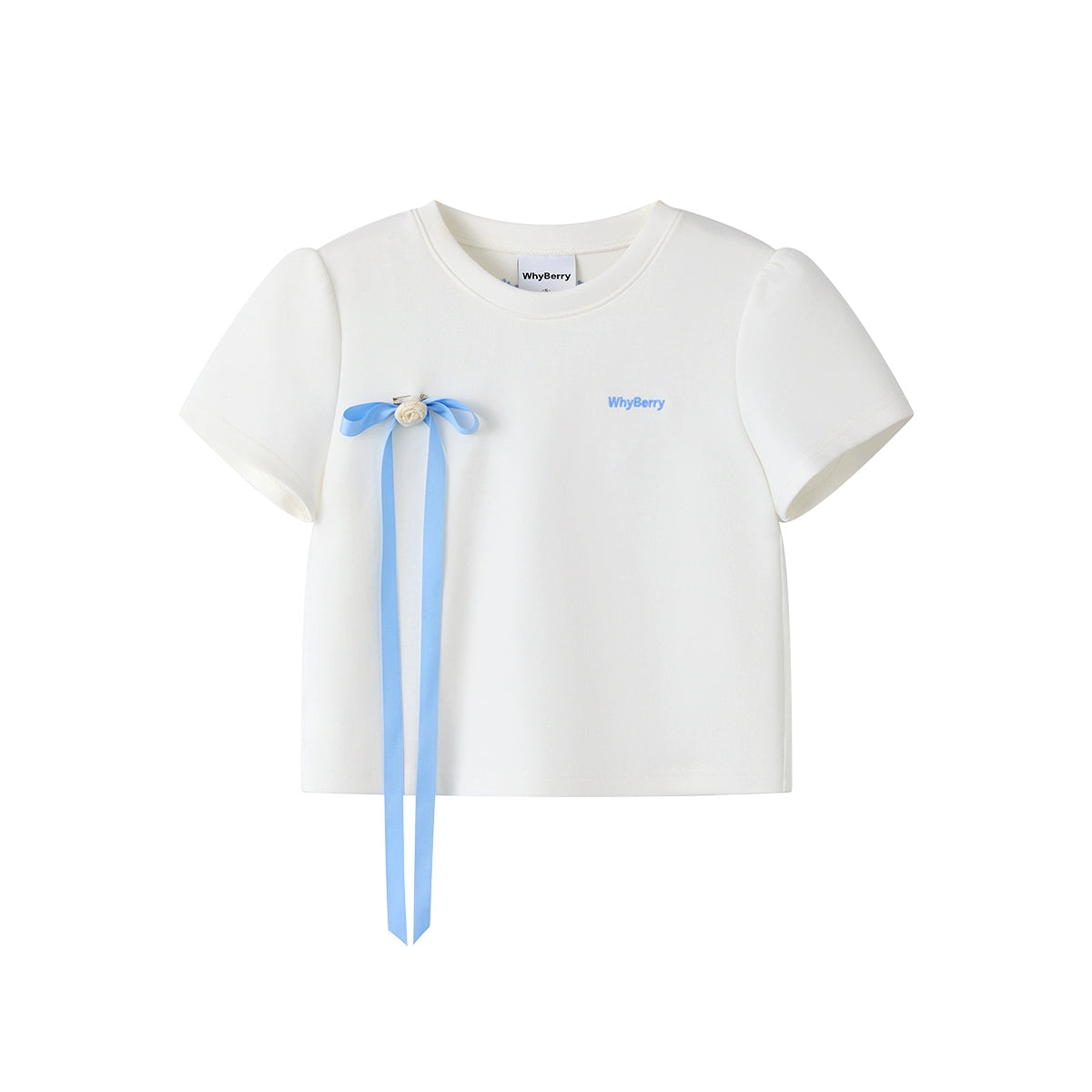 리본 디테일 레터 프린트 티셔츠