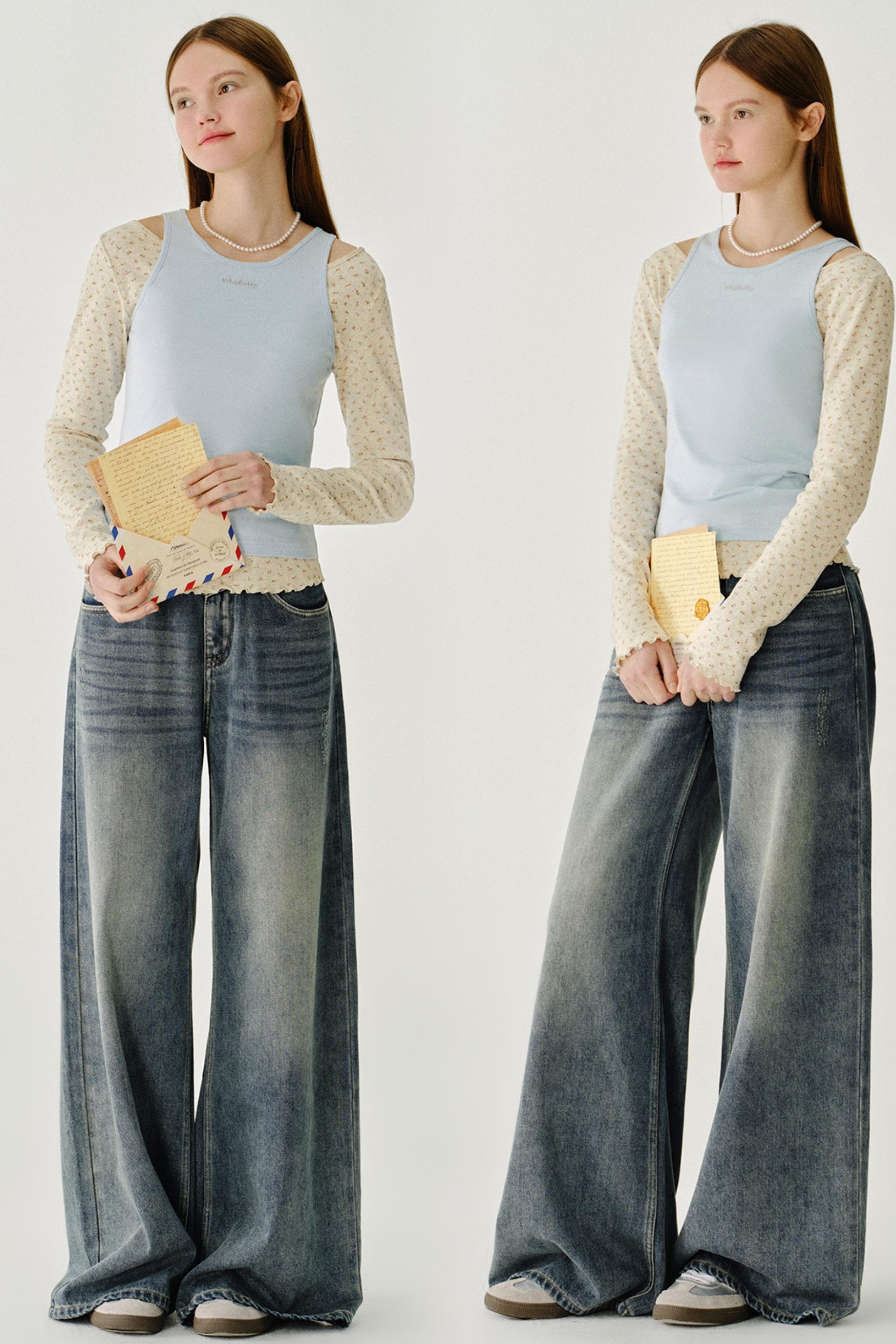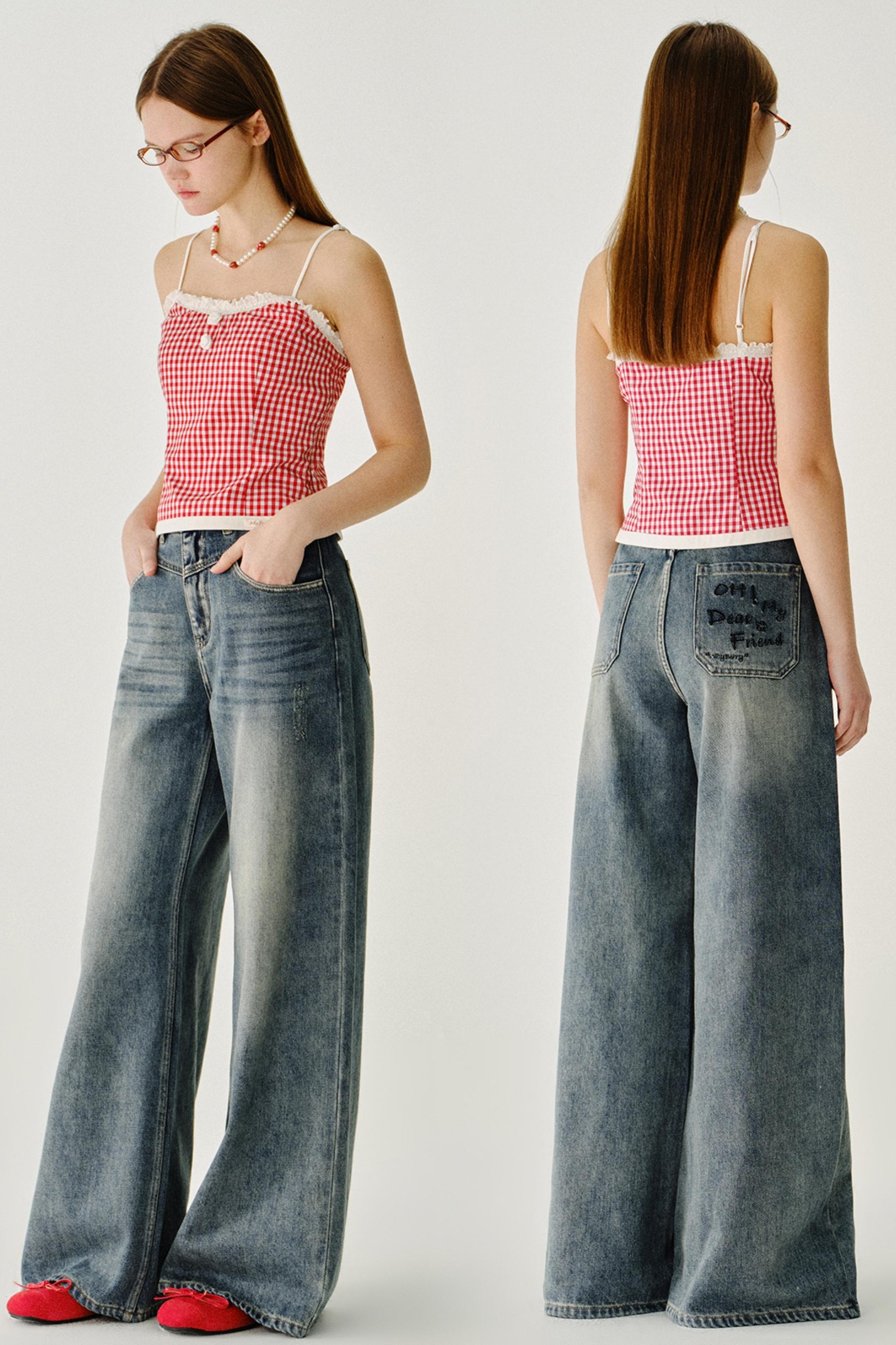 빈티지 하이 라이즈 슬리밍 진