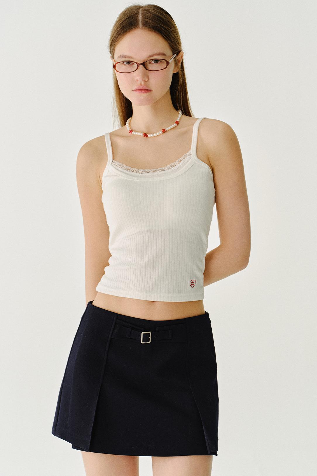 심플 레이스 크롭 탑