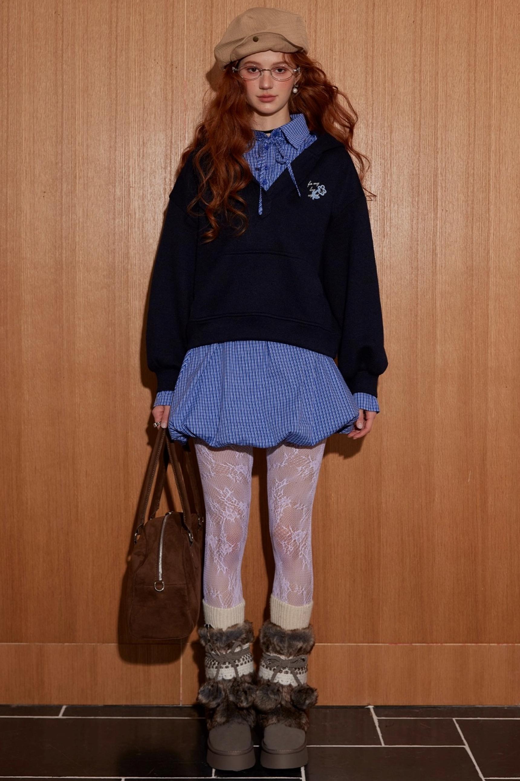 Plaid Mini Skirt Top With pants Set-Up