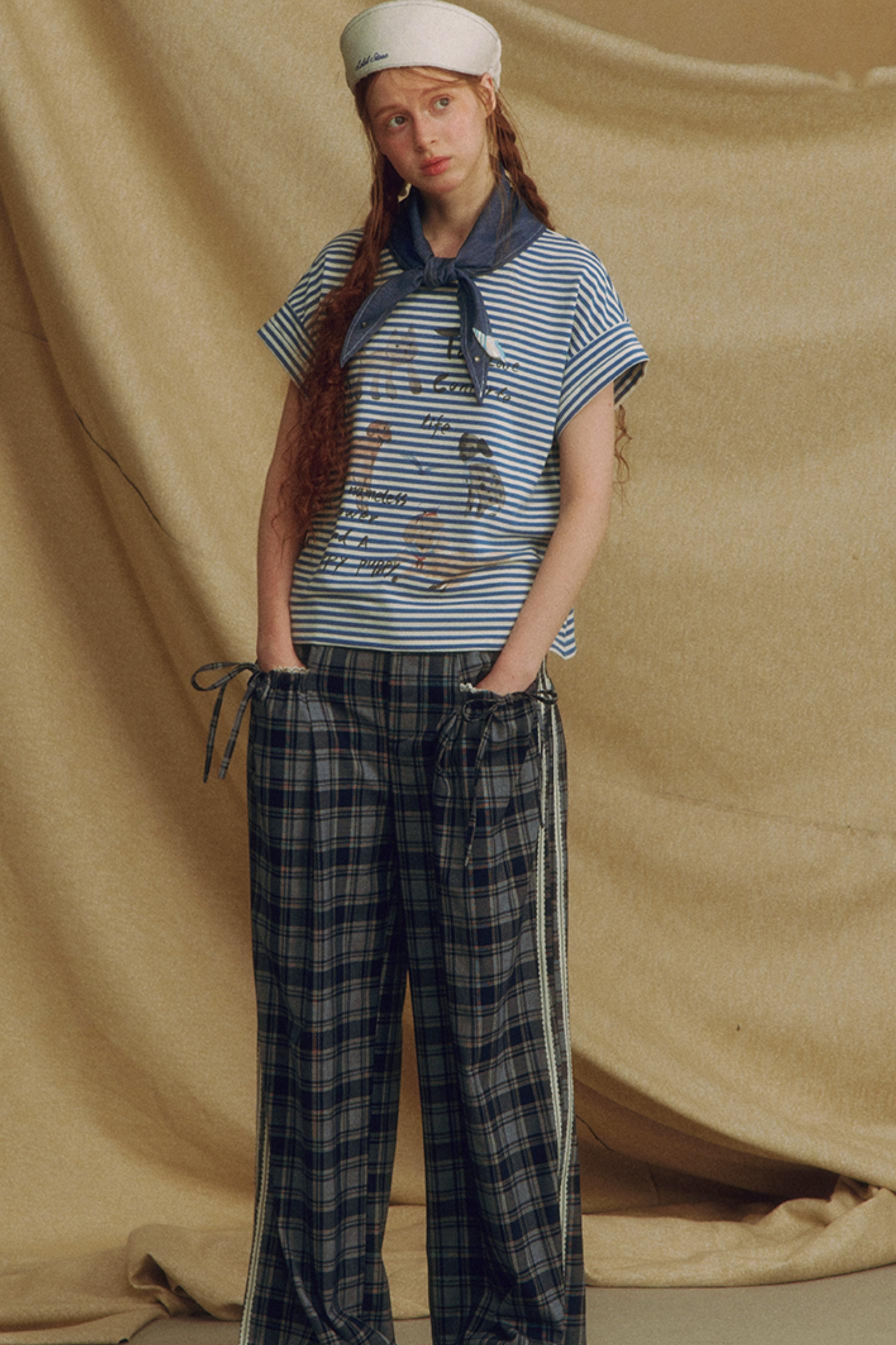 Chic Bow Tie Plaid Wide-Leg Trousers