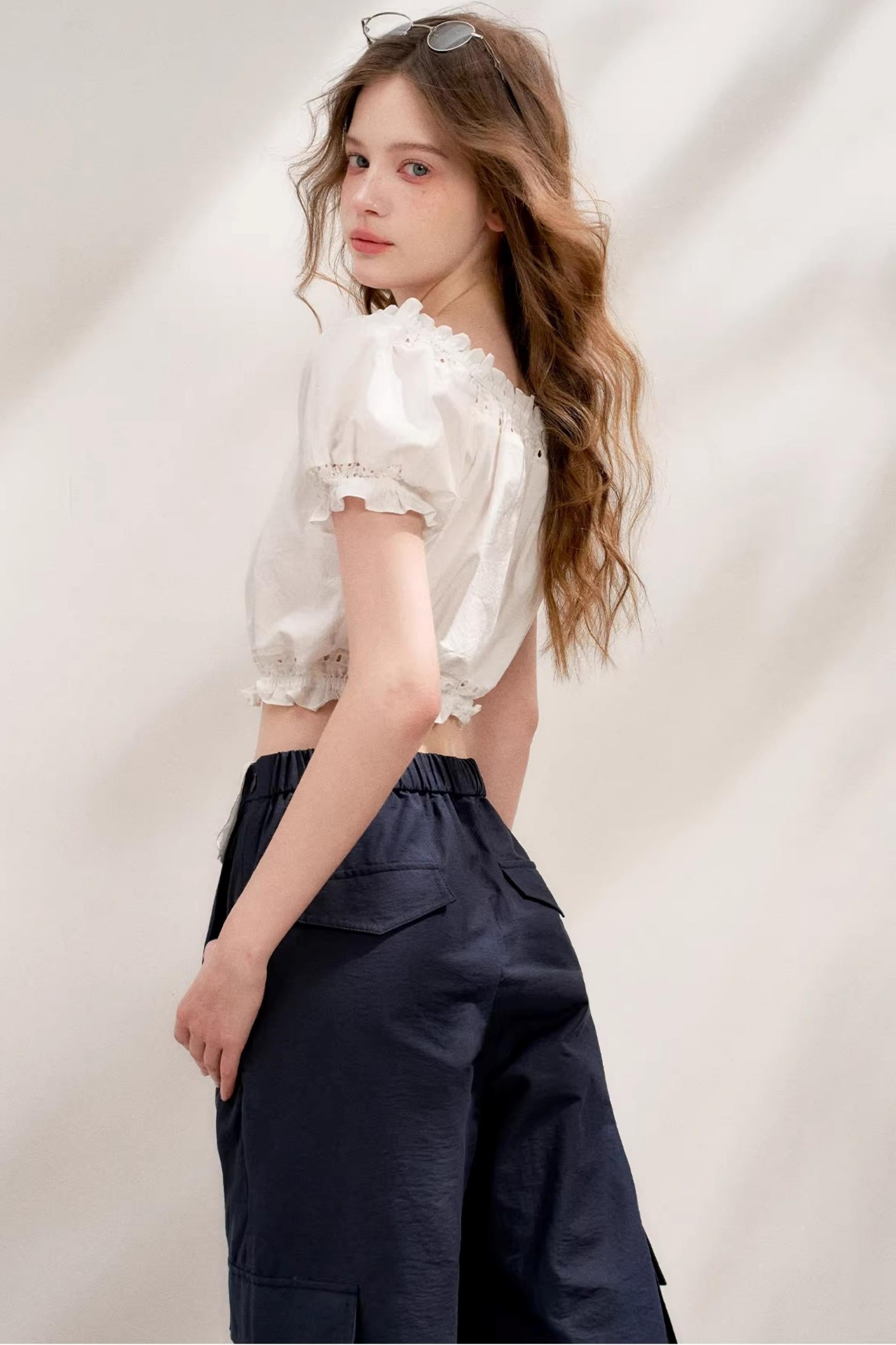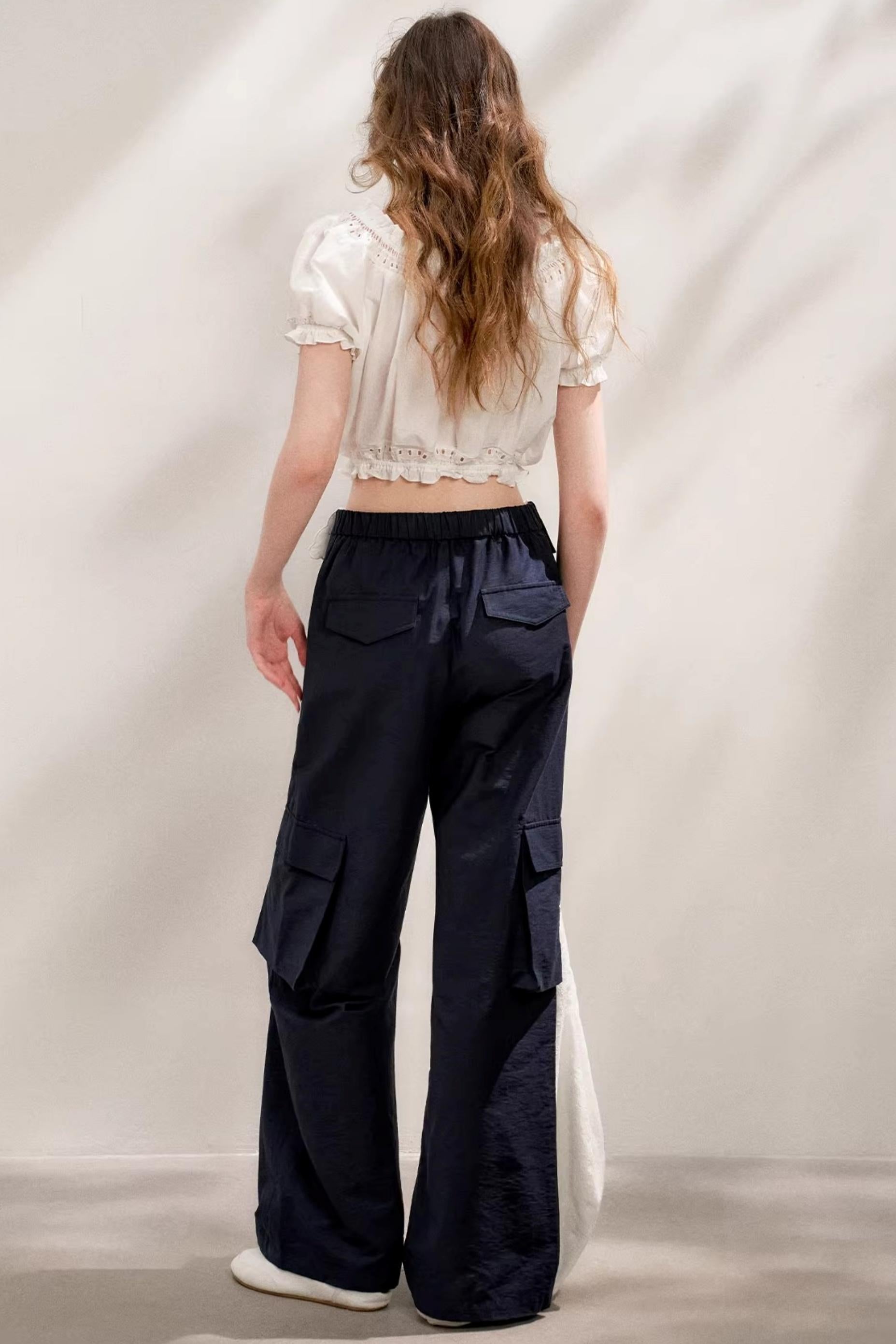 Colorblock Cotton Lace Wide Leg Pants