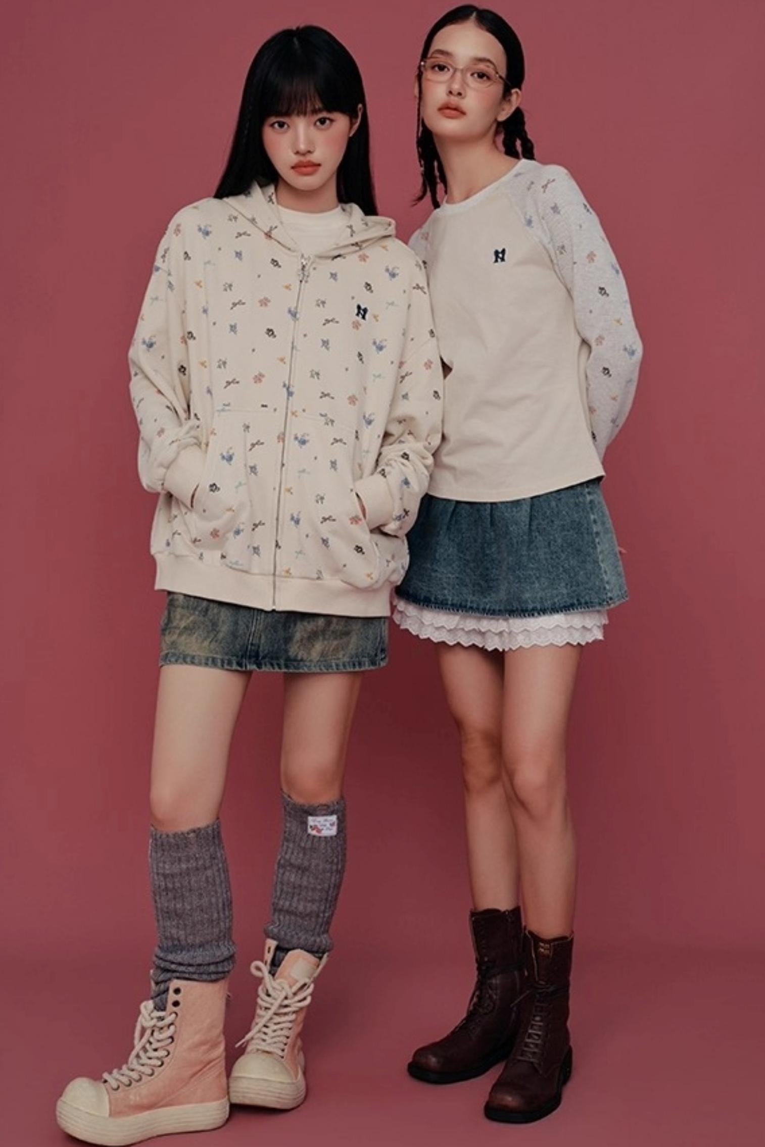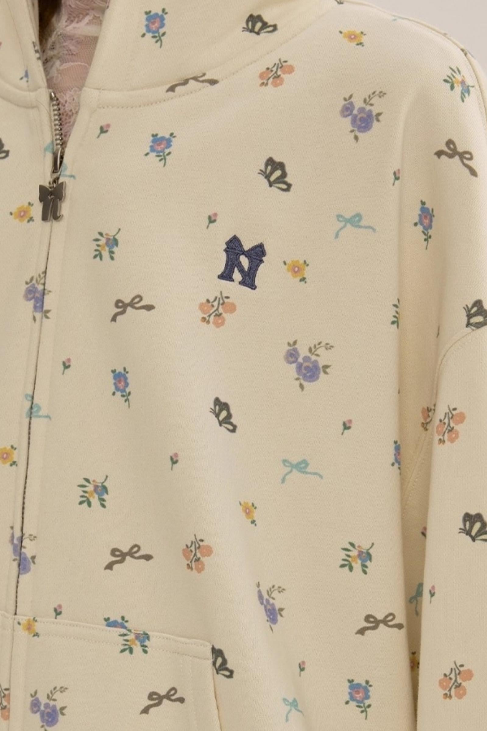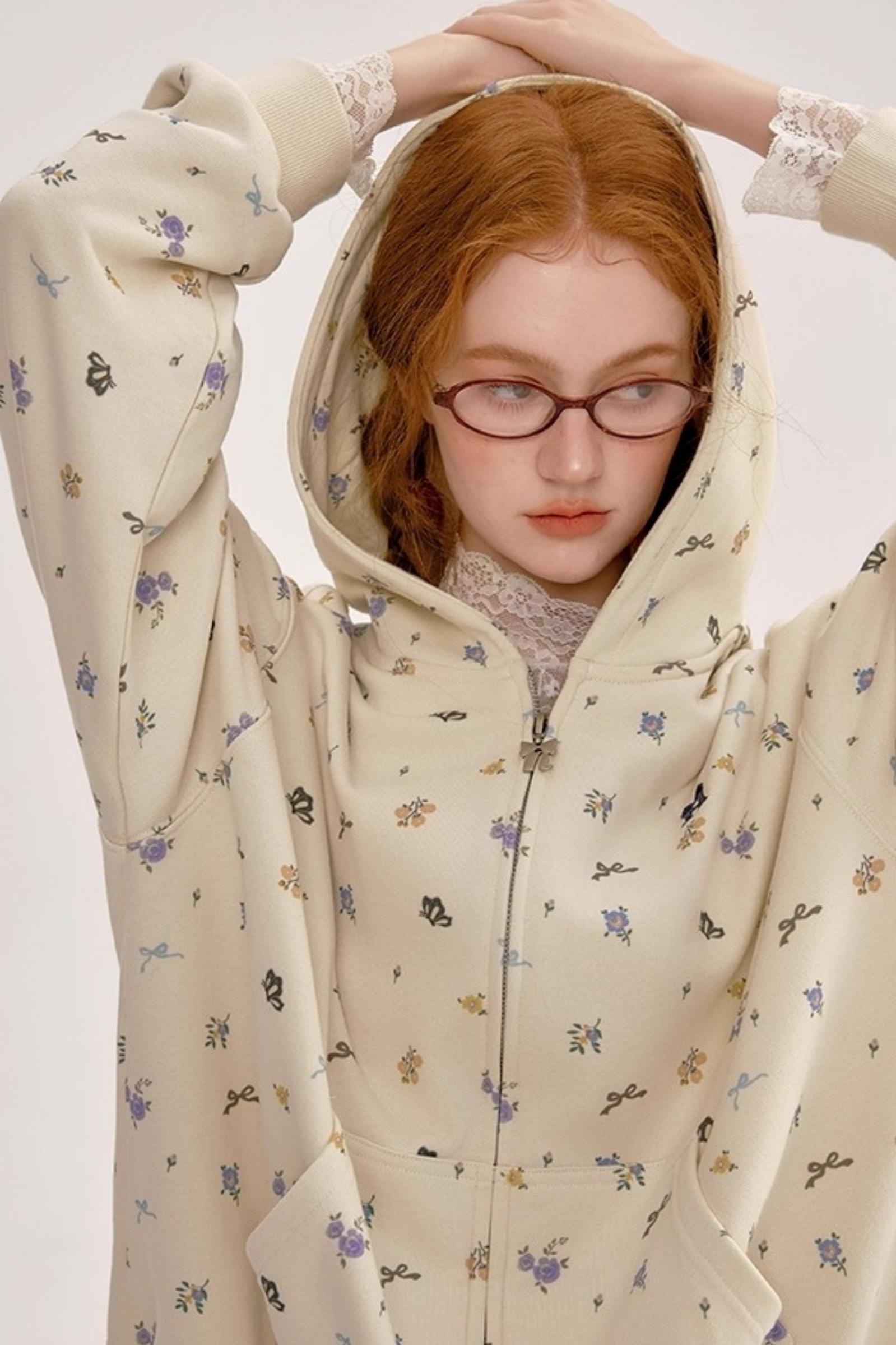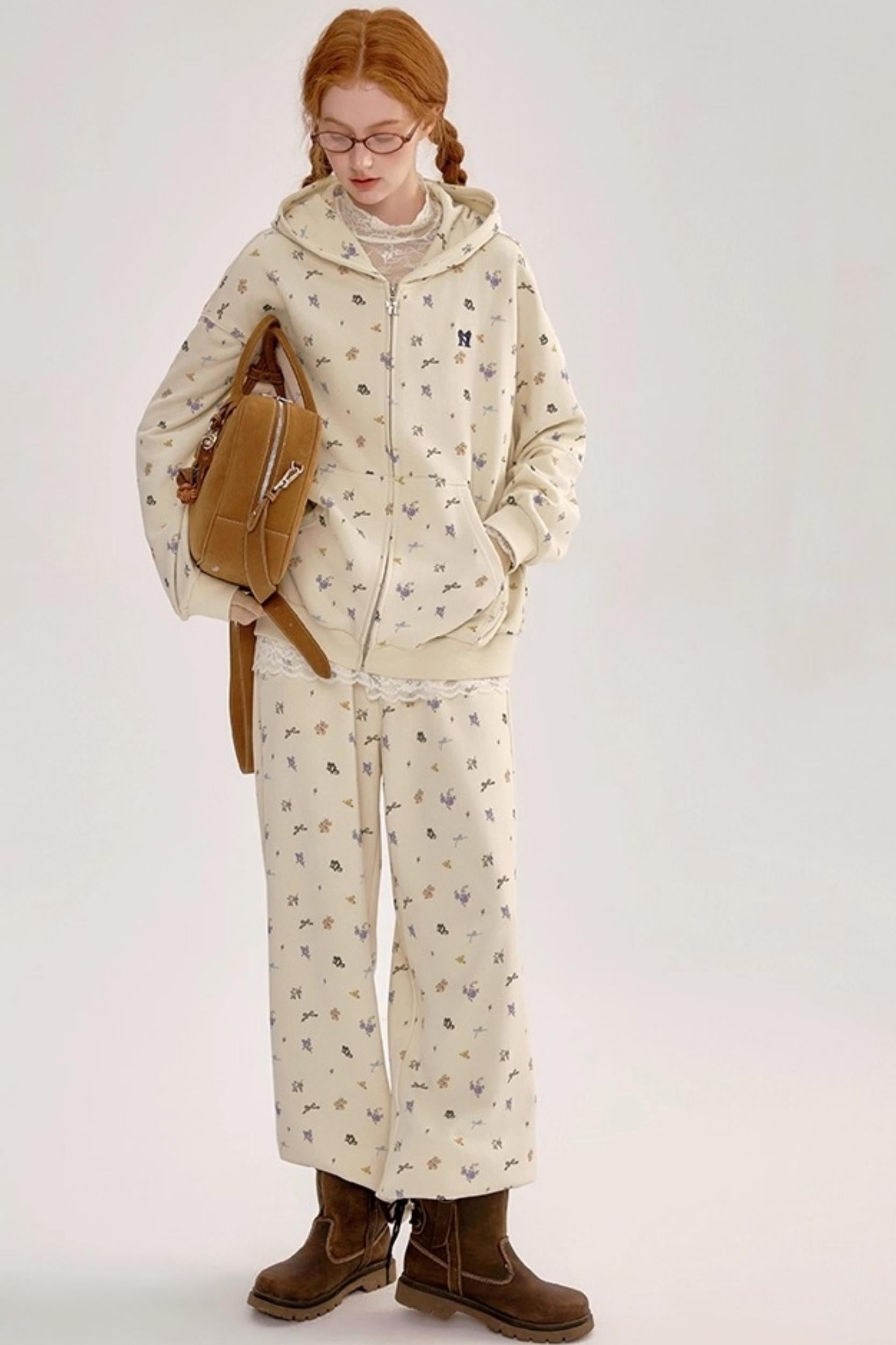 Floral Hooded Sweatshirt Cardigan Set-Up