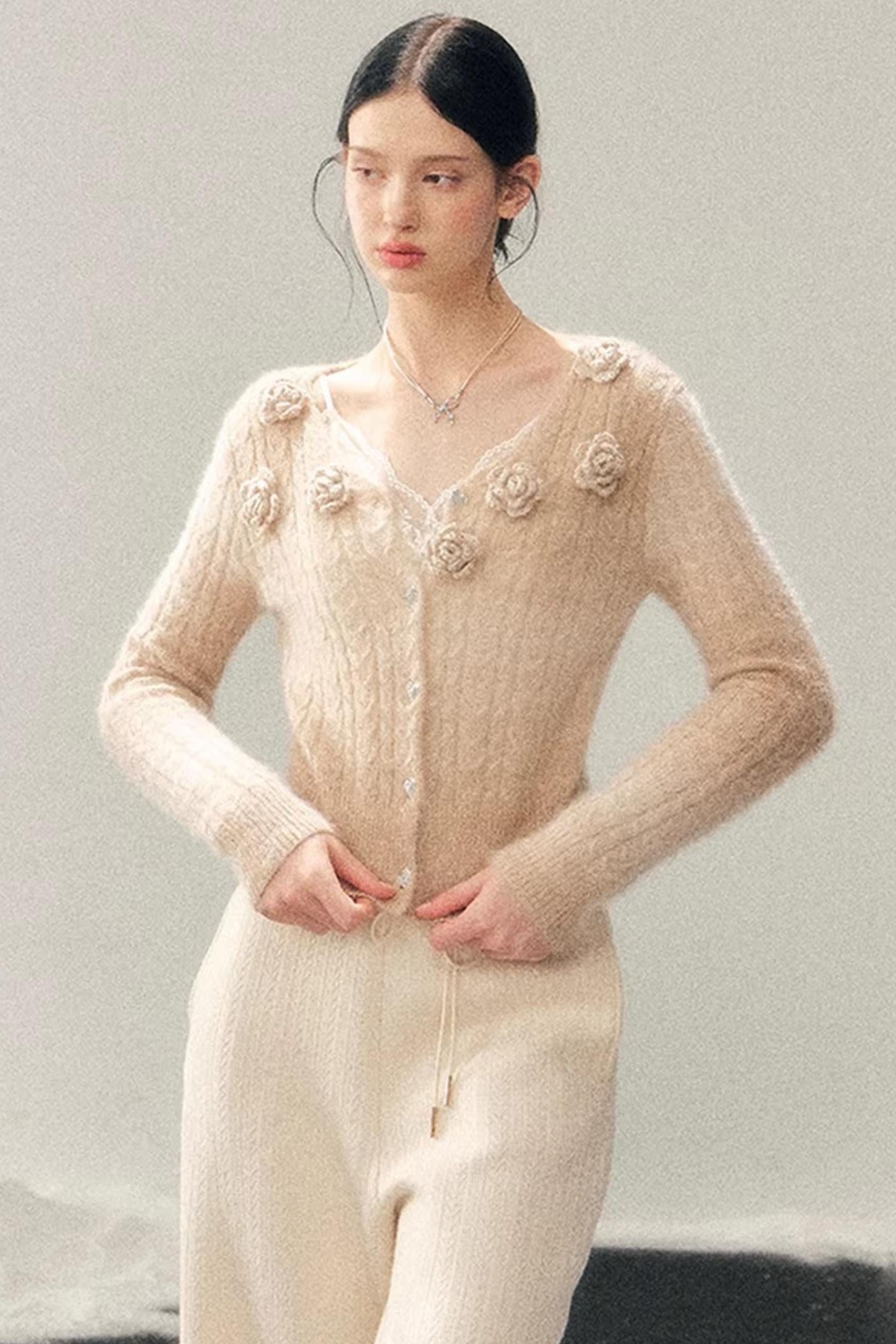 French Floral V-Neck Sweater