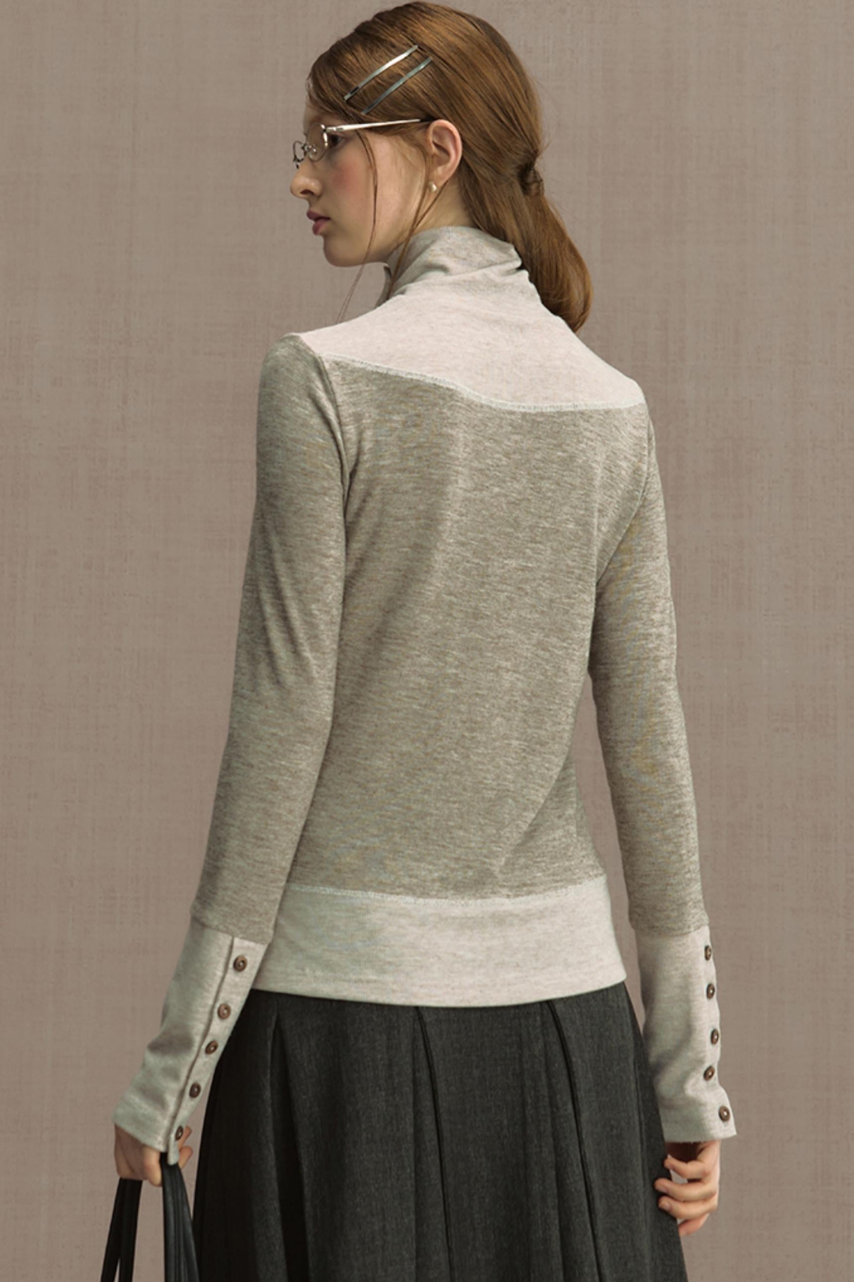 Glutinous Half-Turtleneck Knit T-shirt