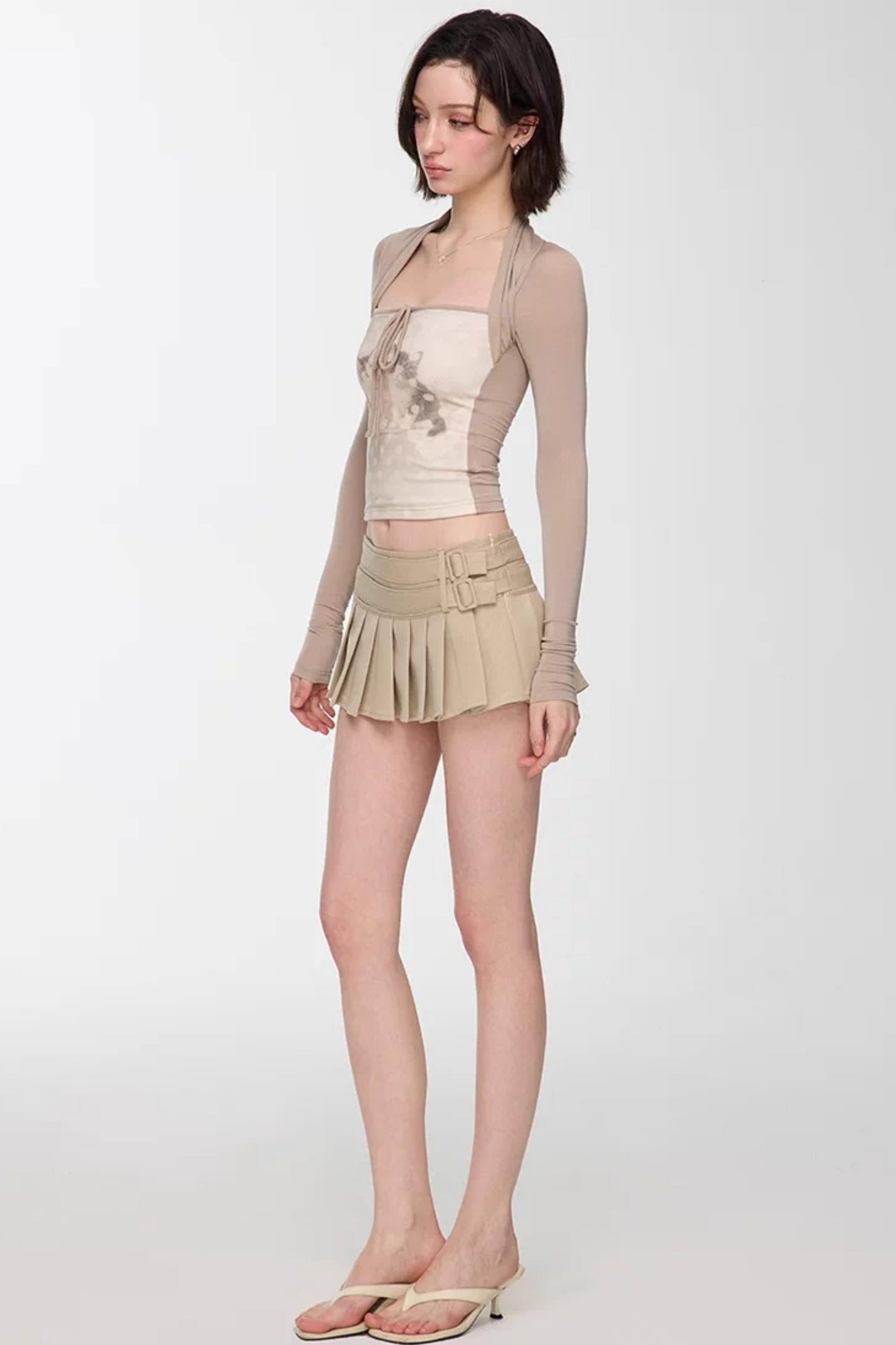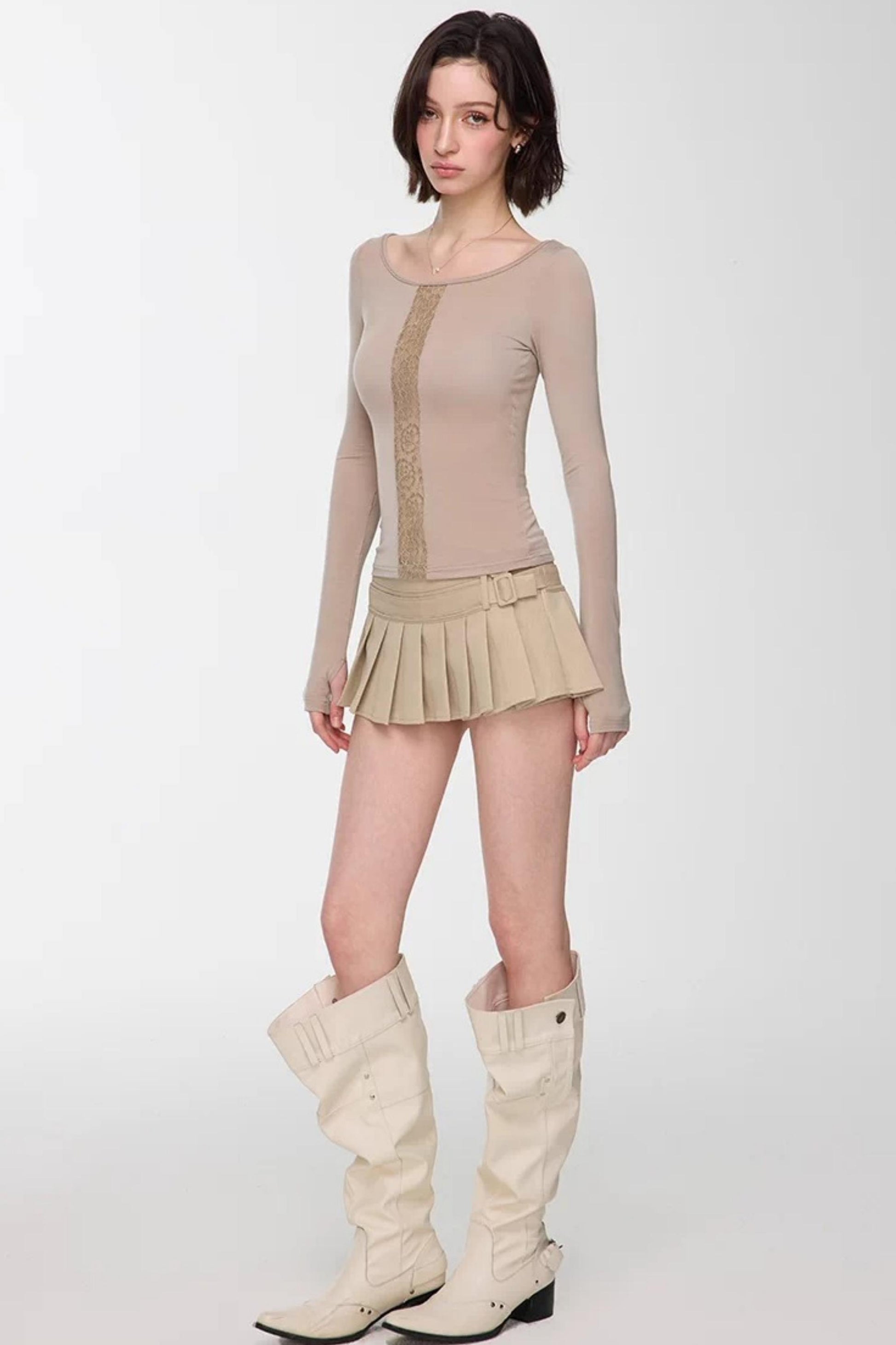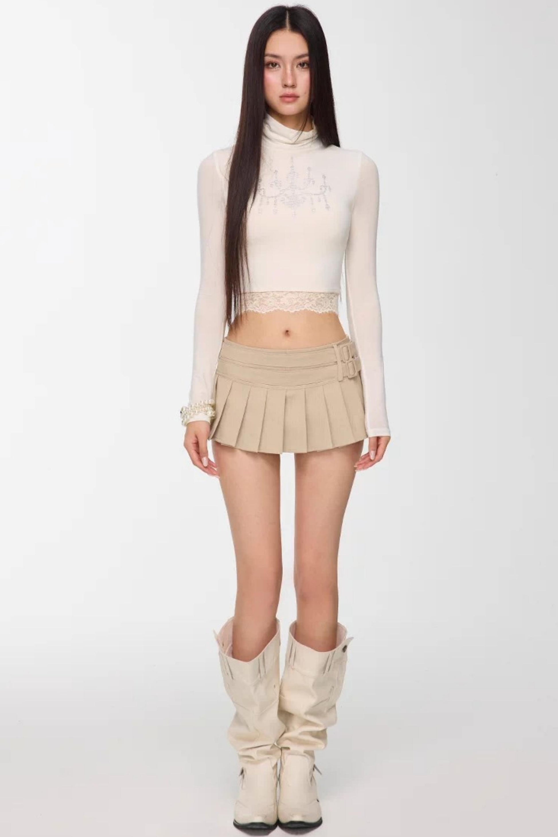 Light Apricot Pleated Skirt