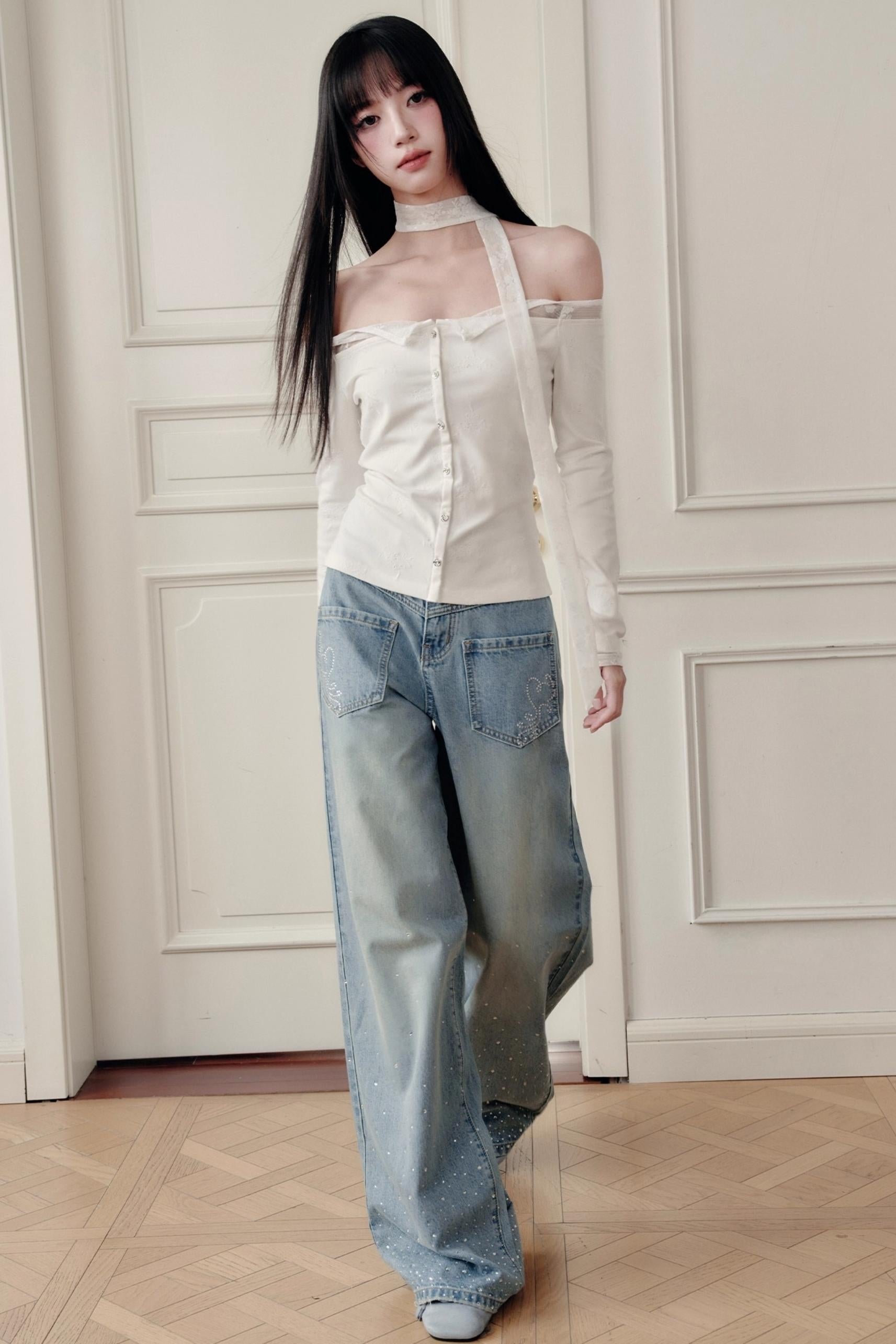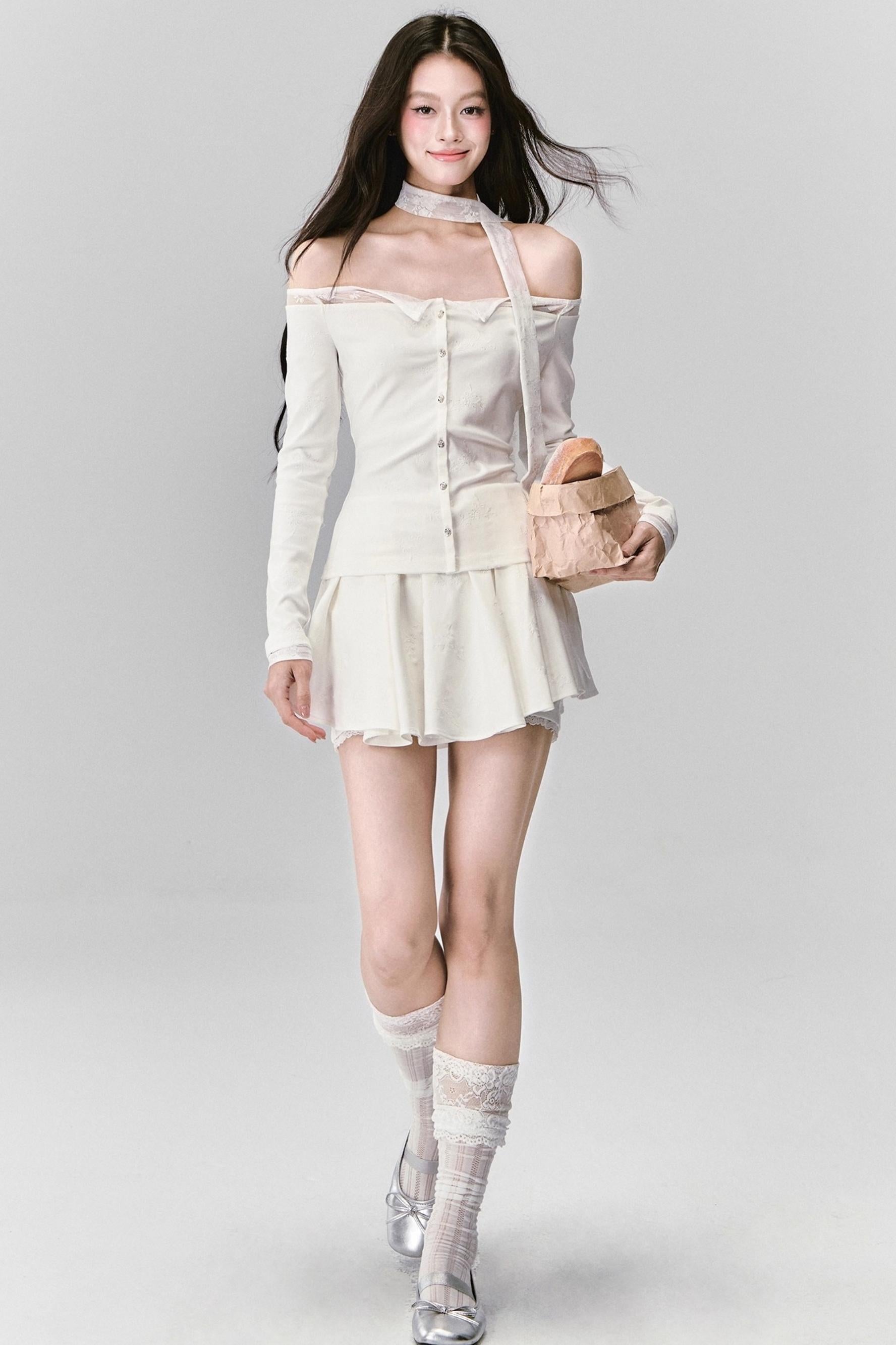 Luxury Moonlight Lace One-Shoulder Top Embroidered Skirt Set-Up