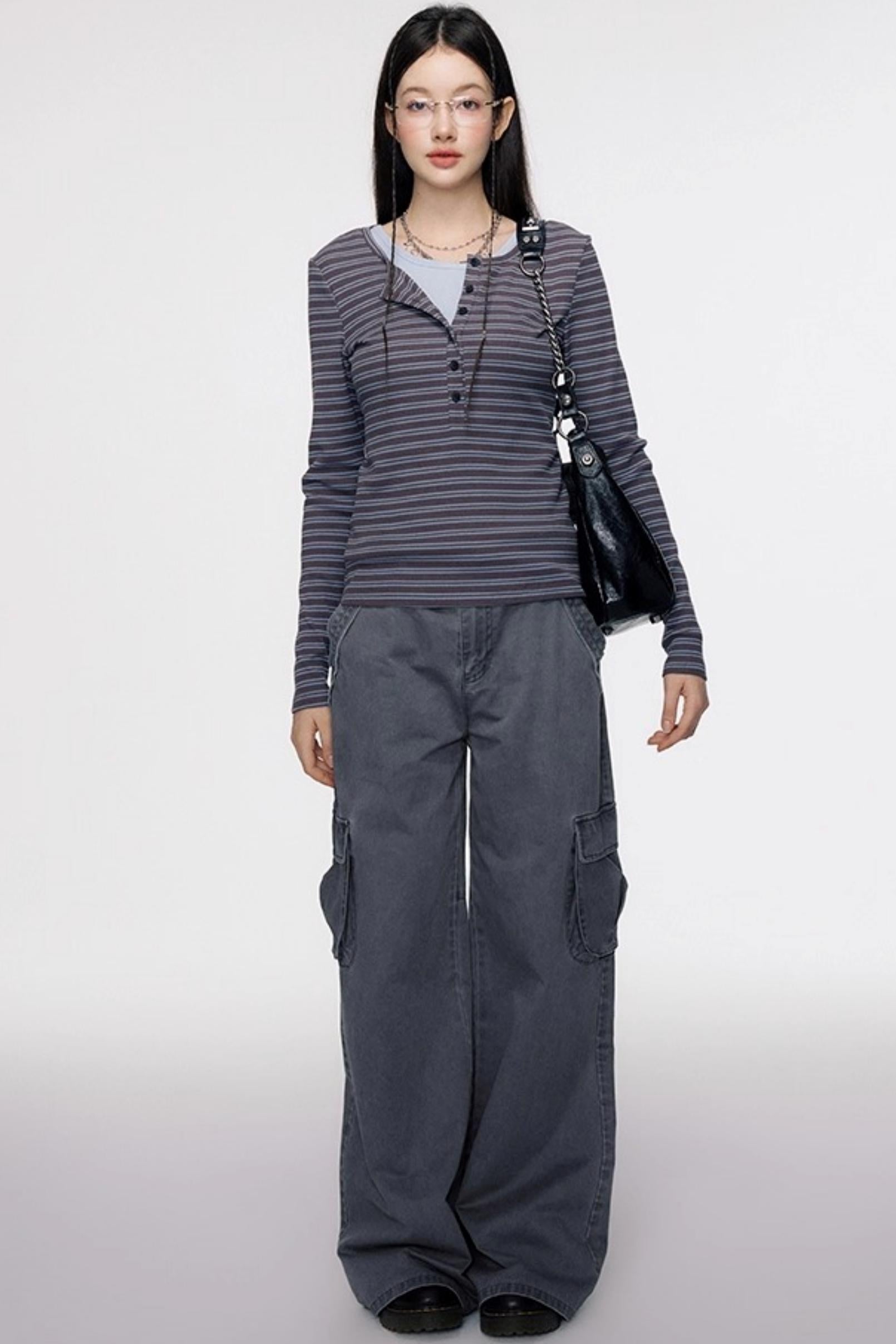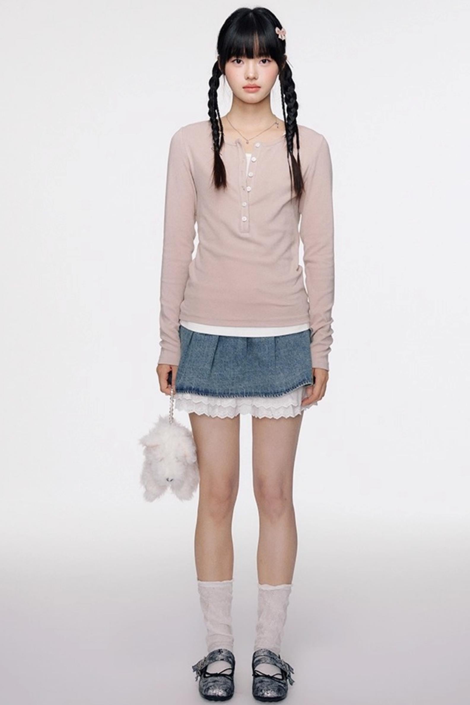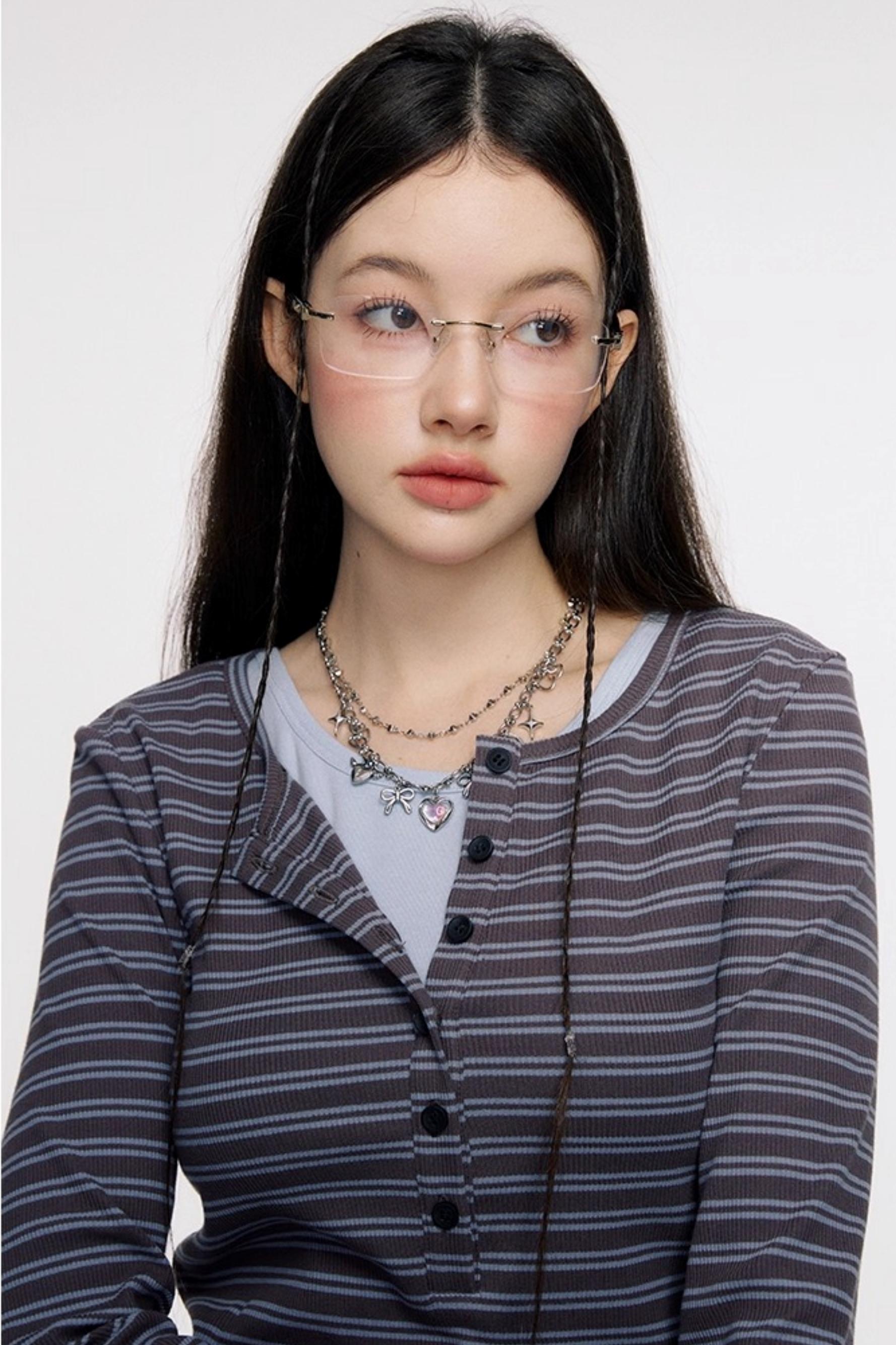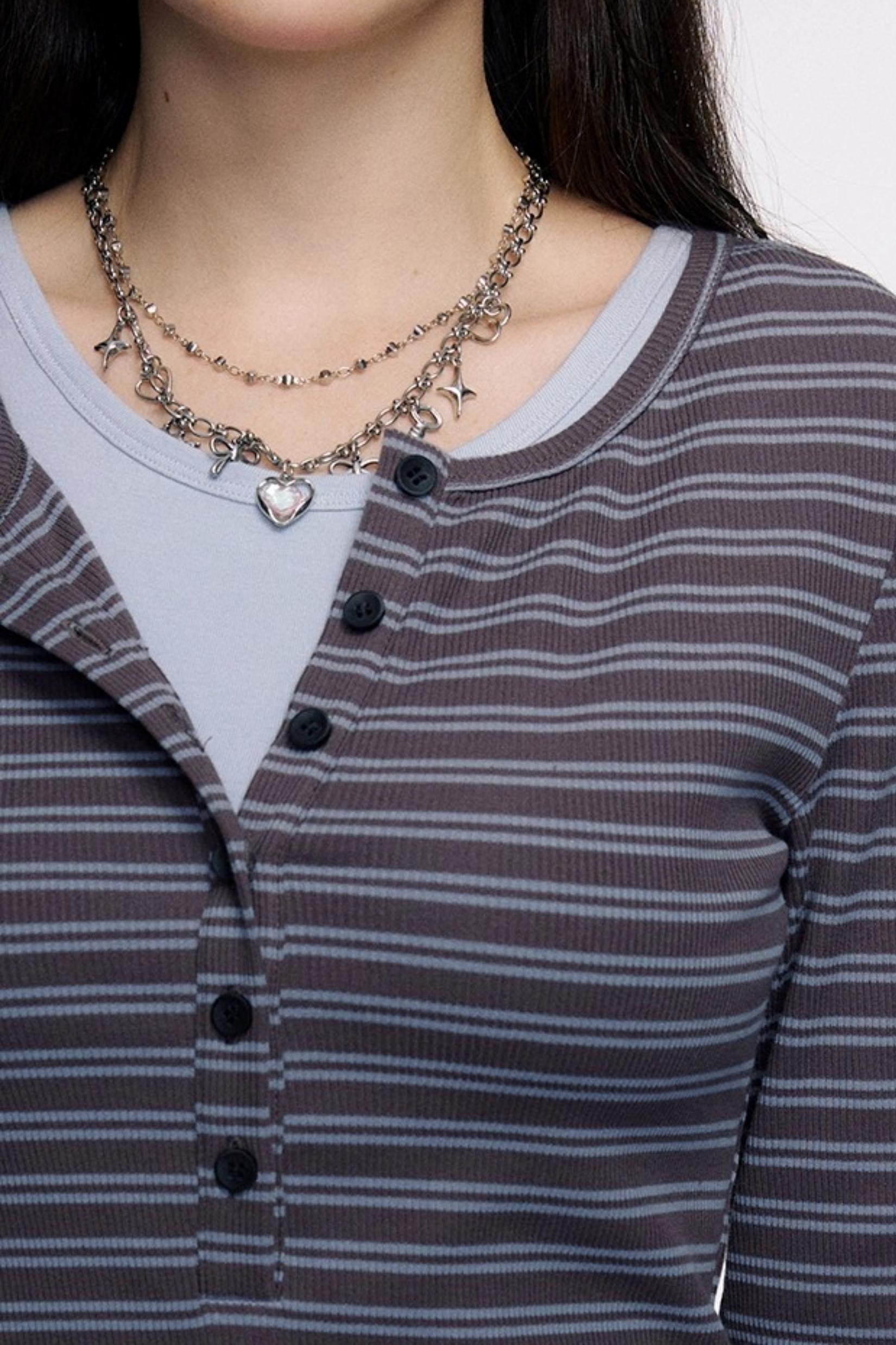 Open Front Long-Sleeved T-shirt & Vest Set-Up