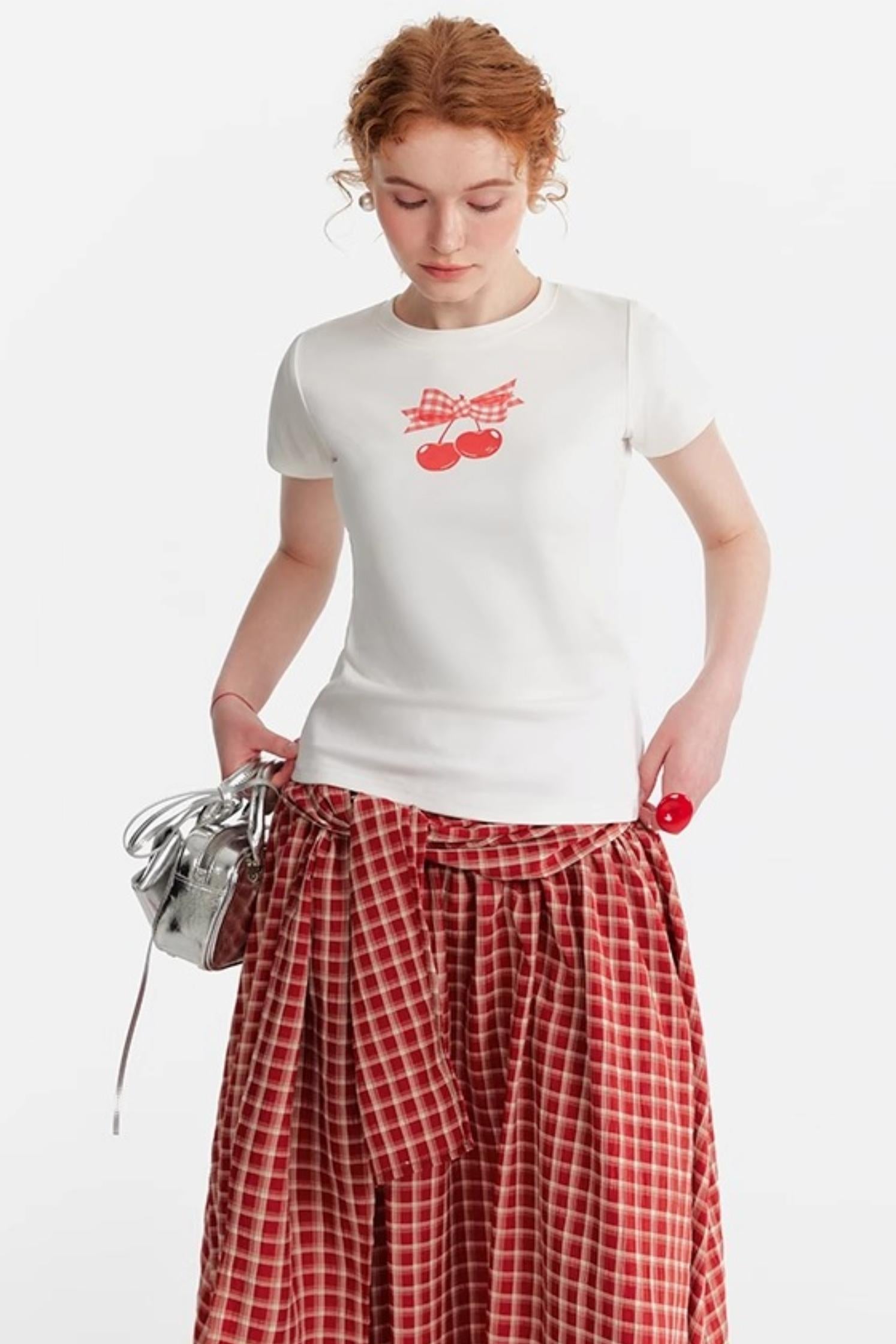 Pink Cherry Print Halter Skirt Set-Up