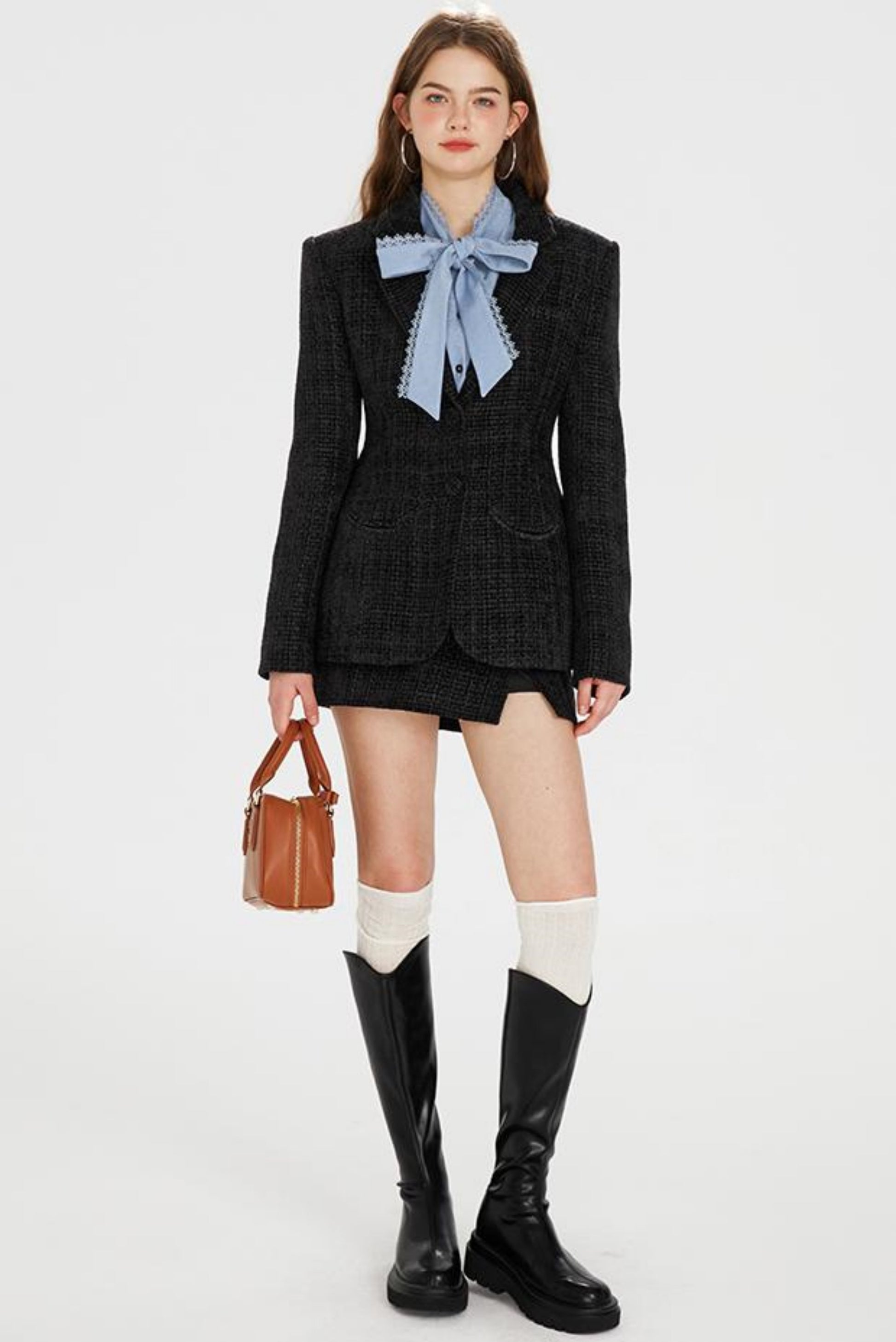 Pocket Accent Tweed Skirt Set-Up