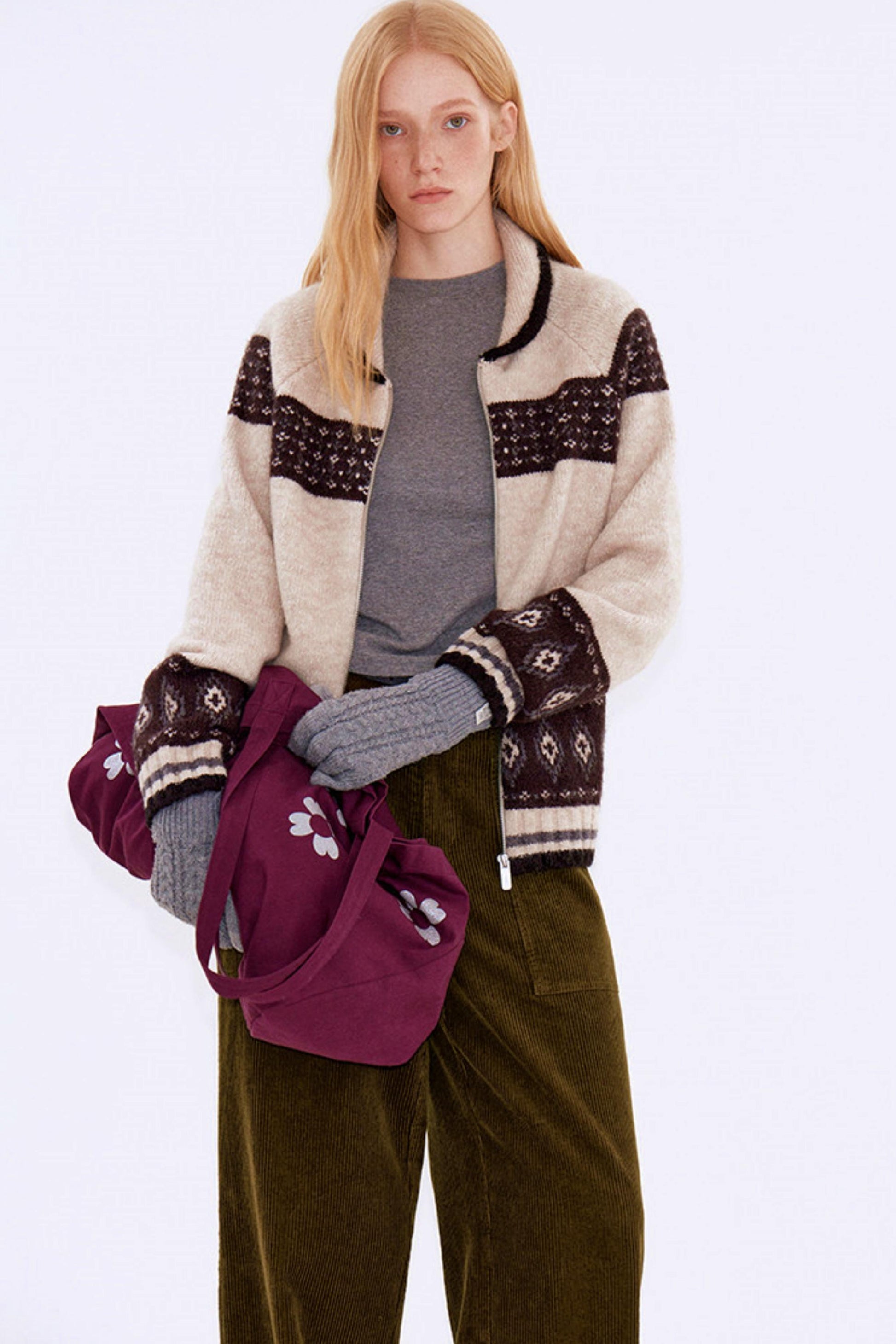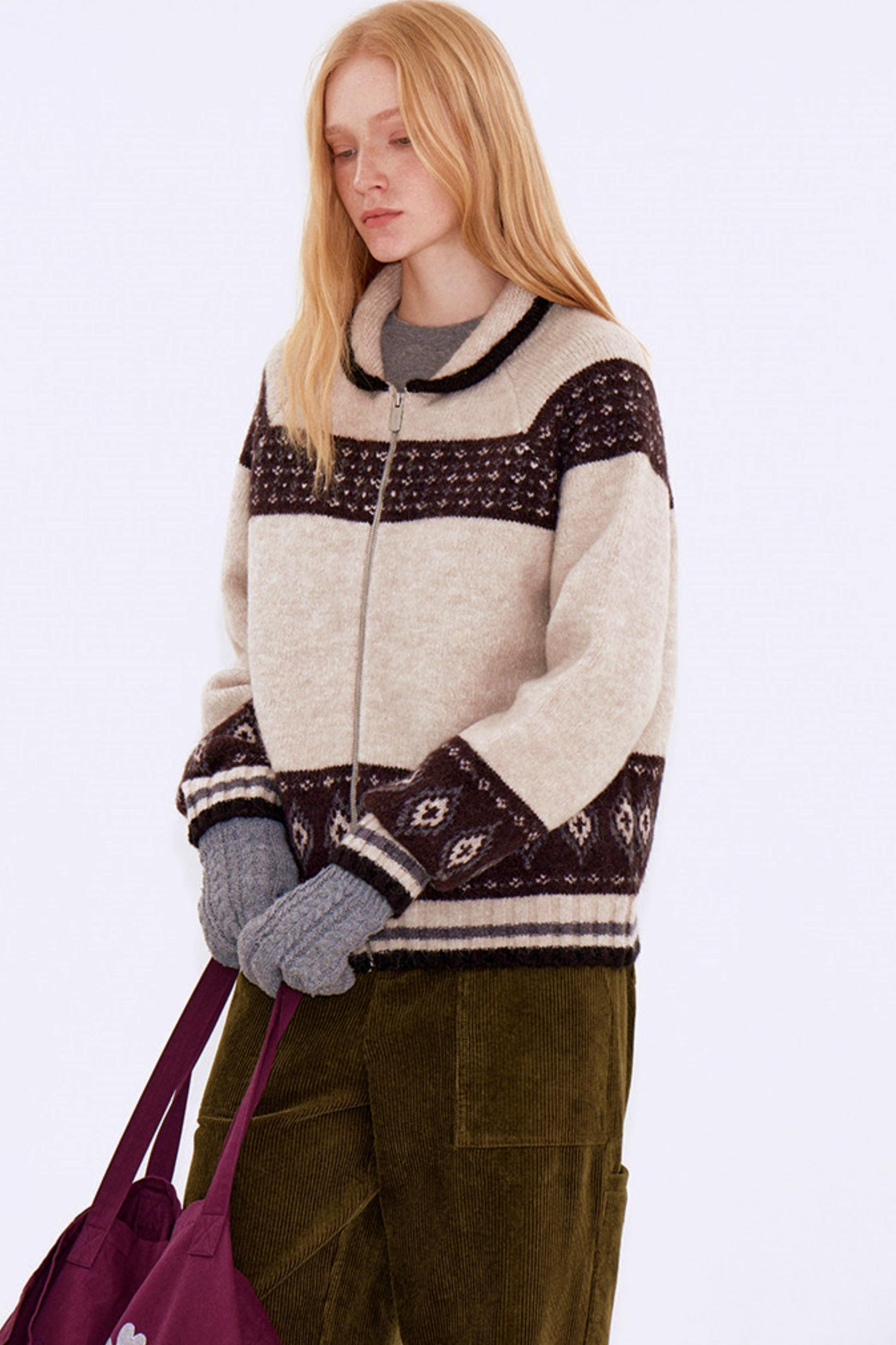 Retro Color-Blocked Wool Cardigan