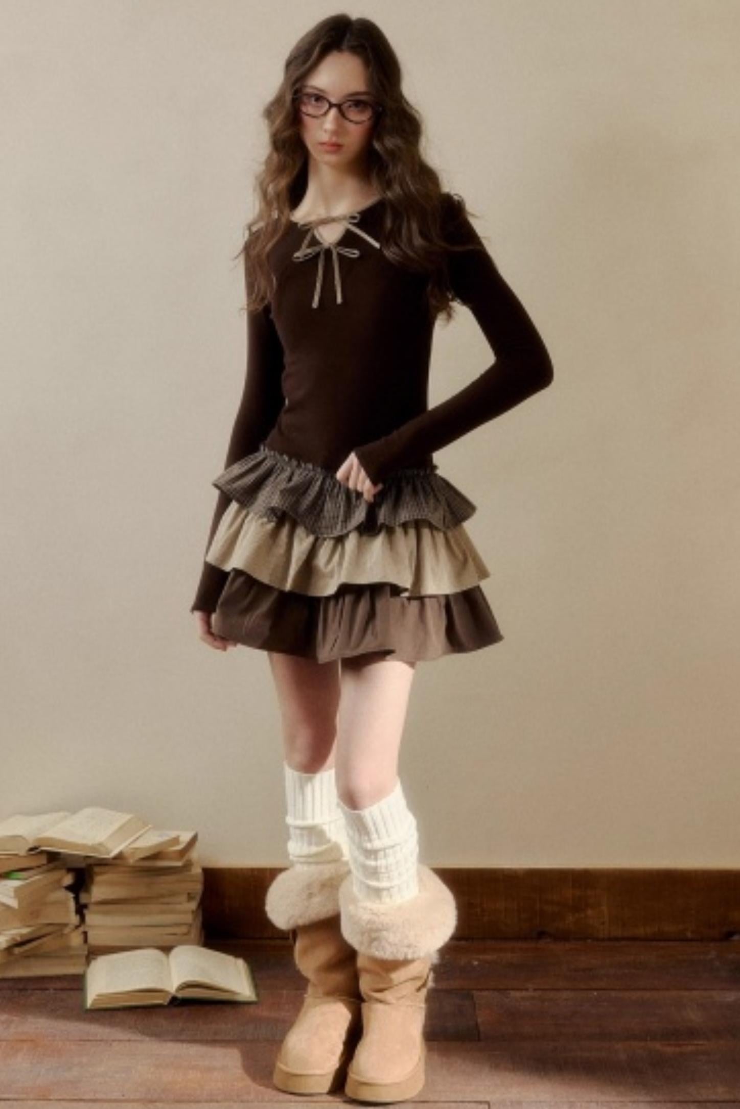 Retro Plaid Knit Tutu Skirt Dress