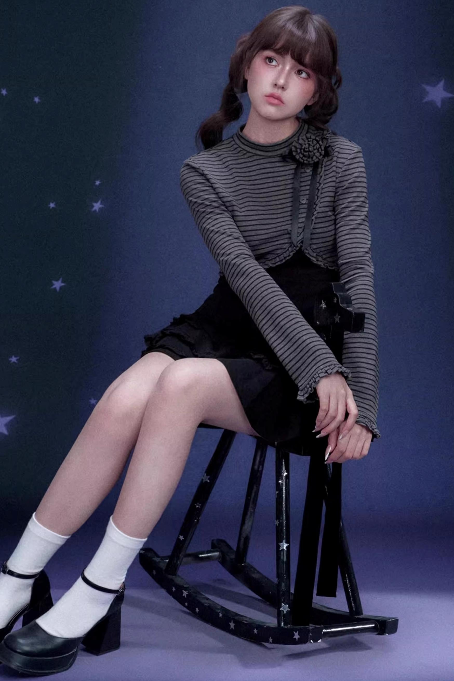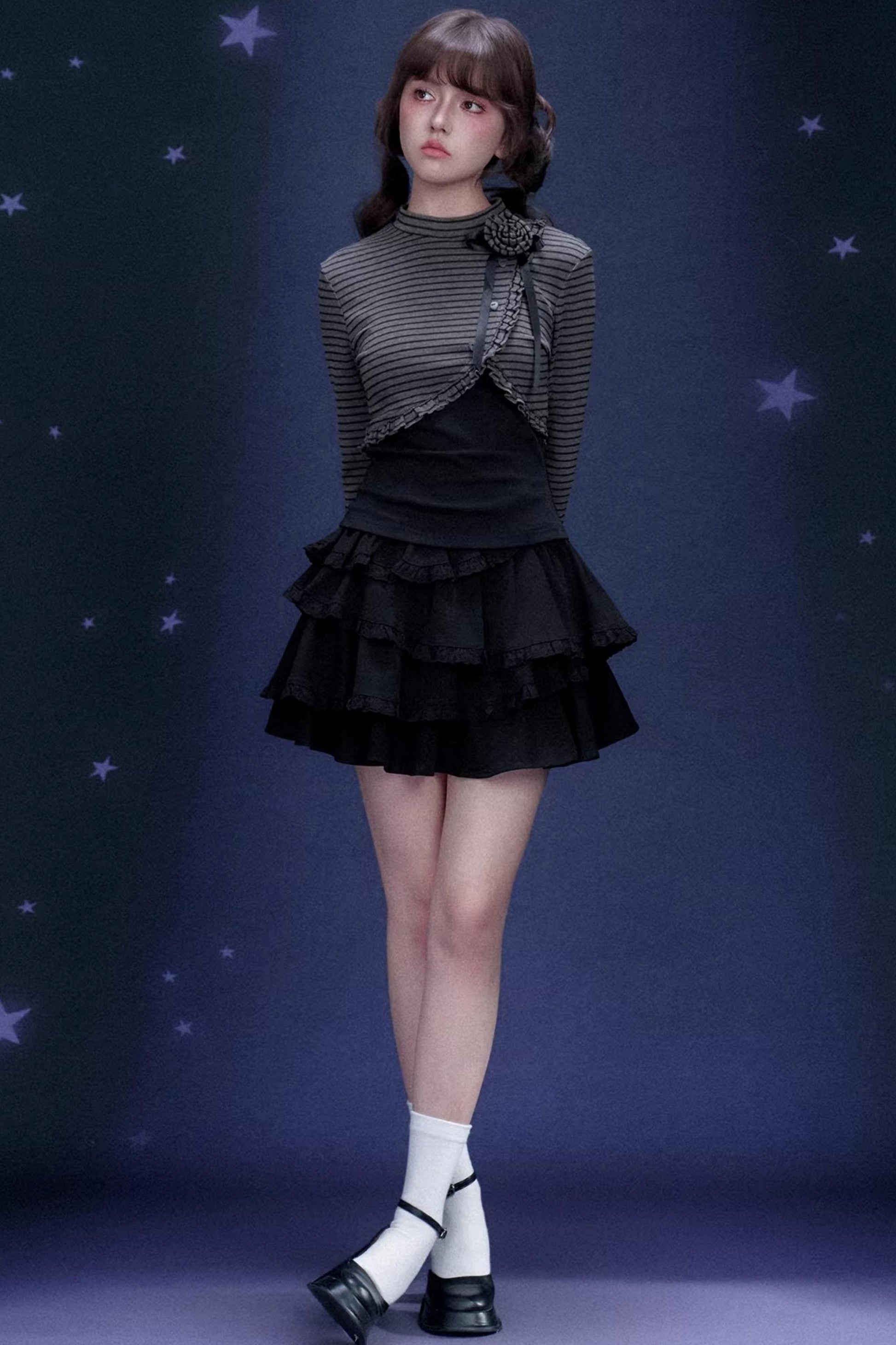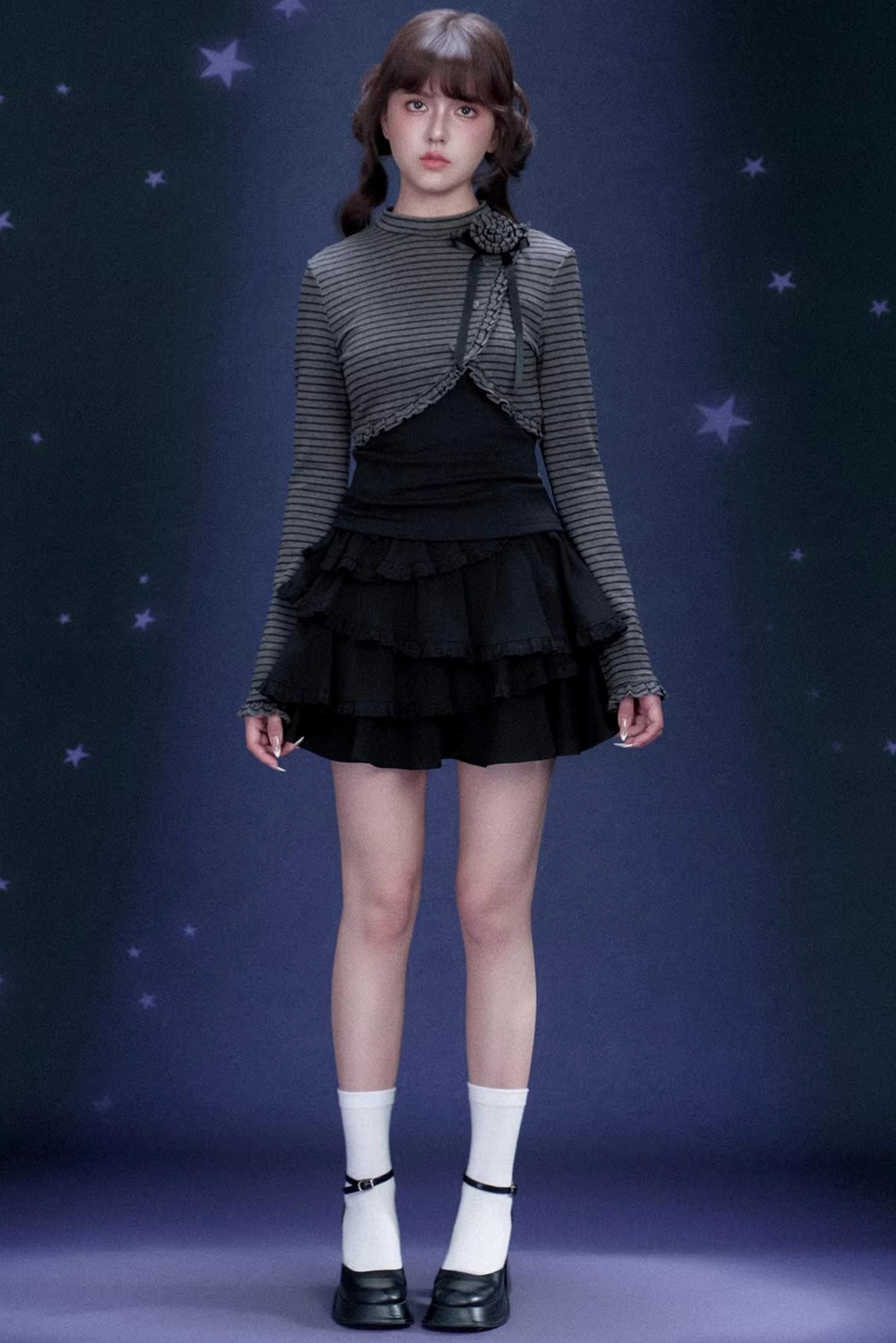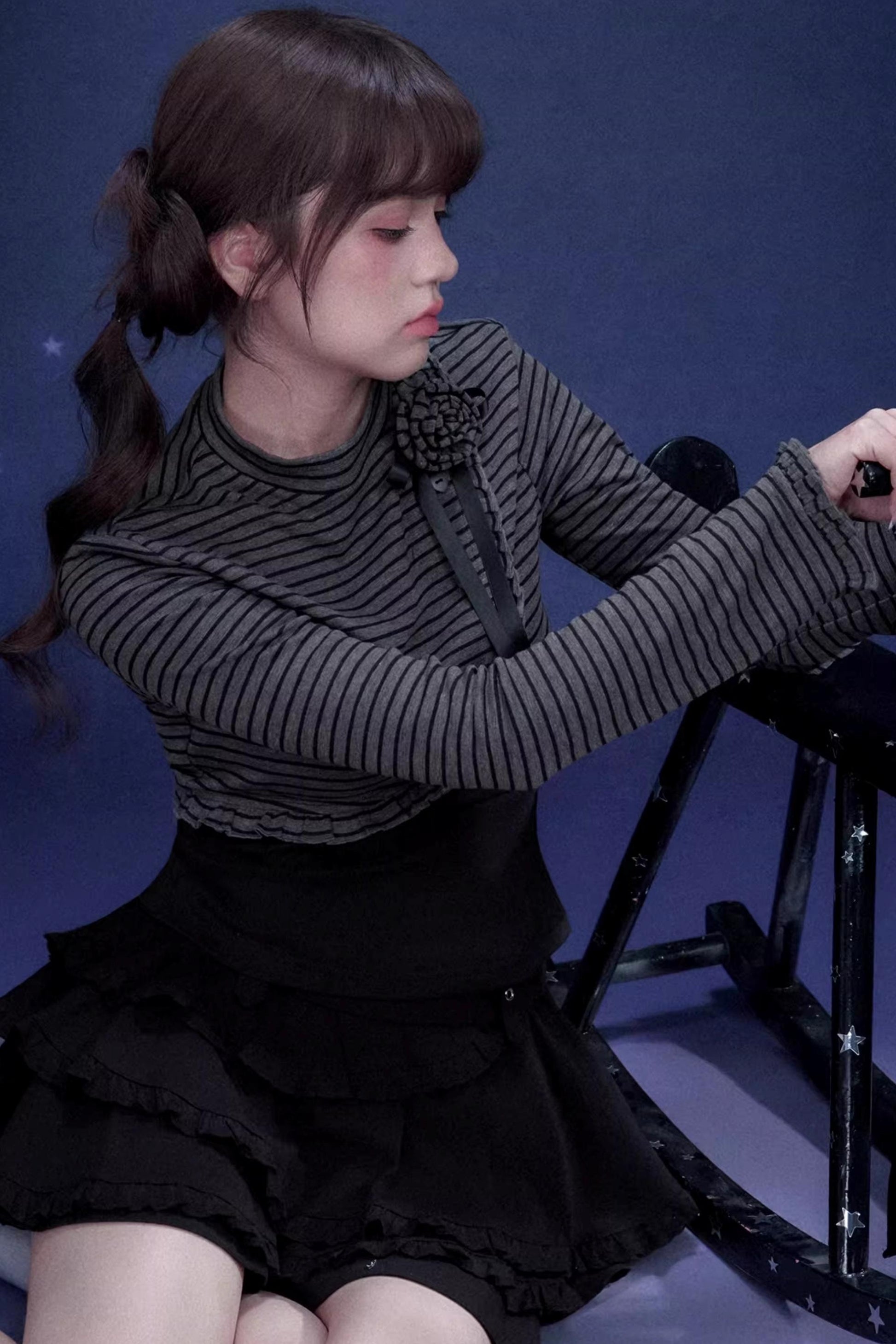 Rose Brooch Striped Top