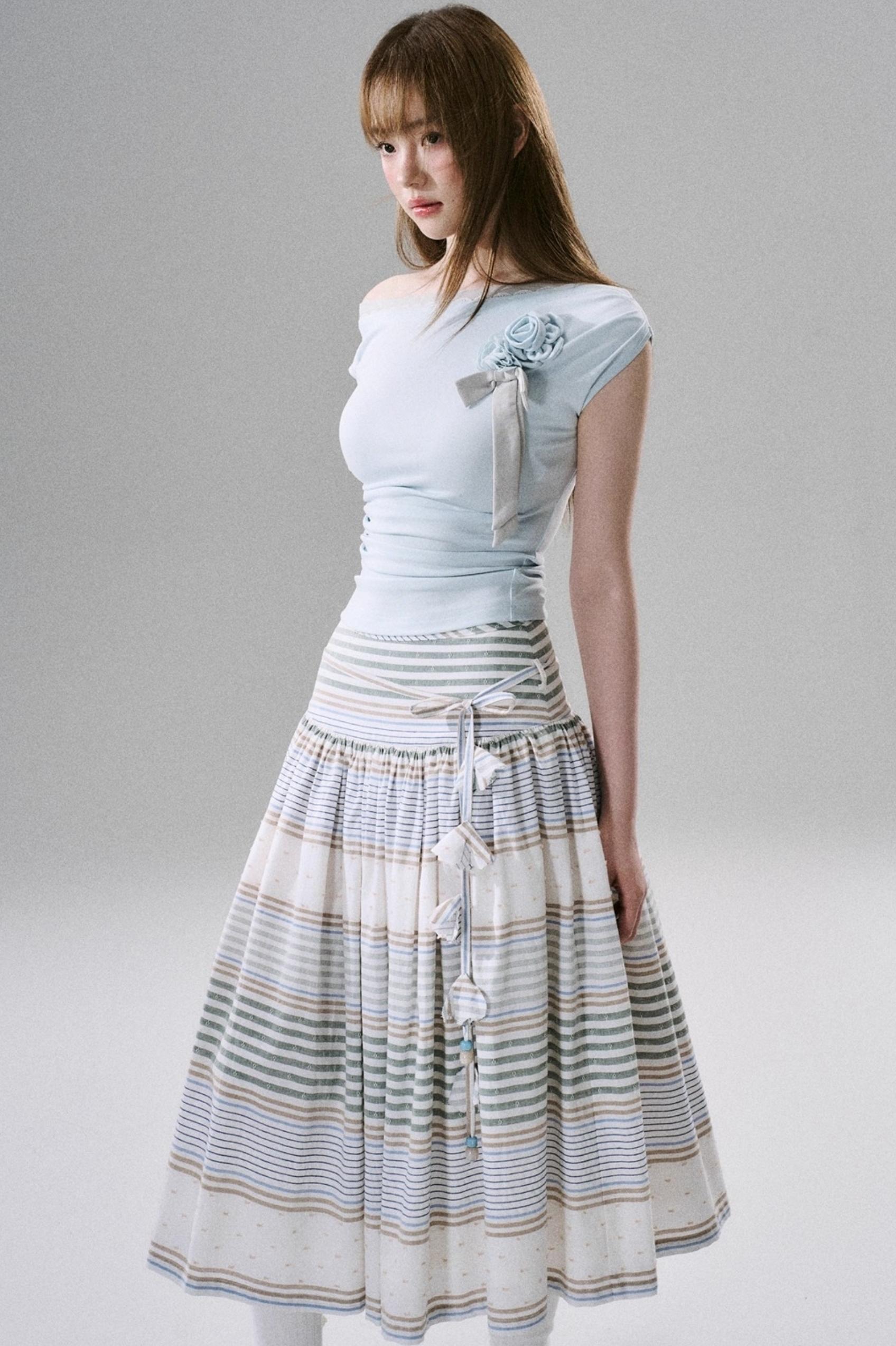 Soft Floral Belted Summer Skirt