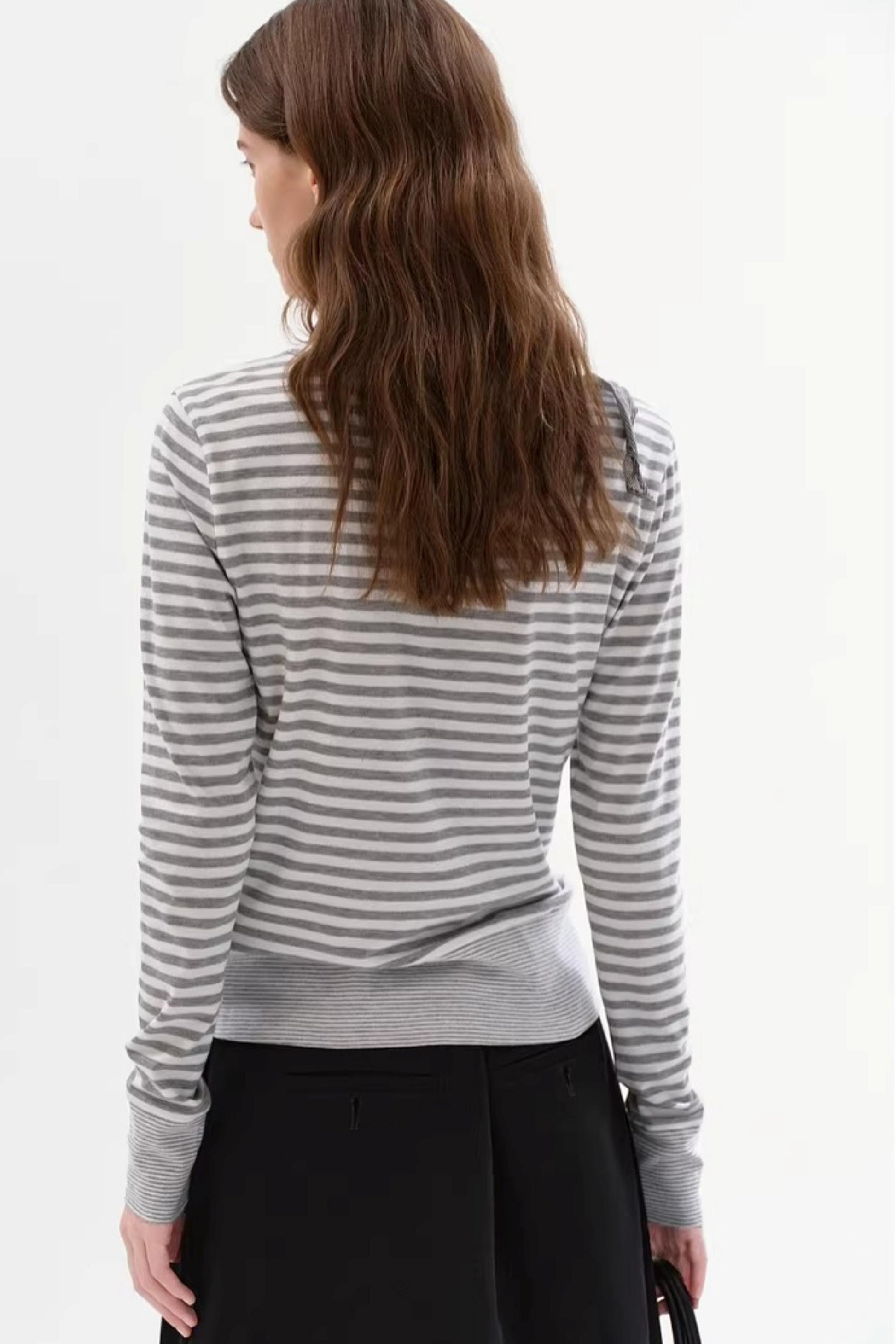 Soft Gray-White Striped Sweater