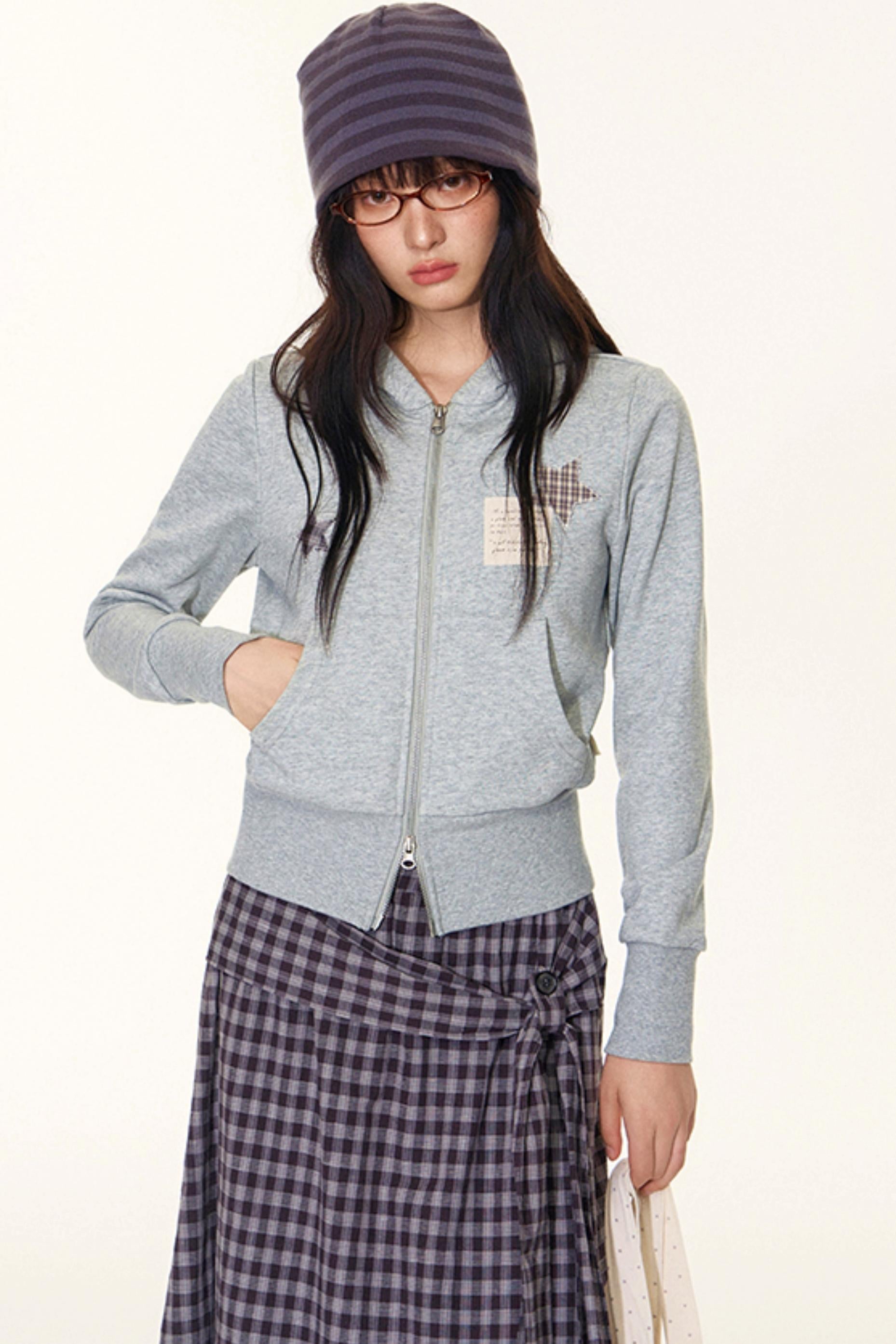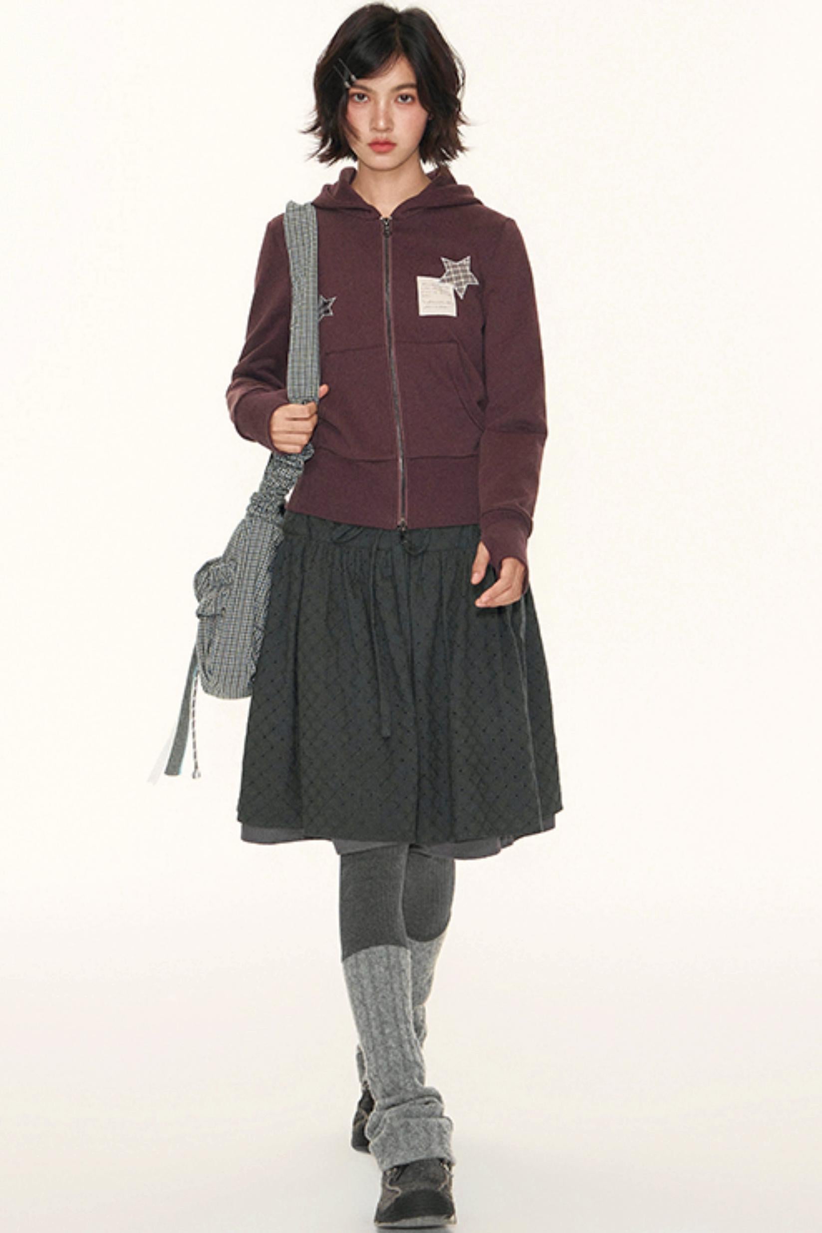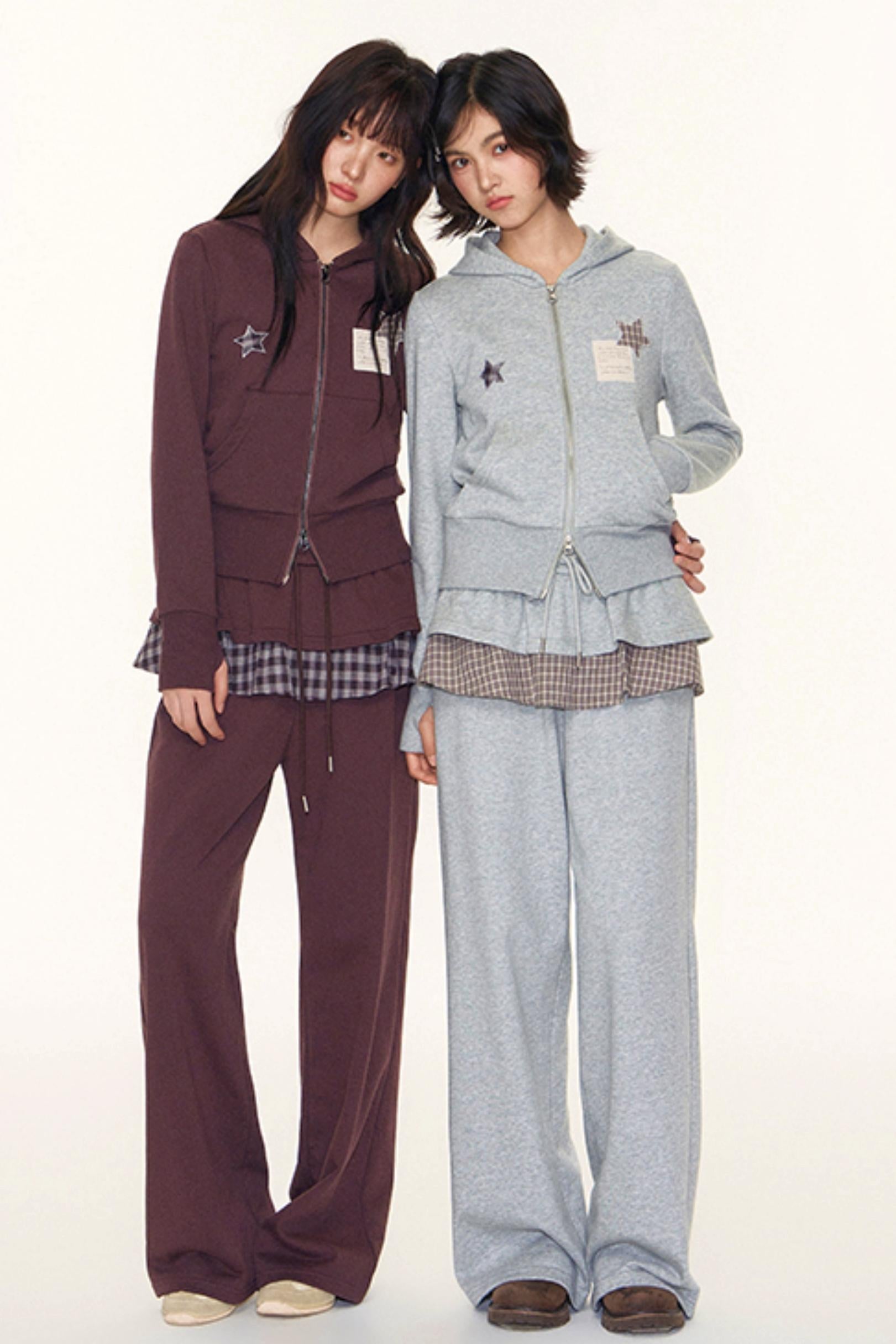 Star Patch Embroidered Hooded Cardigan Set-Up