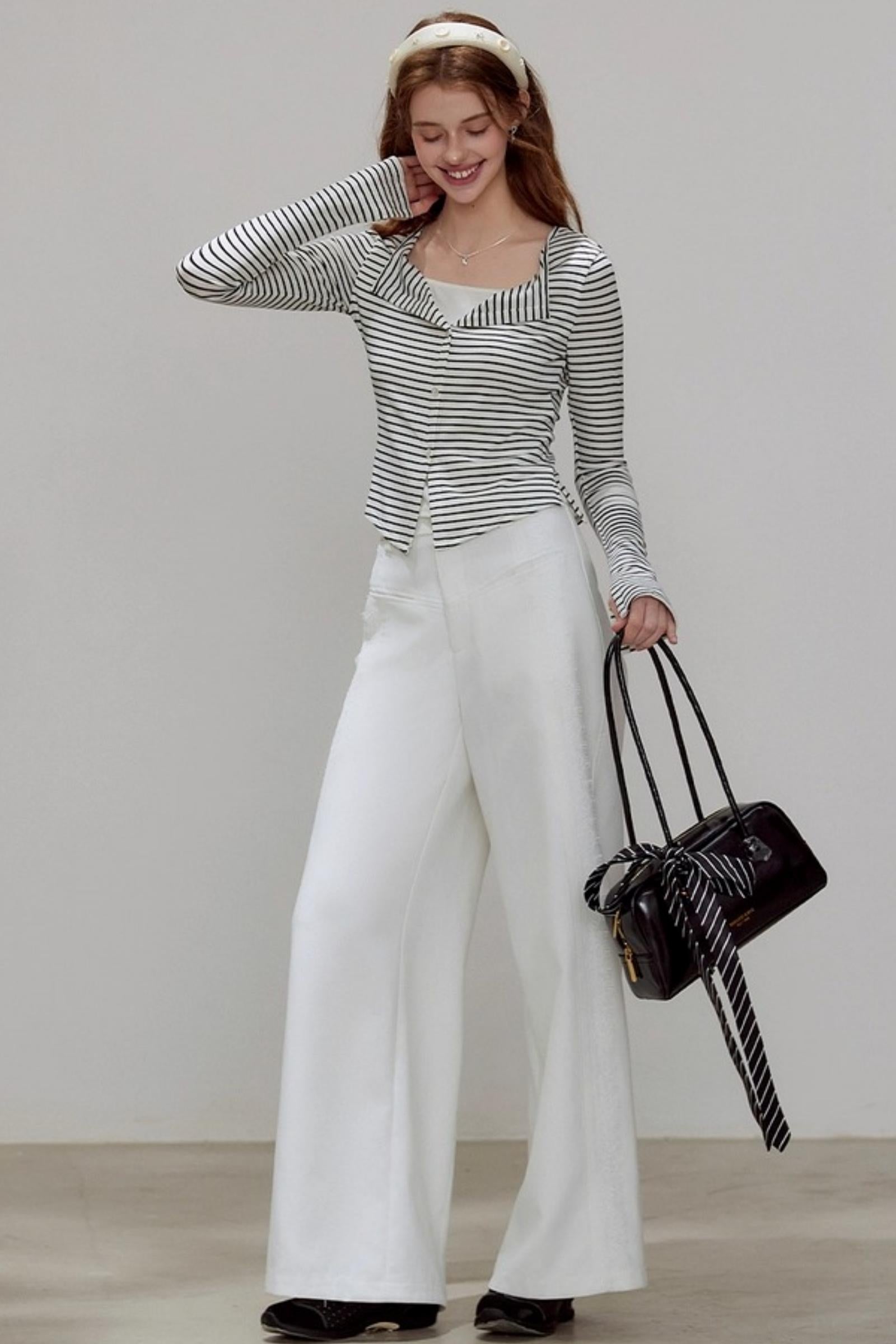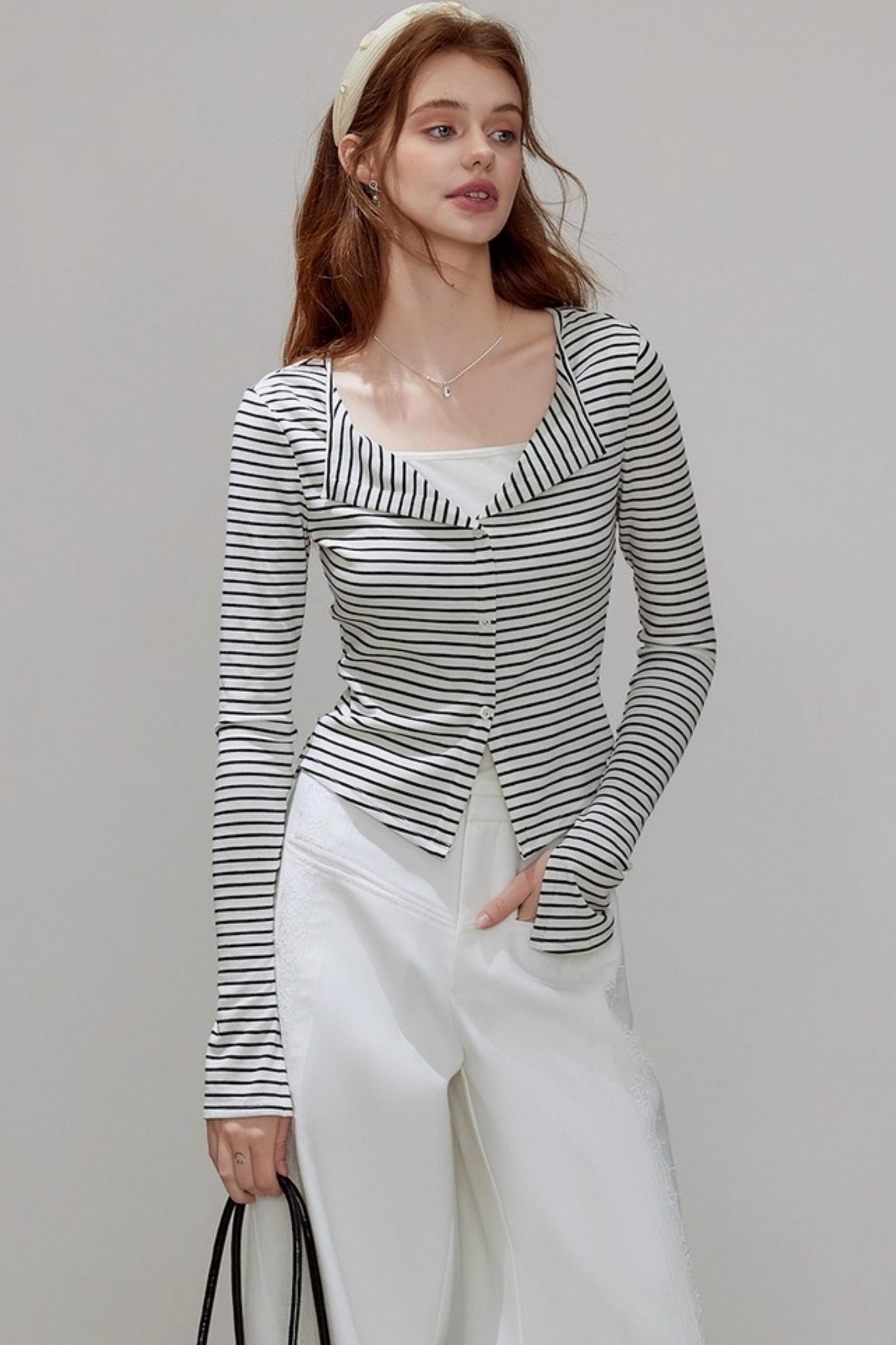V-neck Striped Knitted Cardigan