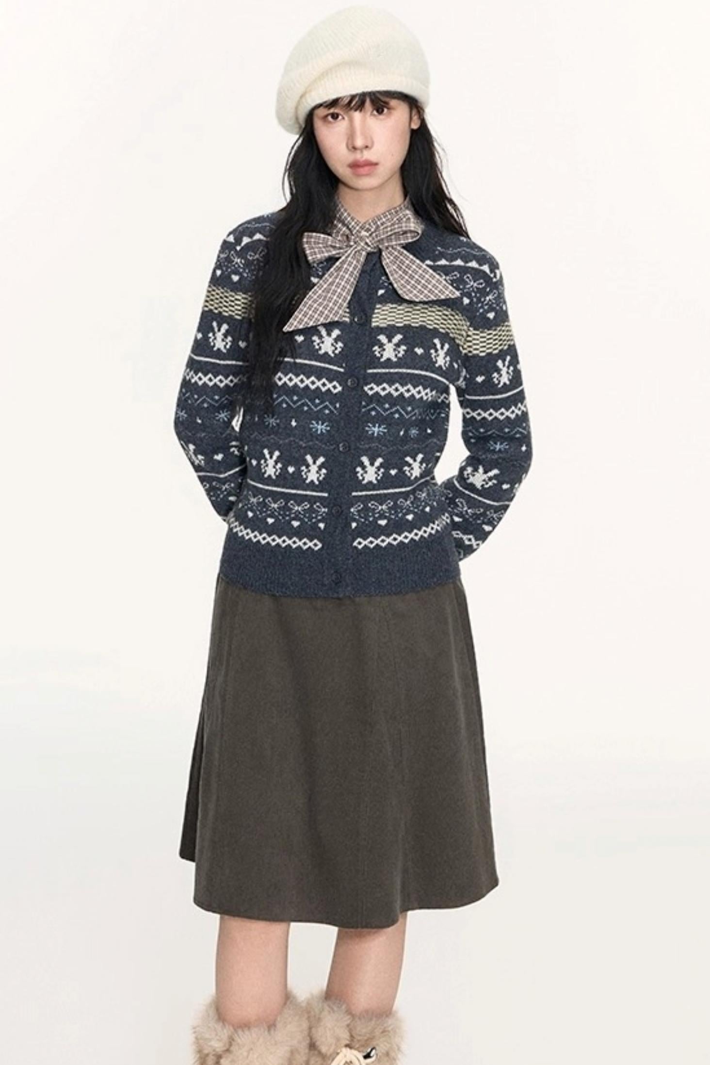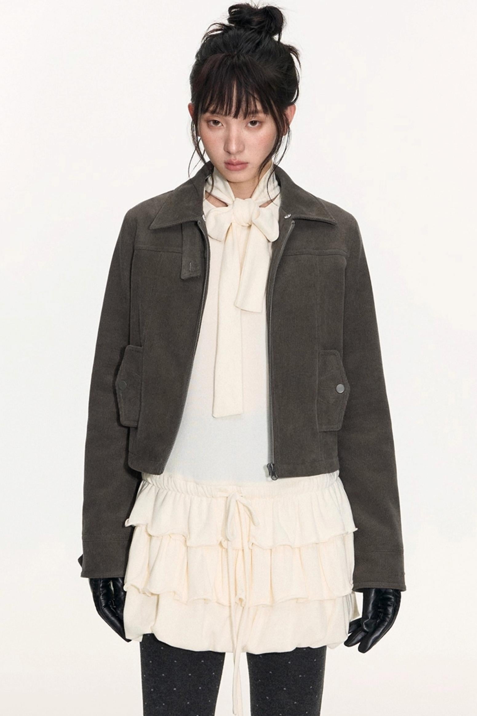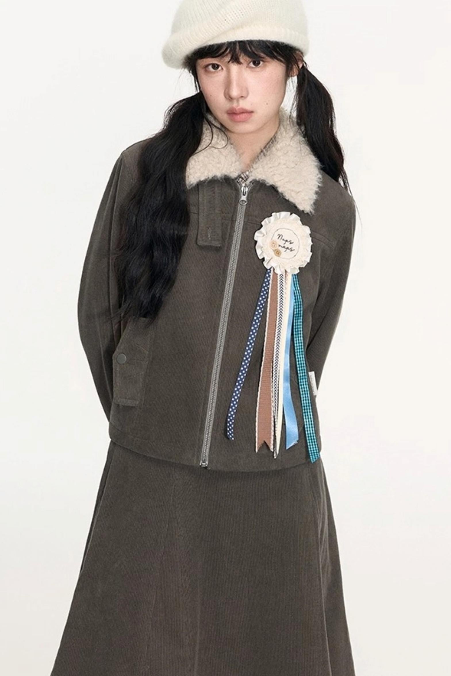 Vintage Fur Collar Jacket With Skirt Set-Up