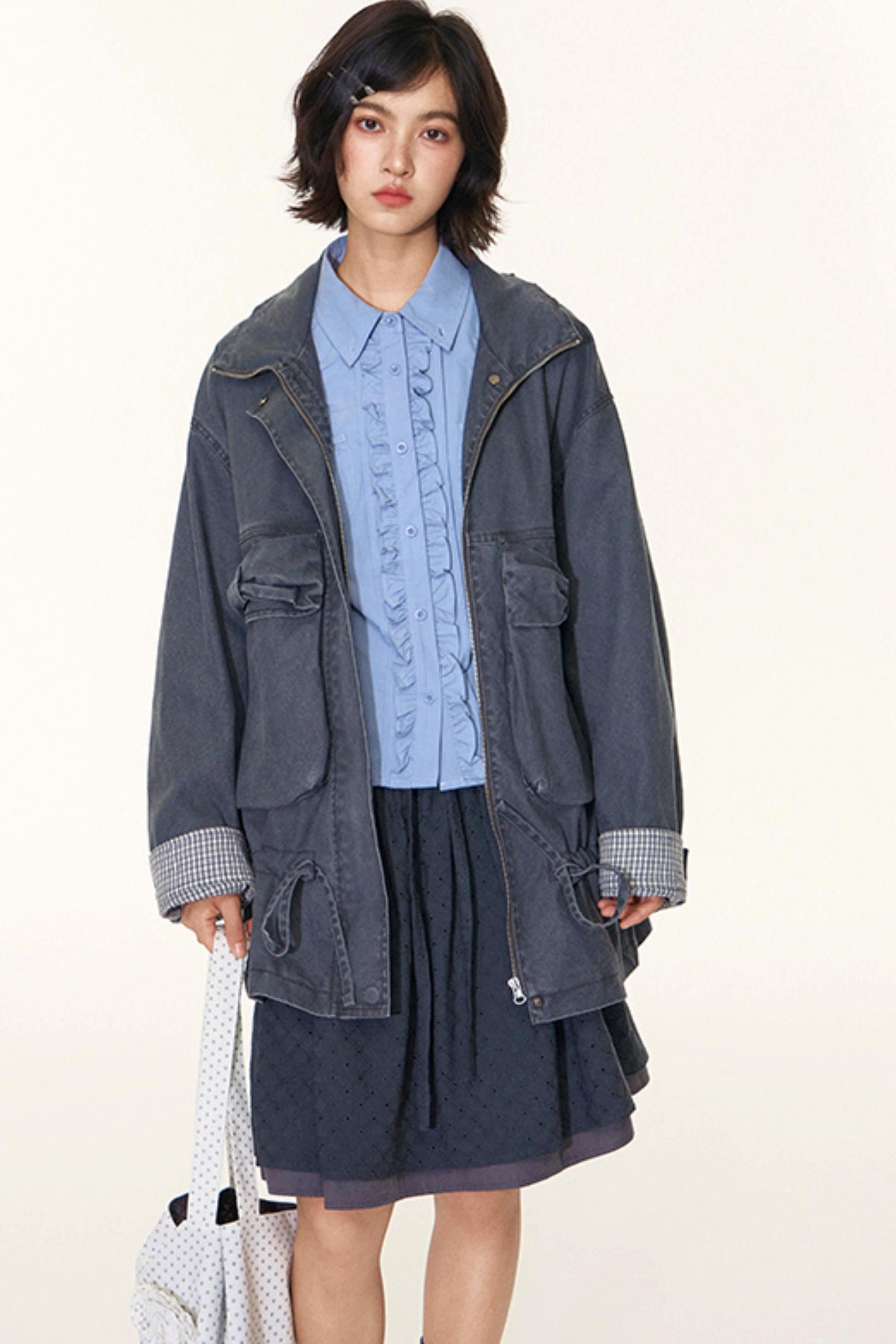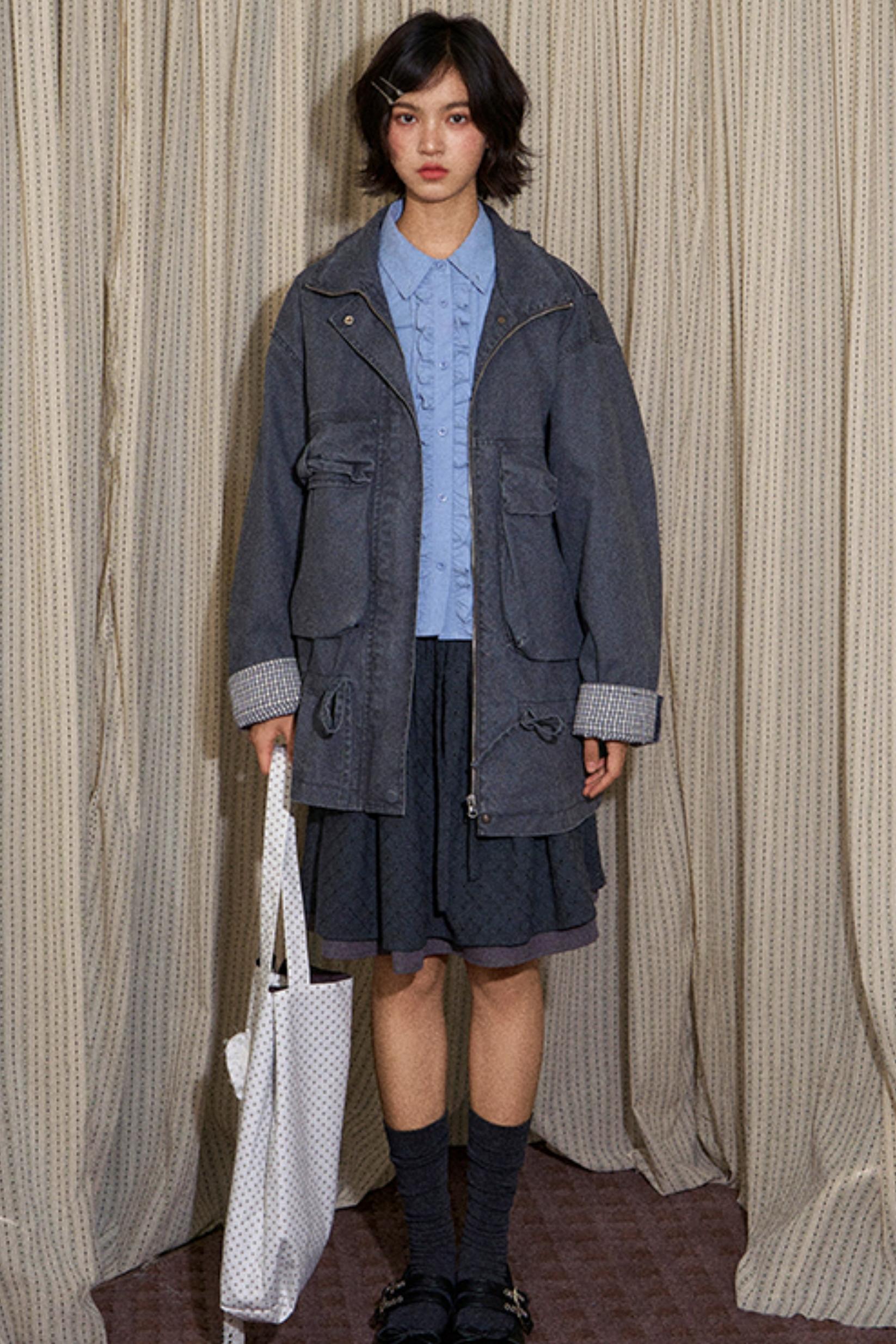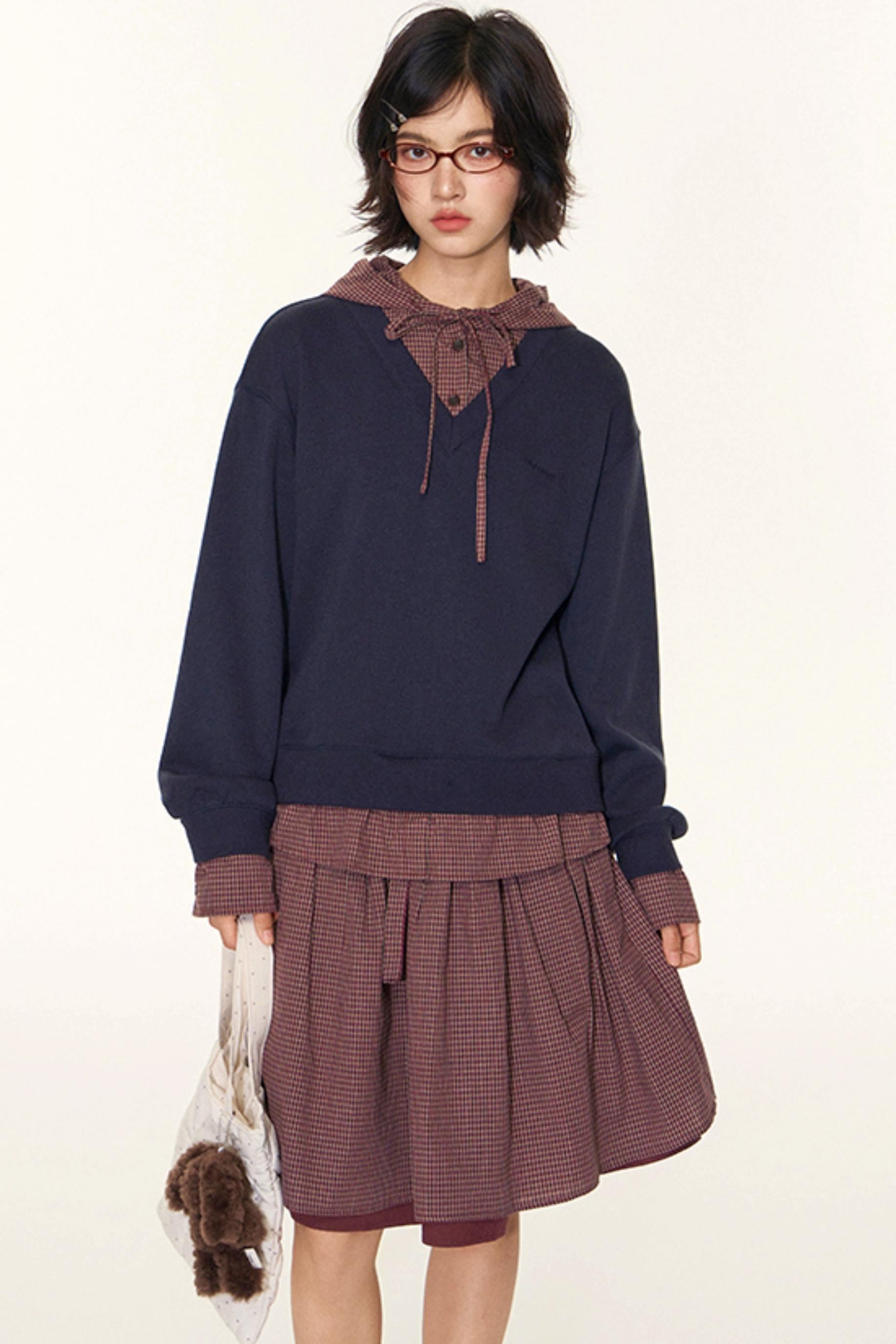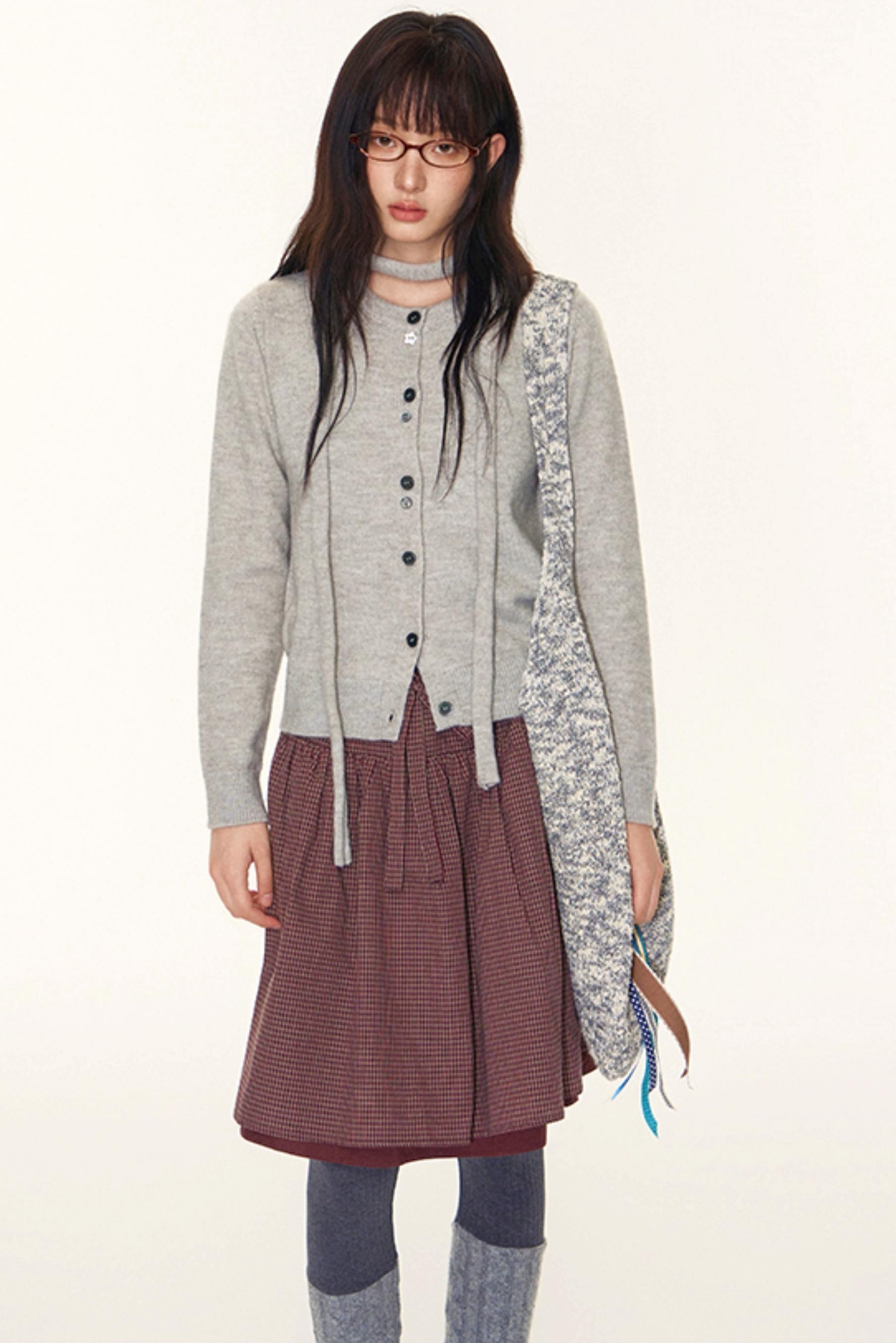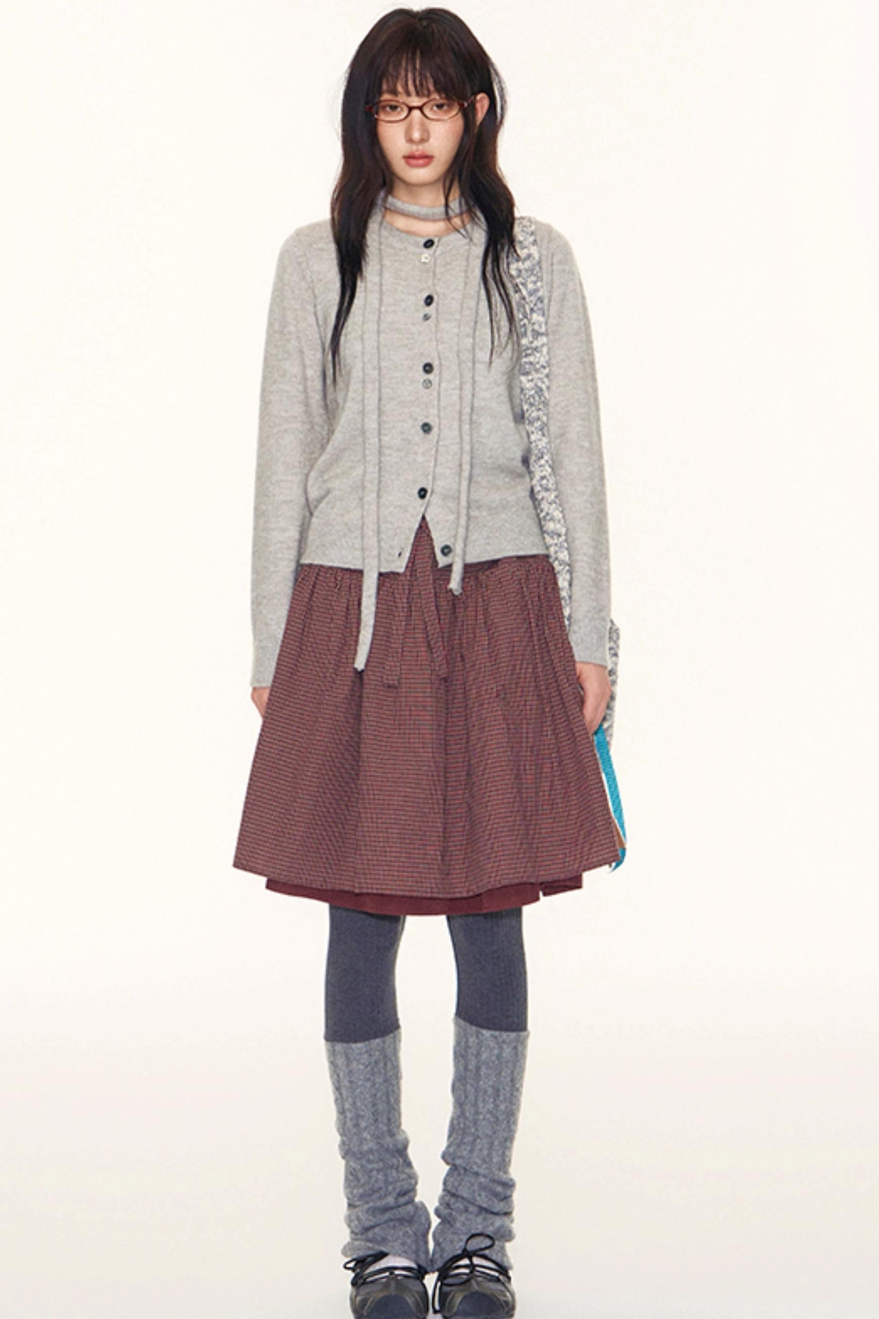 Vintage Lace-Up Plaid Puffy A-Line Skirt