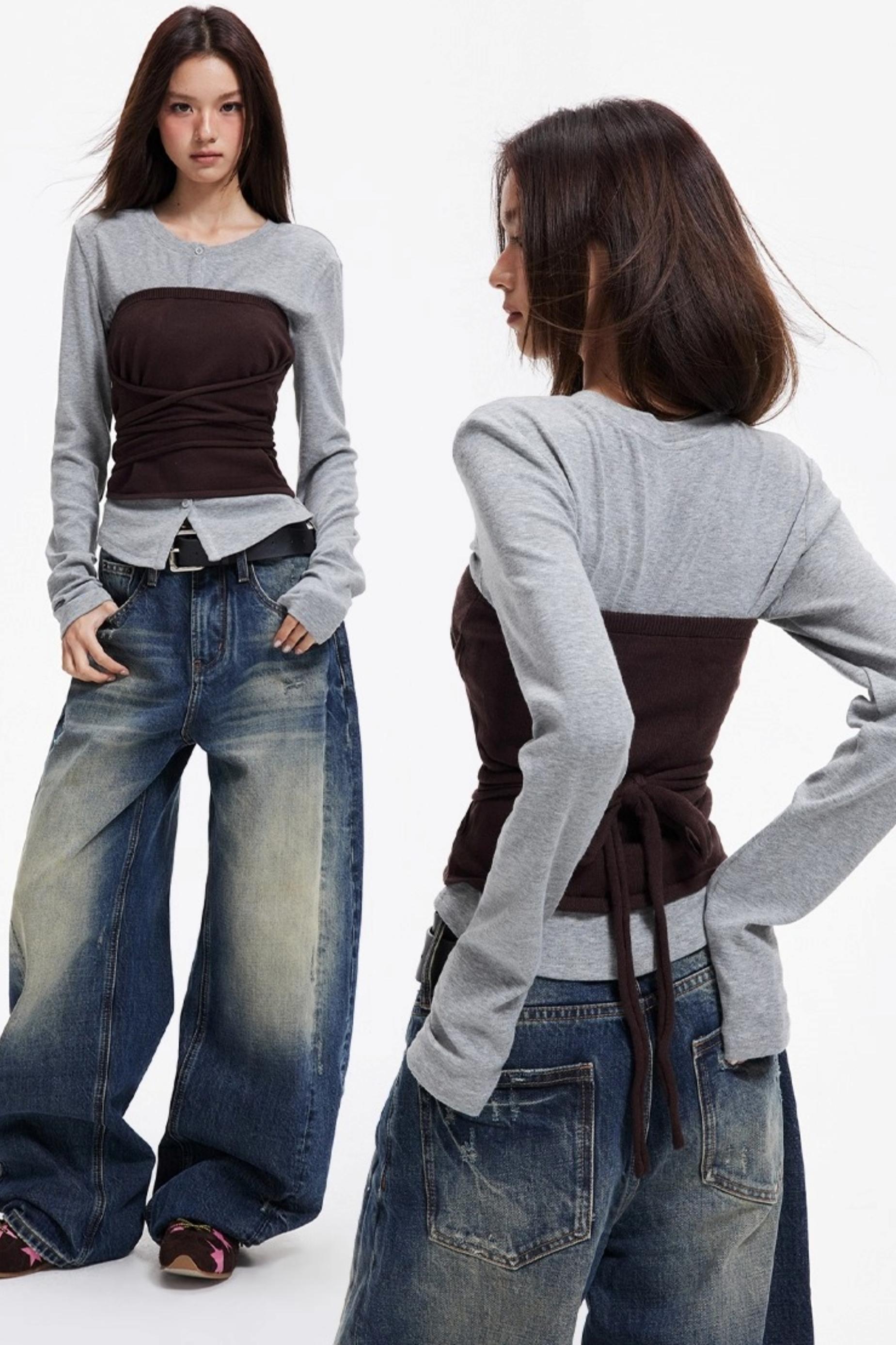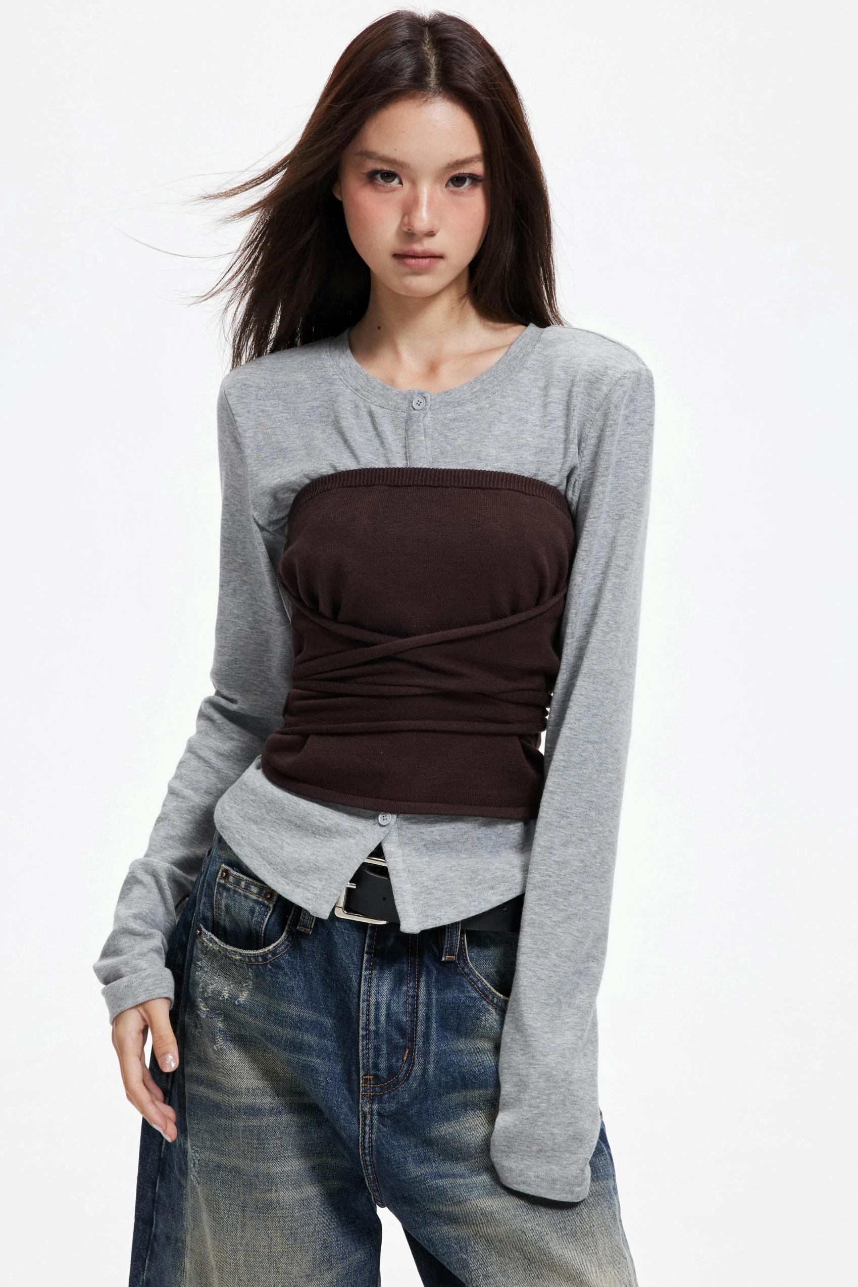 Woolen Layered Slim Knit Strap Bandeau Suit