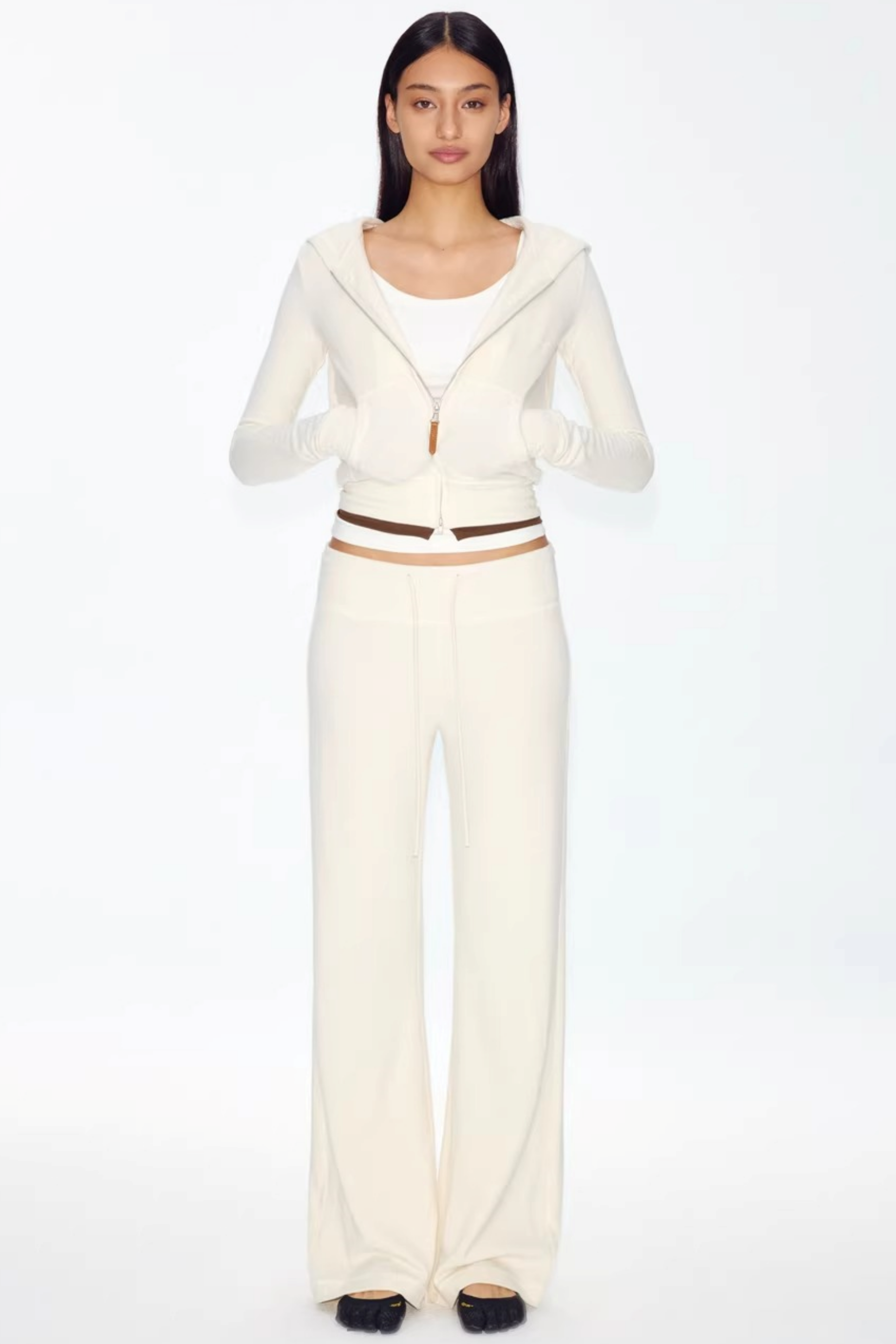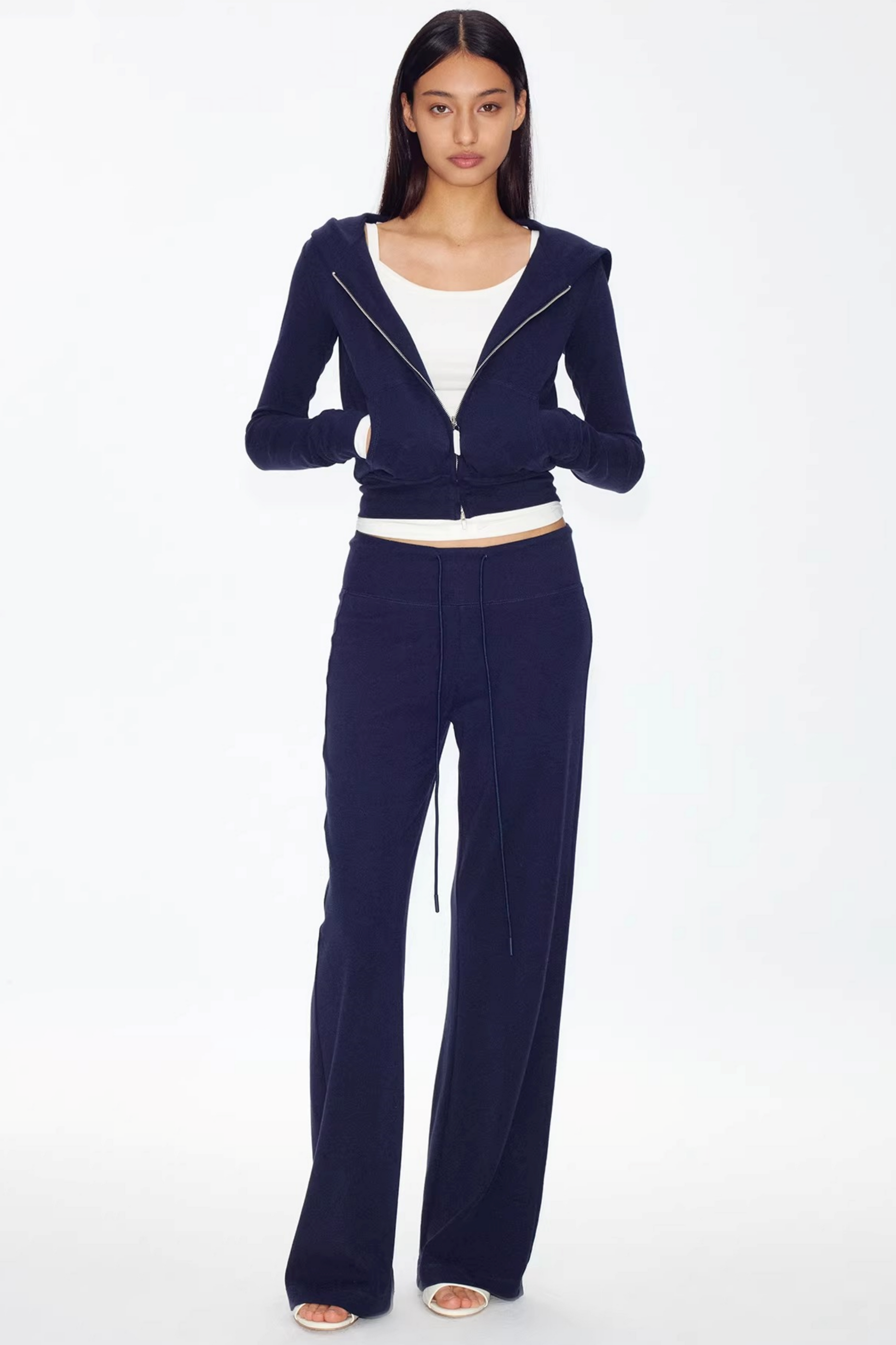 Color-Blocked Zipper Sweatshirt Top Set-Up