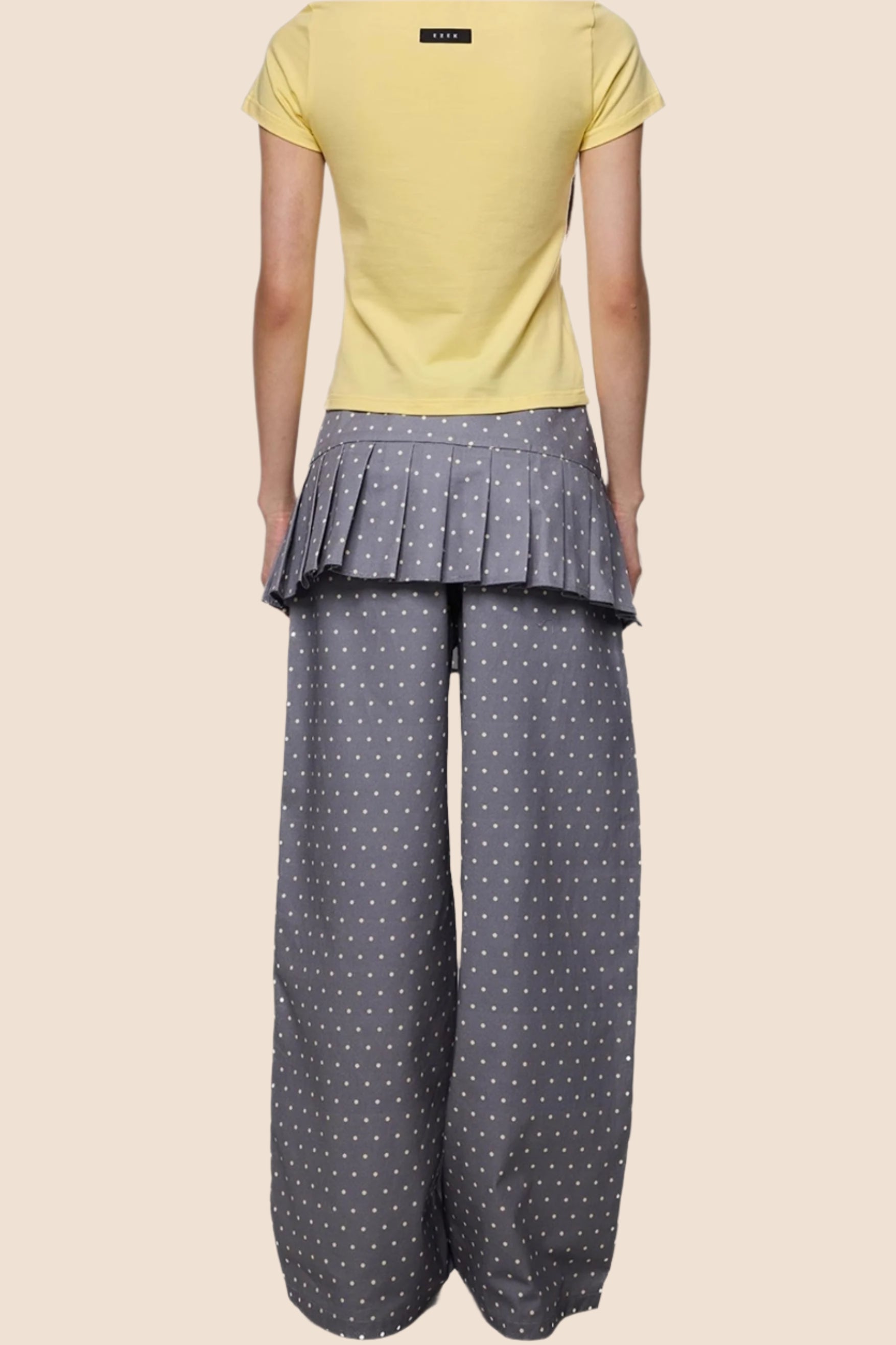 Gray And Yellow Polka Dots Pleated Skirt-Pants Set