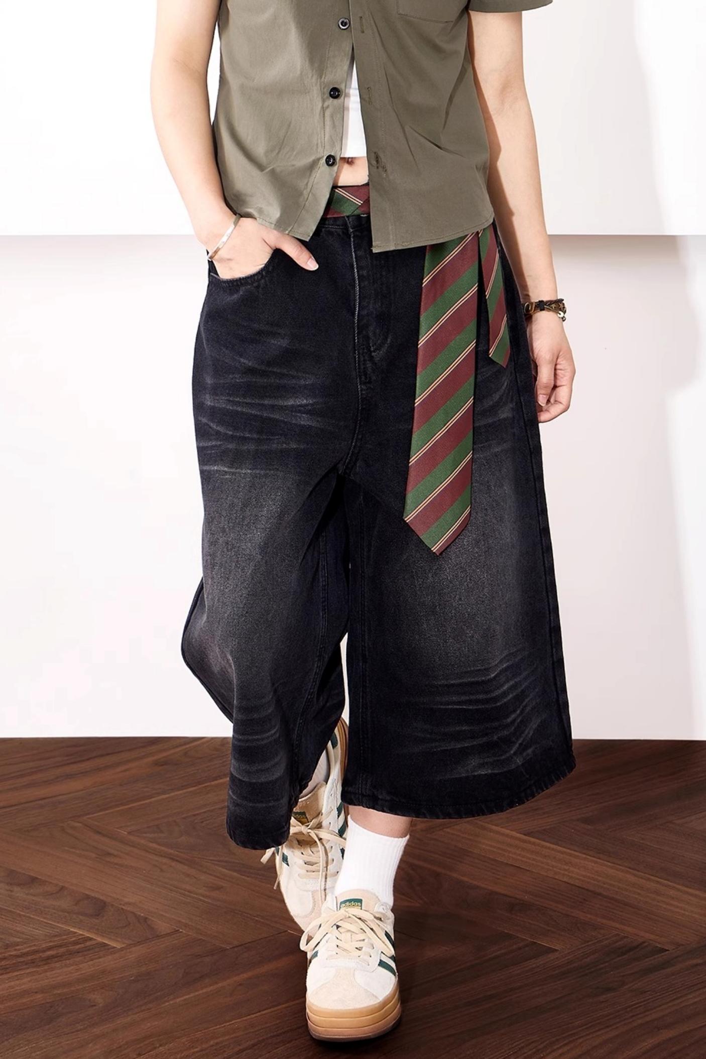 High-Waisted Whisker Denim Shorts