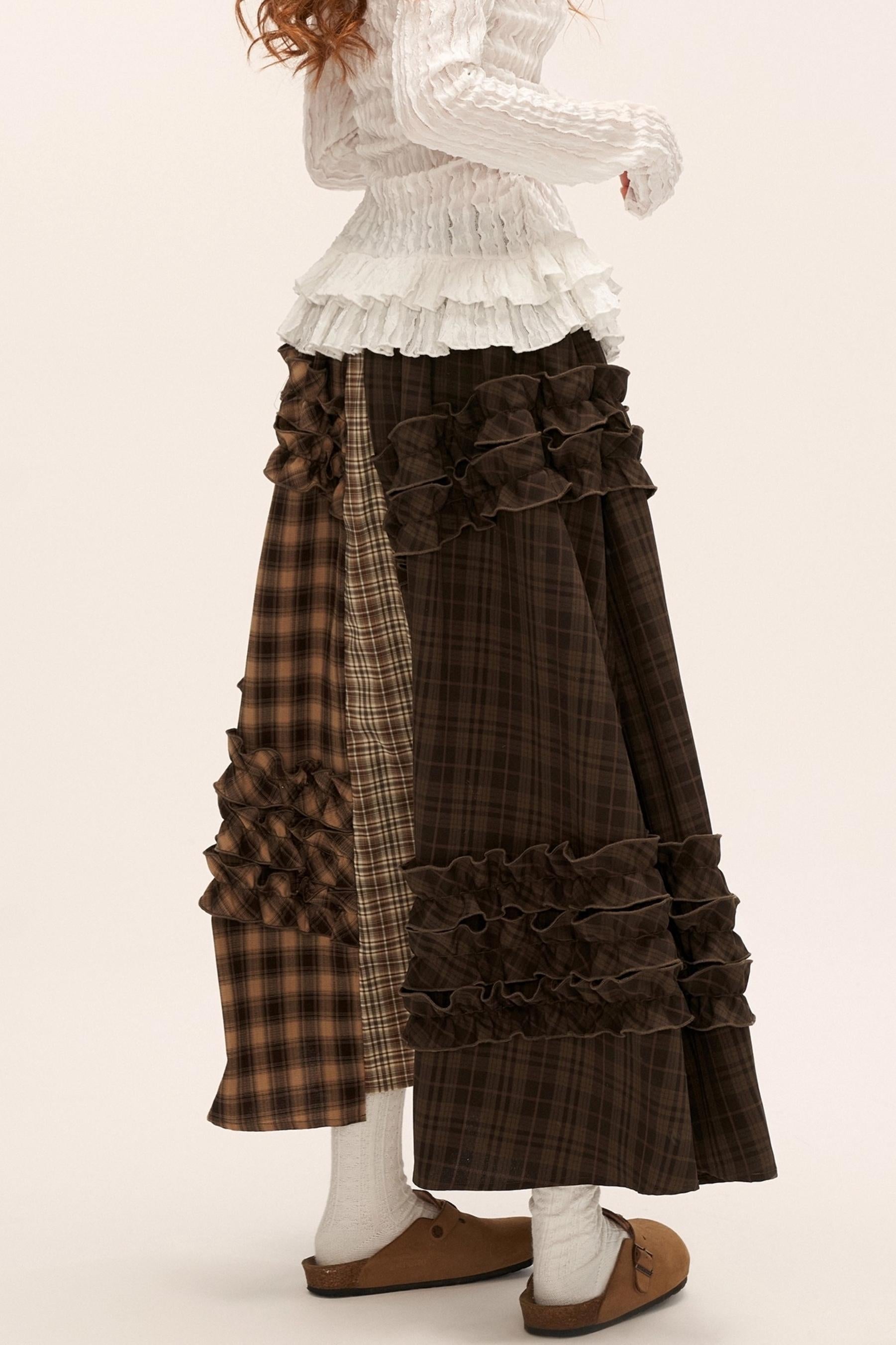 Patchwork Plaid Long Skirt