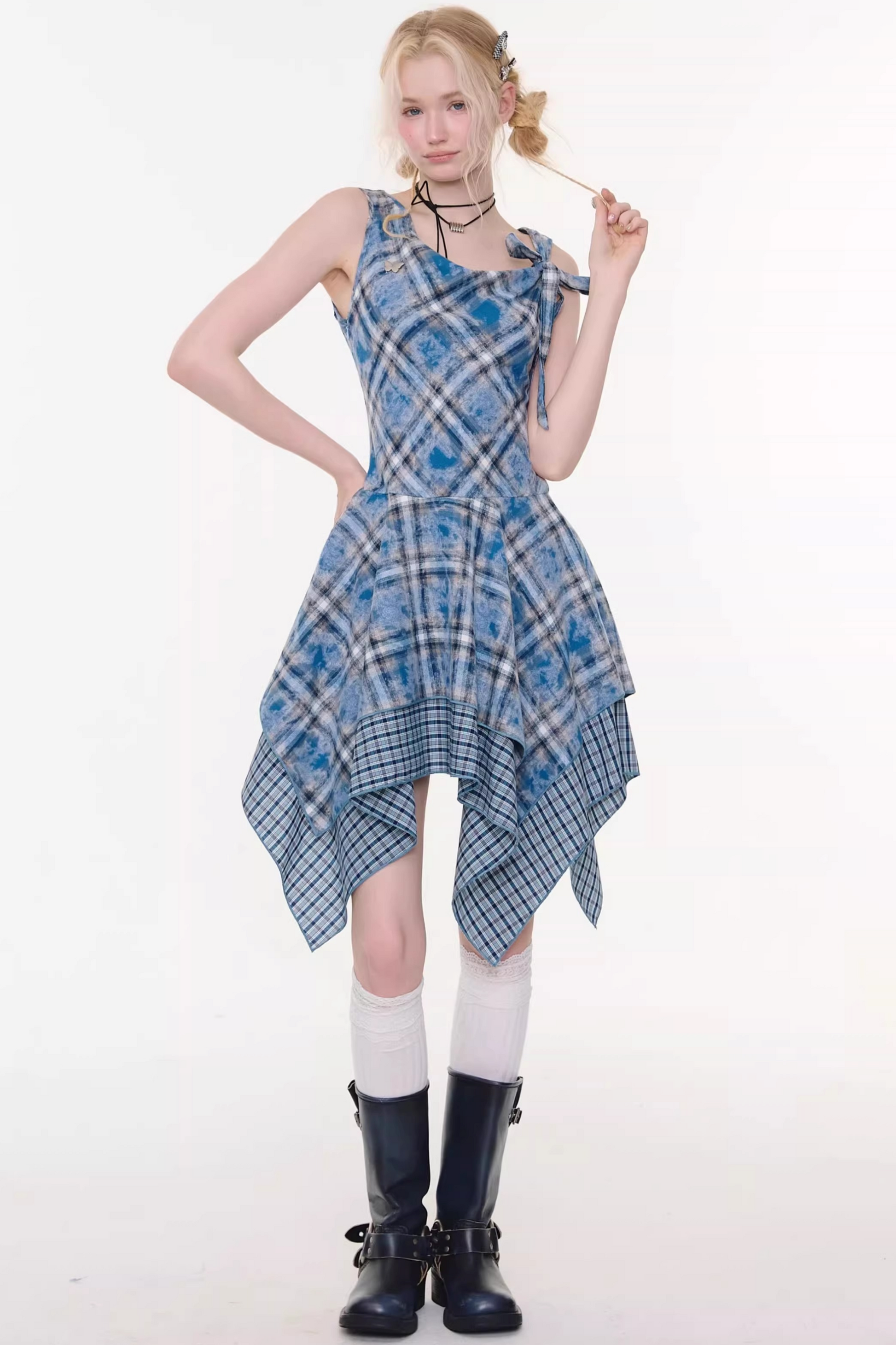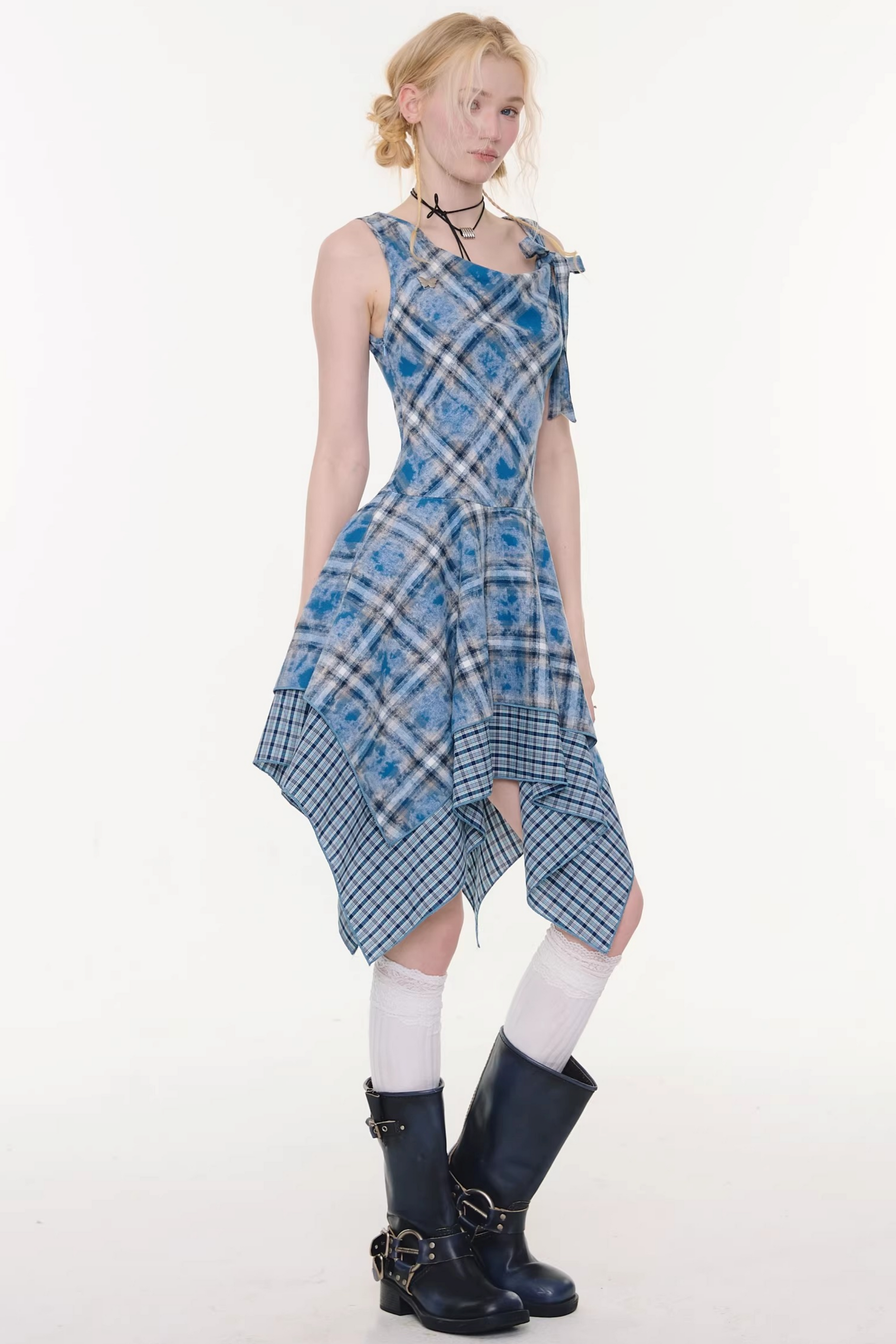 Sea Mist Blue Plaid Dress