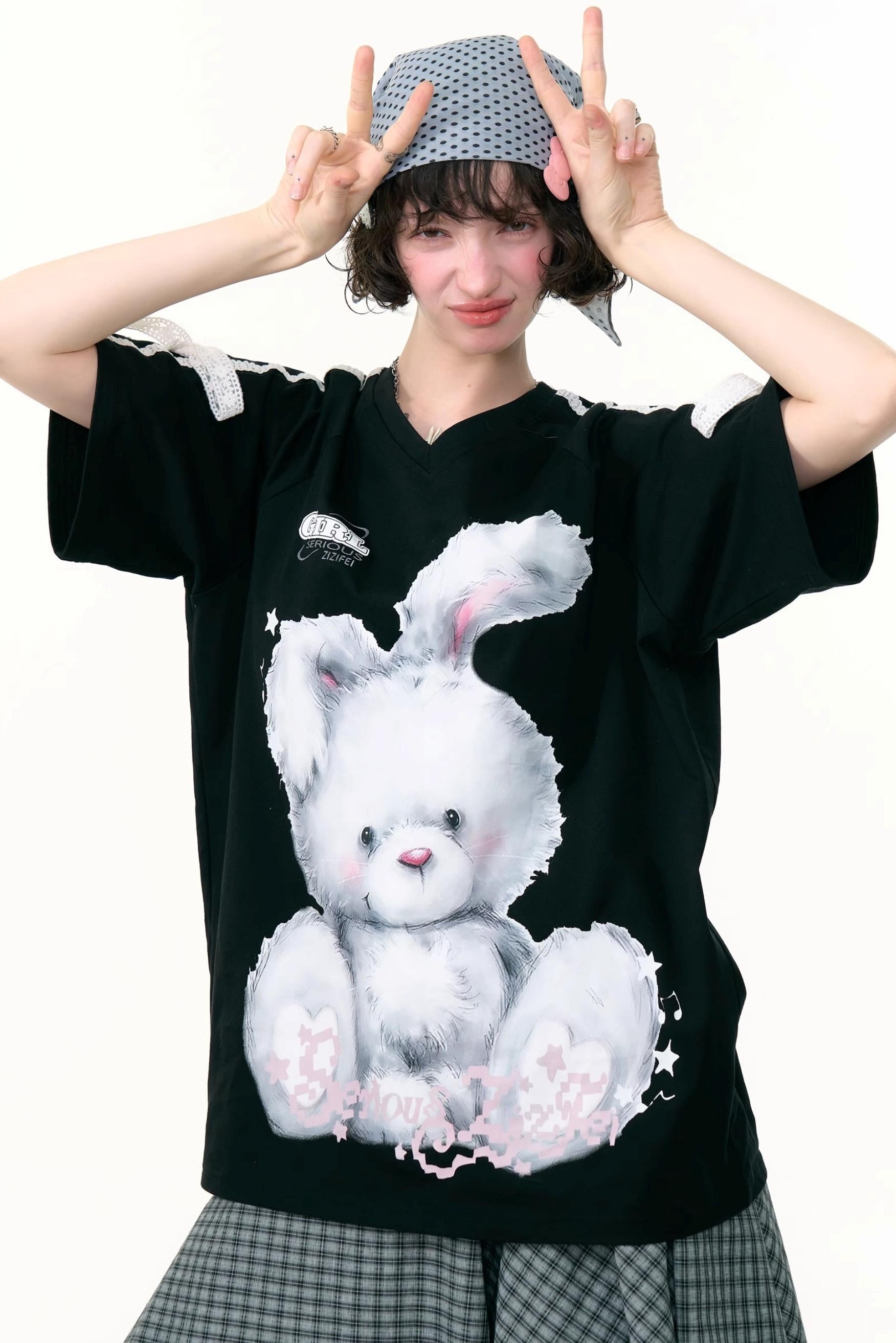 Summer Vintage Lace Bow Short Sleeve T-Shirt