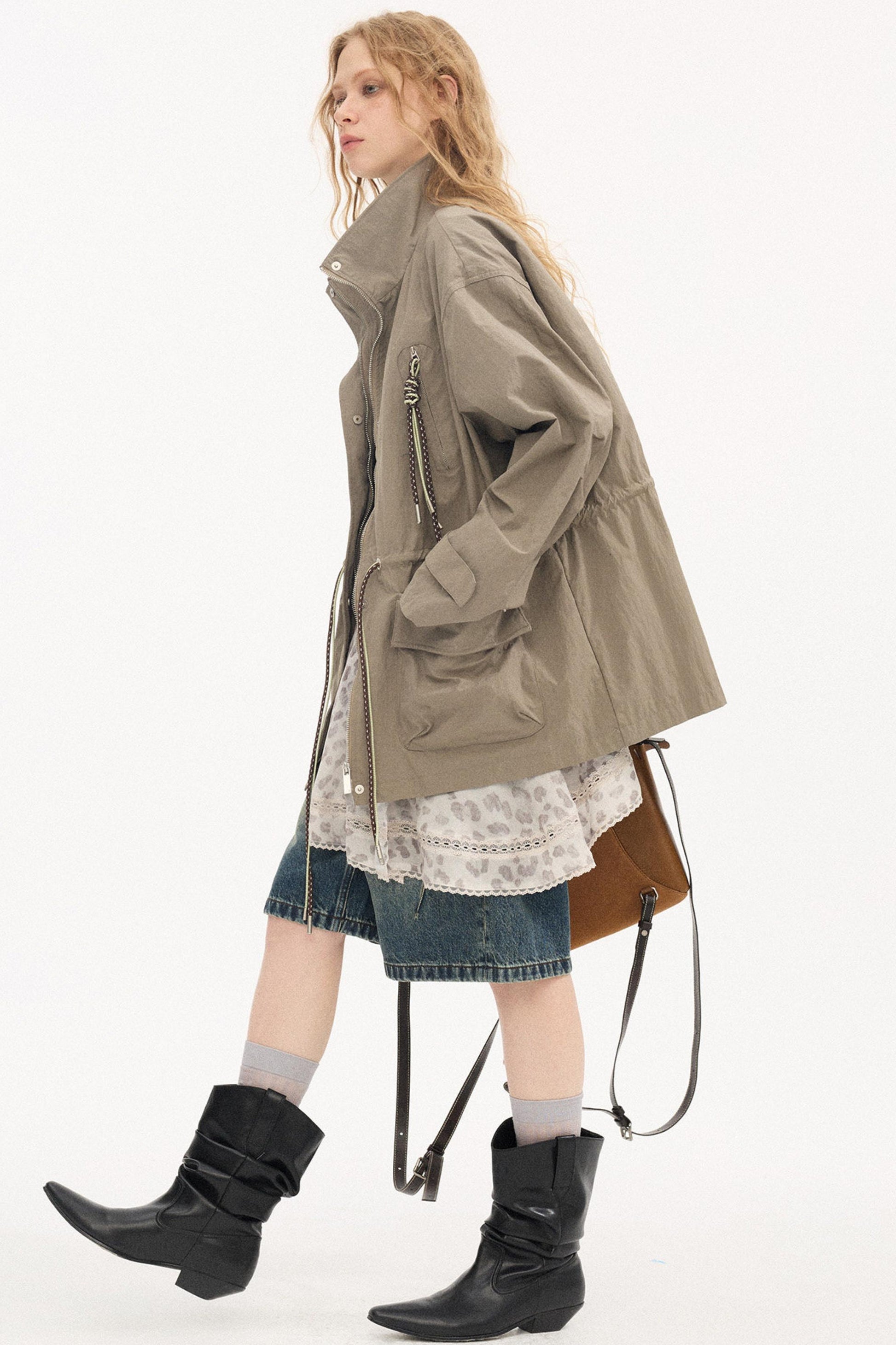 Twisted Pocket Stand Collar Jacket