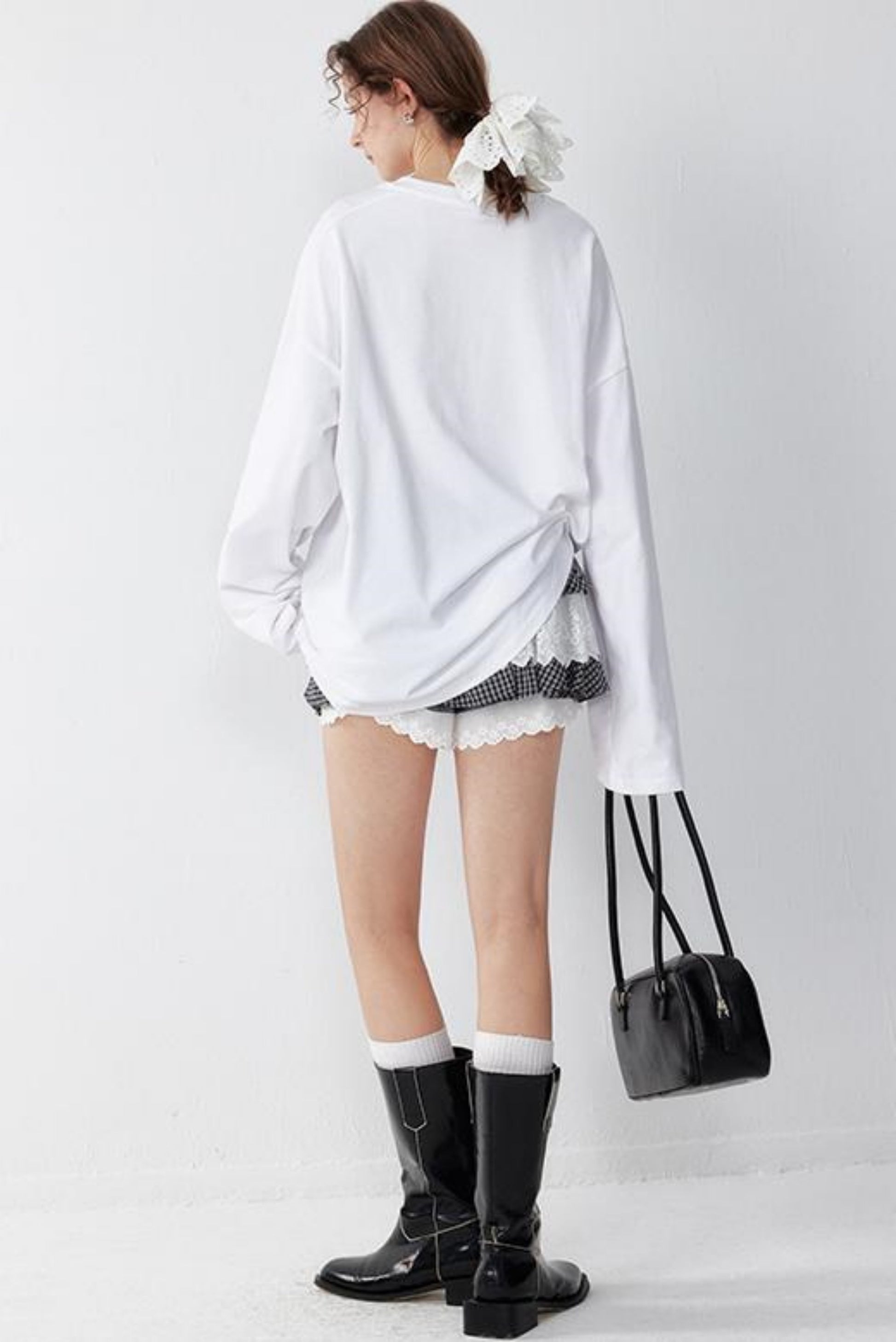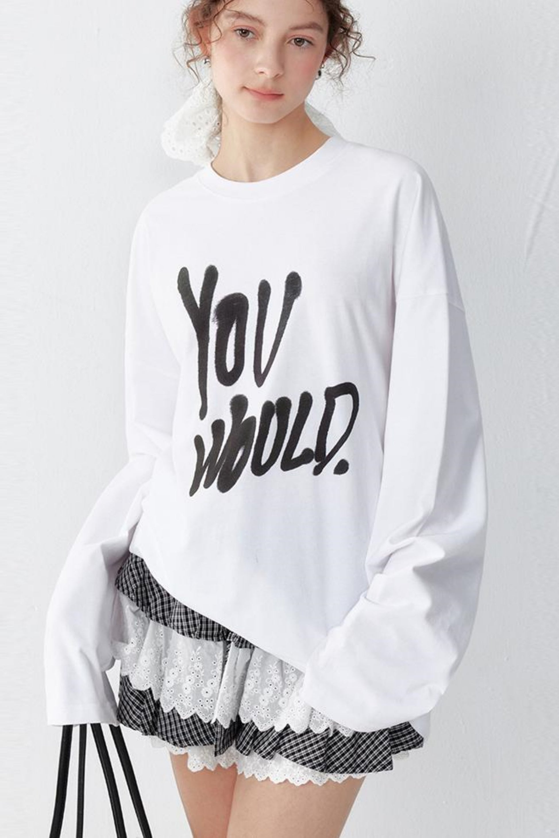 White Print Long Sleeve Tee