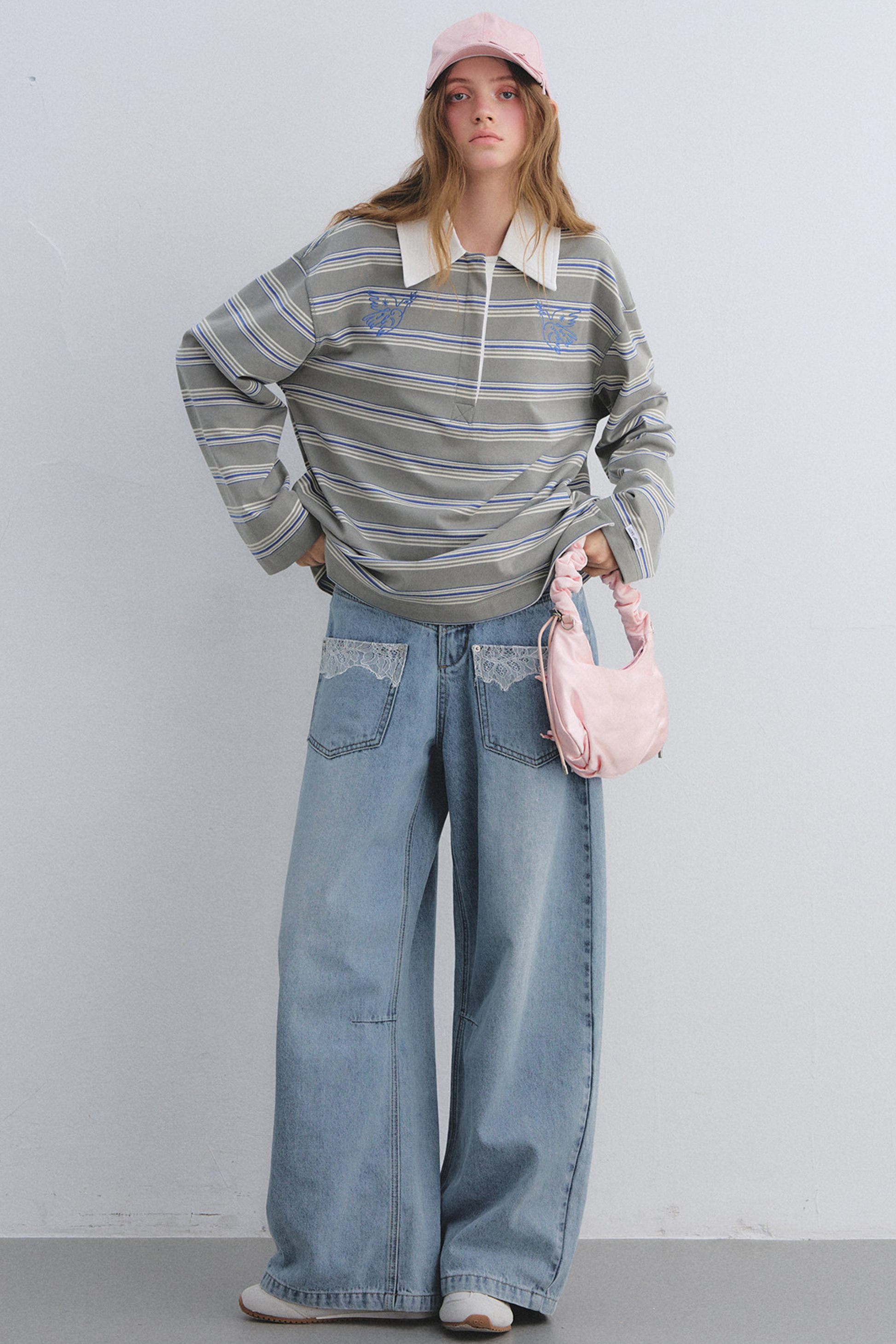 American Patchwork Striped Polo Blouse