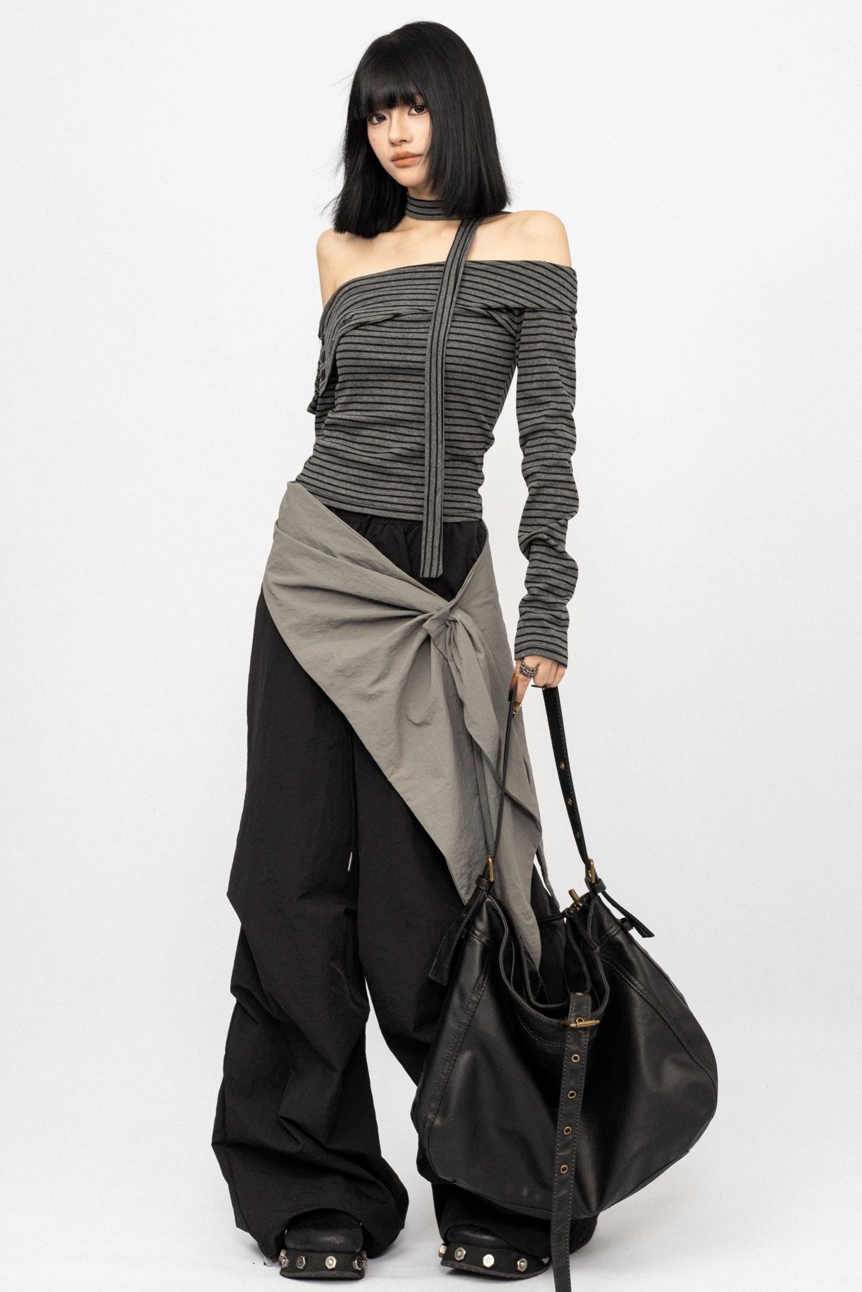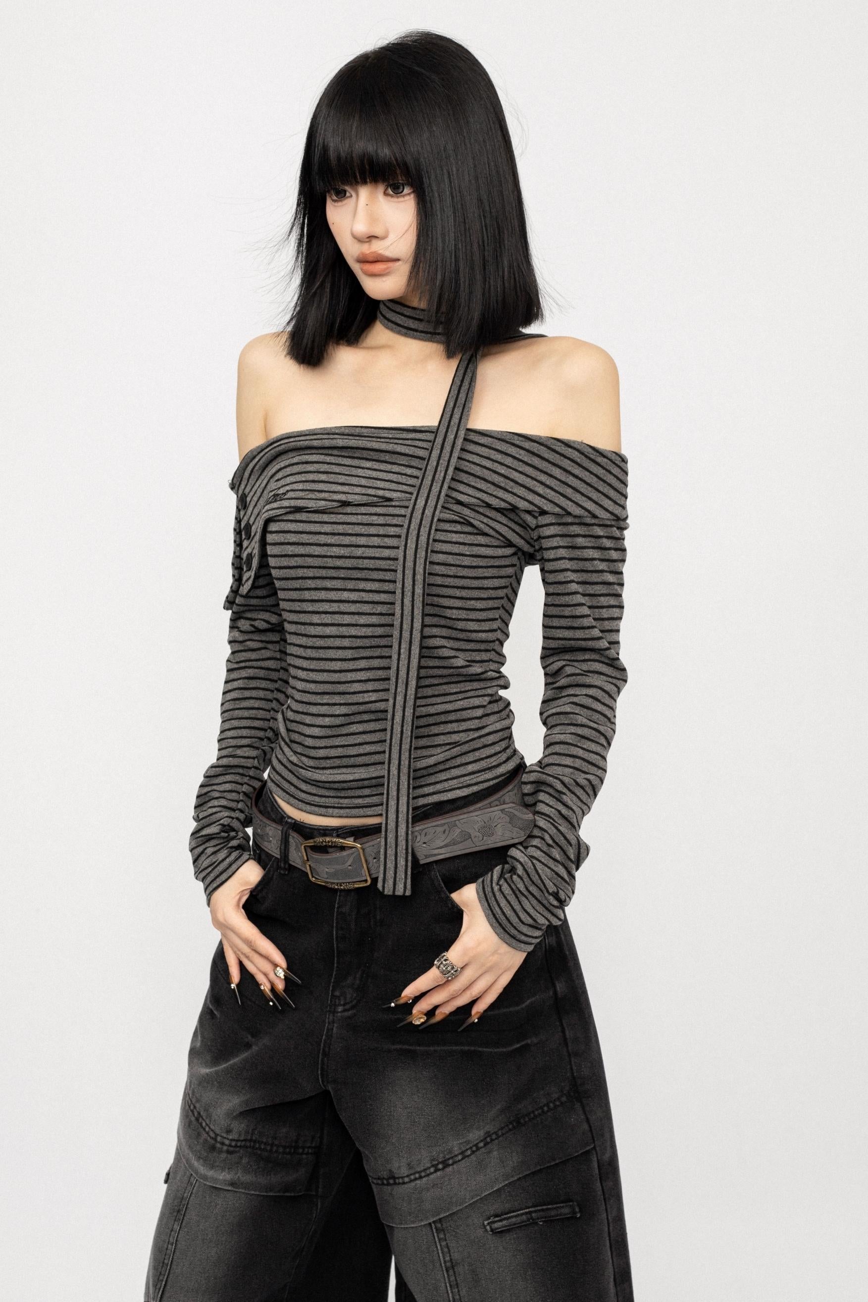 American Spice Girl Striped One-Shoulder Top